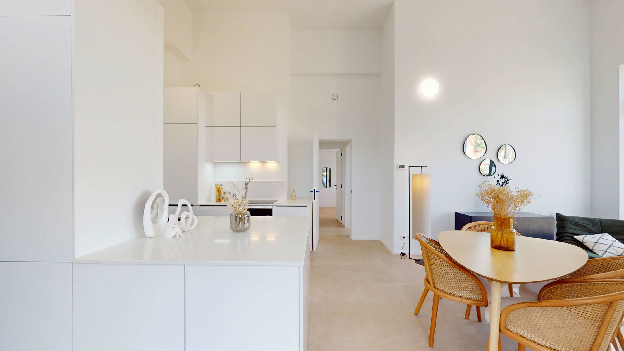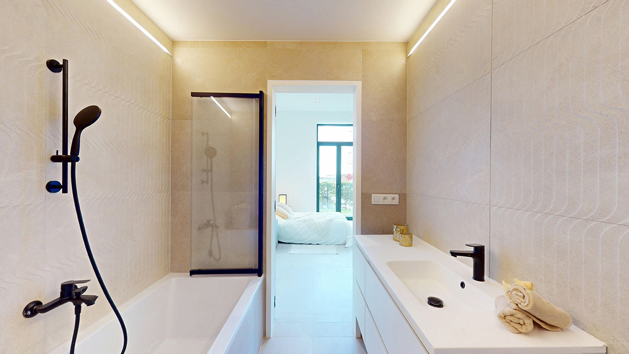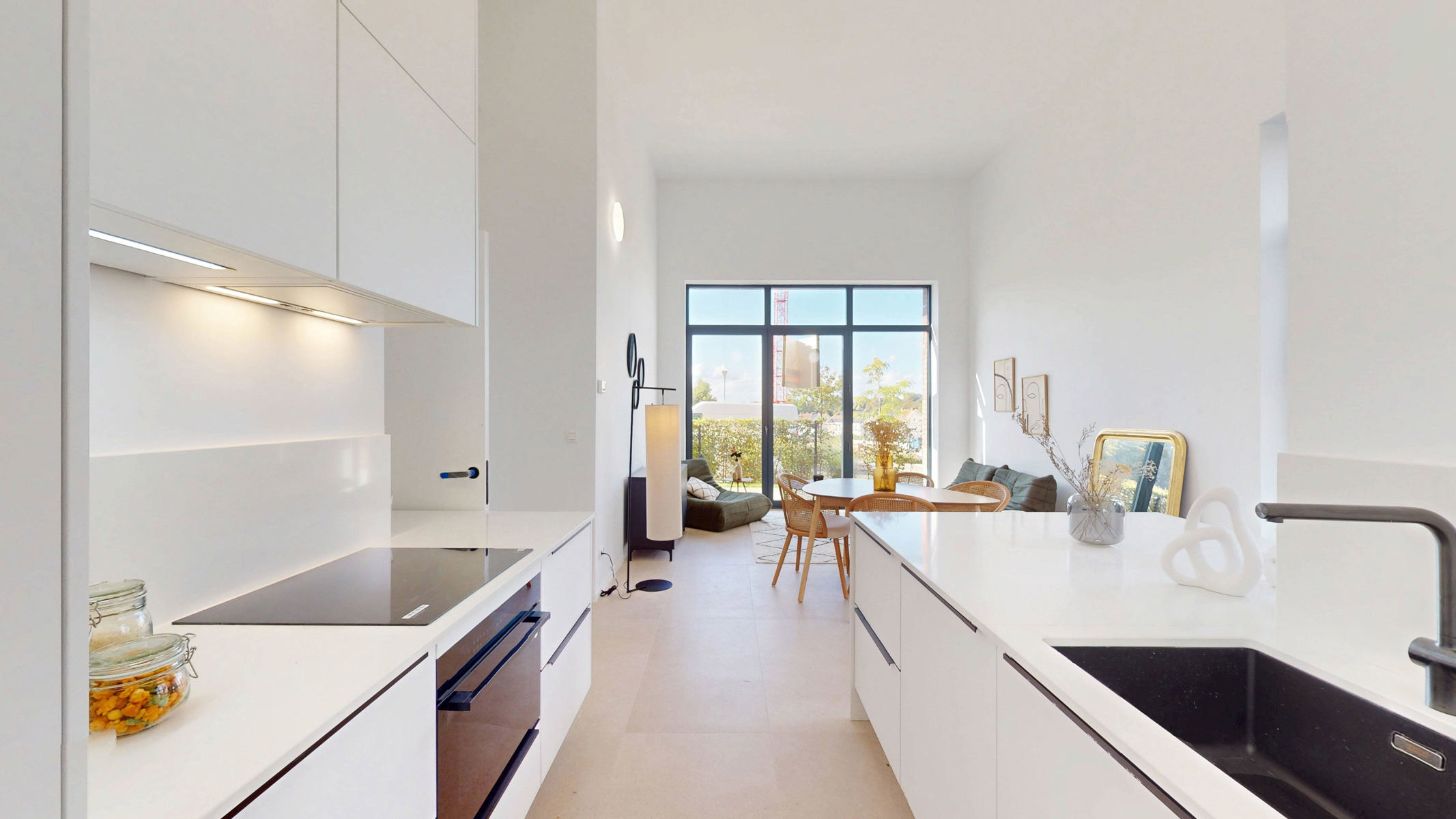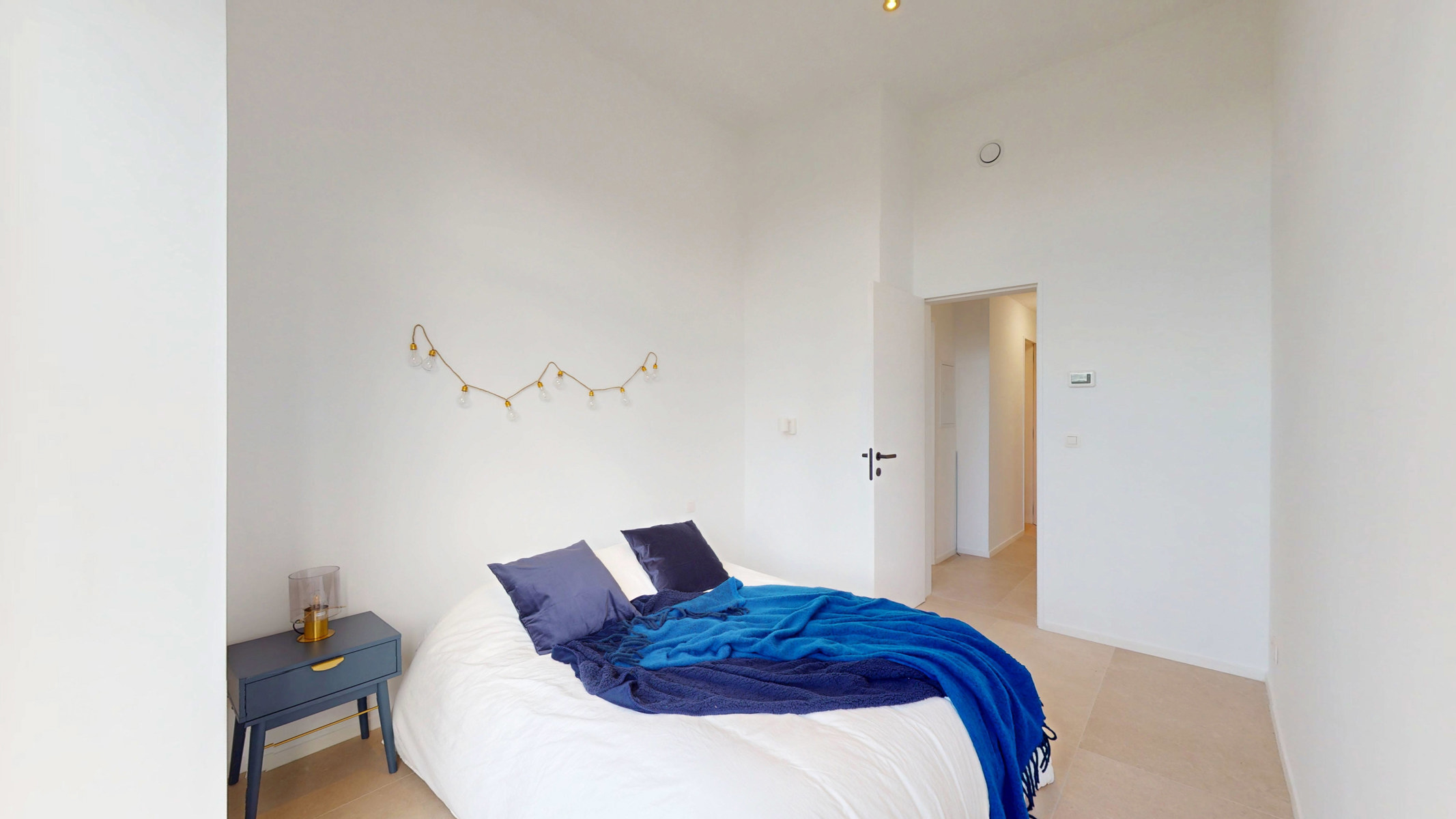 Situé à proximité de la gare de Calvoet à Uccle, de ses transports et de ses commerces, By The Way vous propose ce lumineux appartement NEUF d’environ 90 m2 bruts (selon PEB), dans un nouveau quartier verdoyant en plein essor. Accessible depuis la venelle, par son entrée privative, ce RDC aux finitions haut de gamme est entouré d’un espace jardin + terrasse privatif de +/- 64m² et est composé comme suit: un séjour de +/- 33m² comprenant une cuisine ouverte hyper-équipée, bénéficiant d’une hauteur sous plafond exceptionnelle de 4,4m, un hall de nuit menant à une chambre parentale de 15m² avec salle de bain attenante, une seconde chambre de +/- 10m², une salle de douche, une buanderie et un WC séparé. Cet appartement possède également un grenier de +/- 8m² et l’immeuble dispose d’un local vélo sécurisé. Emplacement de parking intérieur obligatoire et en supplément (25.000€). Spécificités techniques et équipements: PEB B, électricité conforme, VMC double flux, chaudière au gaz individuelle. Compteurs eau/électricité individuels, châssis en aluminium avec isolation thermique et phonique. Charges communes (assurances, entretien, syndic, fond de réserve) d’environ 170 €/mois. Vente sous régime TVA.