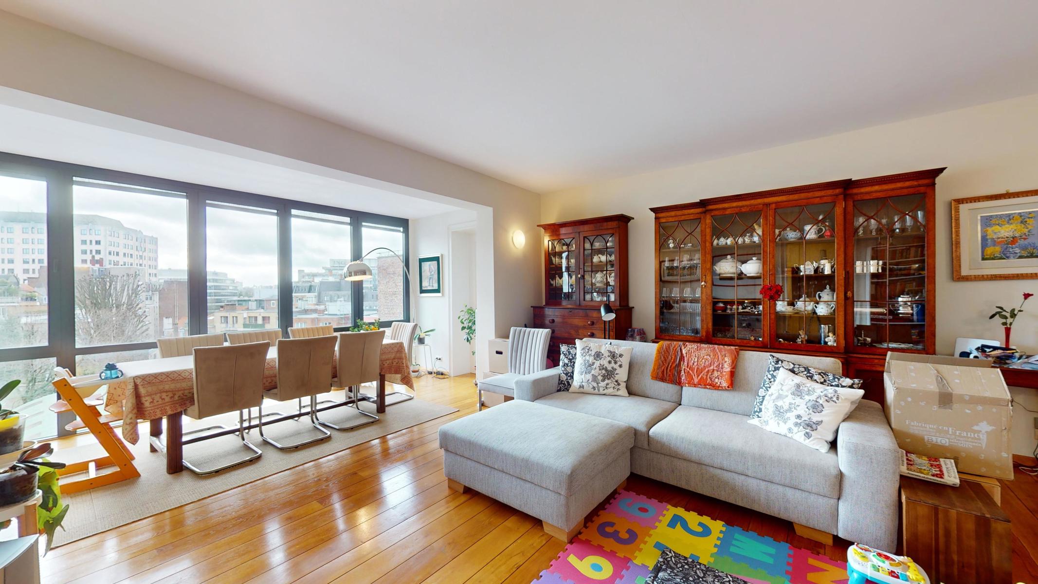 Dans le quartier CEE, à deux pas du Parc du Cinquantenaire (métro Mérode), proche des commerces, transport en commun et écoles, By the Way vous présente ce charmant appartement duplex de +/- 148 m2 (selon PEB) situé au 4ème étage d’un petit immeuble de 4 étages (sans ascenseur). Il se compose comme suit : salon/salle à manger de +/- 43m2, cuisine full équipée de +/- 9m2, 2 grandes chambres de +/- 17m2 et de +/- 16m2, 1 chambre de +/- 13m2, 1 espace bureau, 1 salle de bain avec baignoire et douche séparée de +/- 11m2 avec un espace pour machine à laver et sèche-linge. WC séparé.