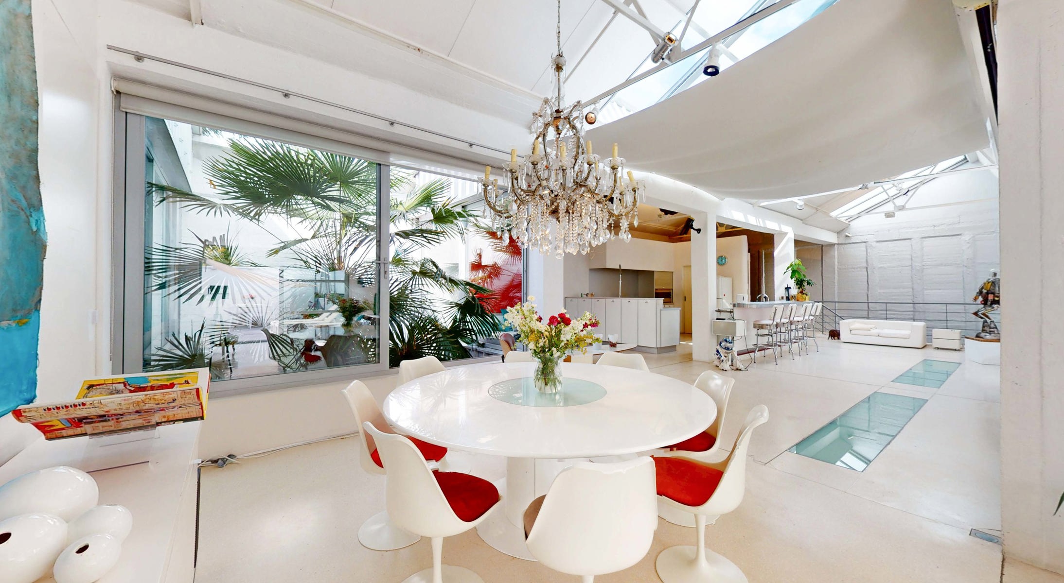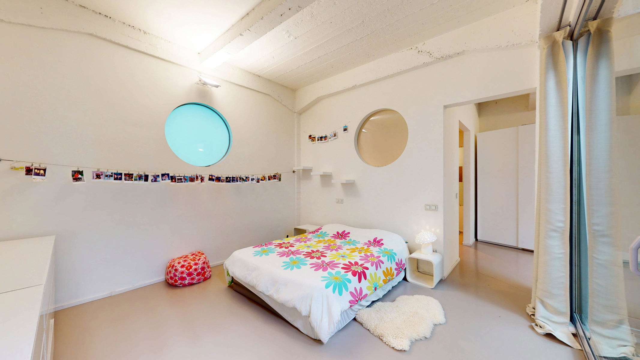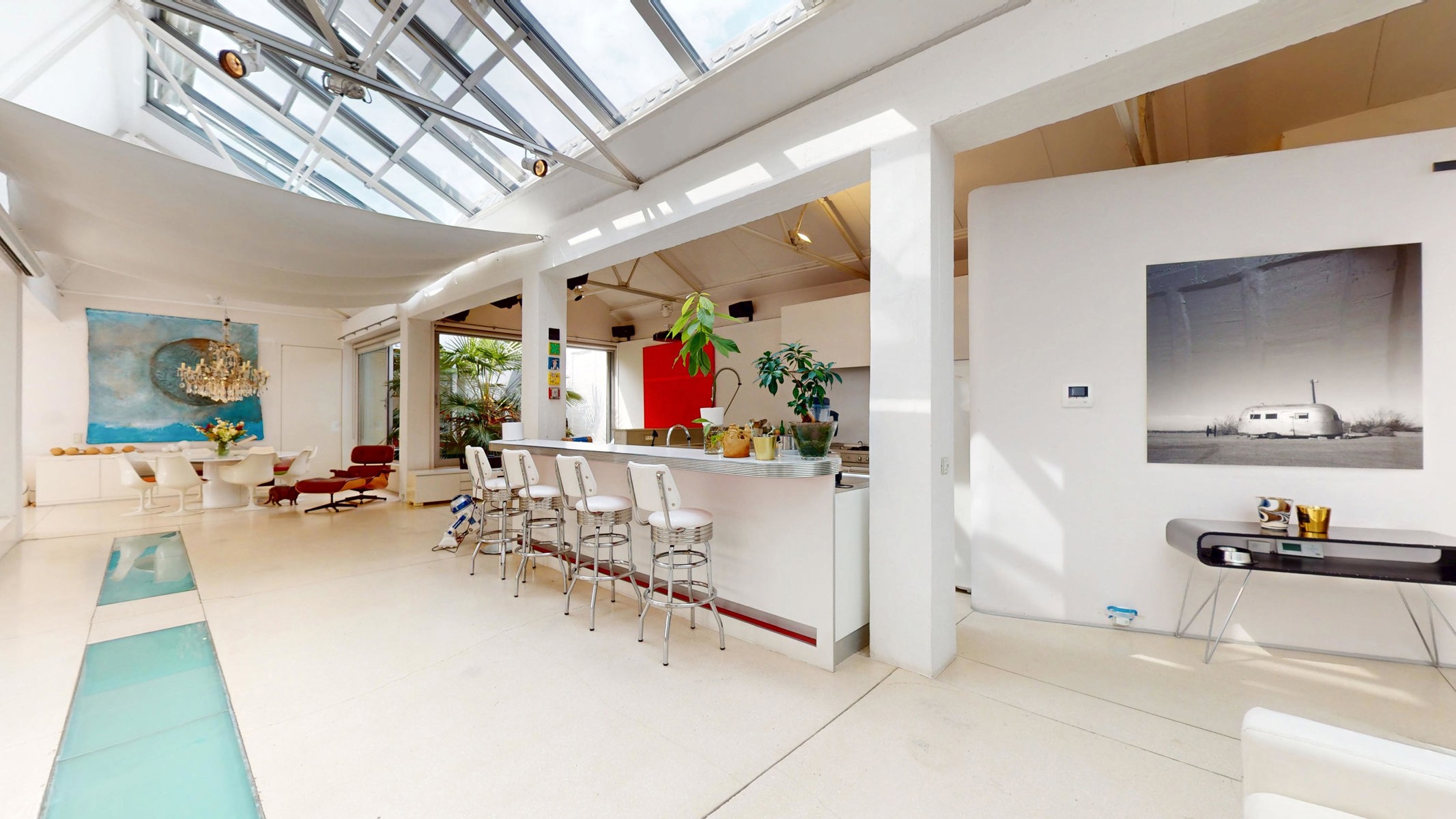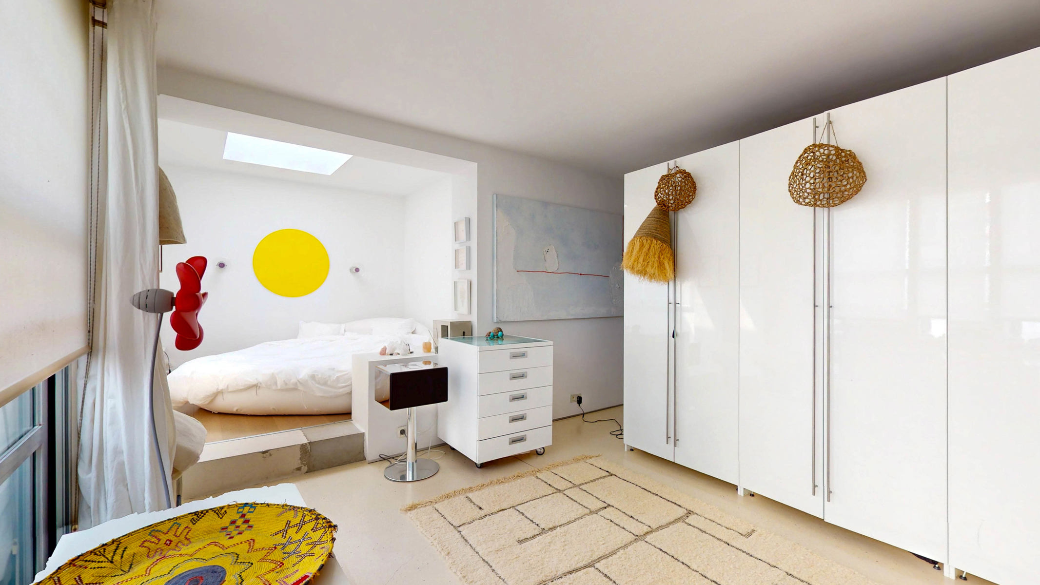 Au 1er étage, une vaste superficie séjour, divisé en différentes parties: salon, salle à manger, coin cinema, cuisine ouverte, arrière-cuisine, 3 chambres et deux salle de bains en-suite avec bains, douches, toilette séparée, terrasse (+/- 36m² – orientation Ouest). Une verrière qui s’ouvre par motorisation.