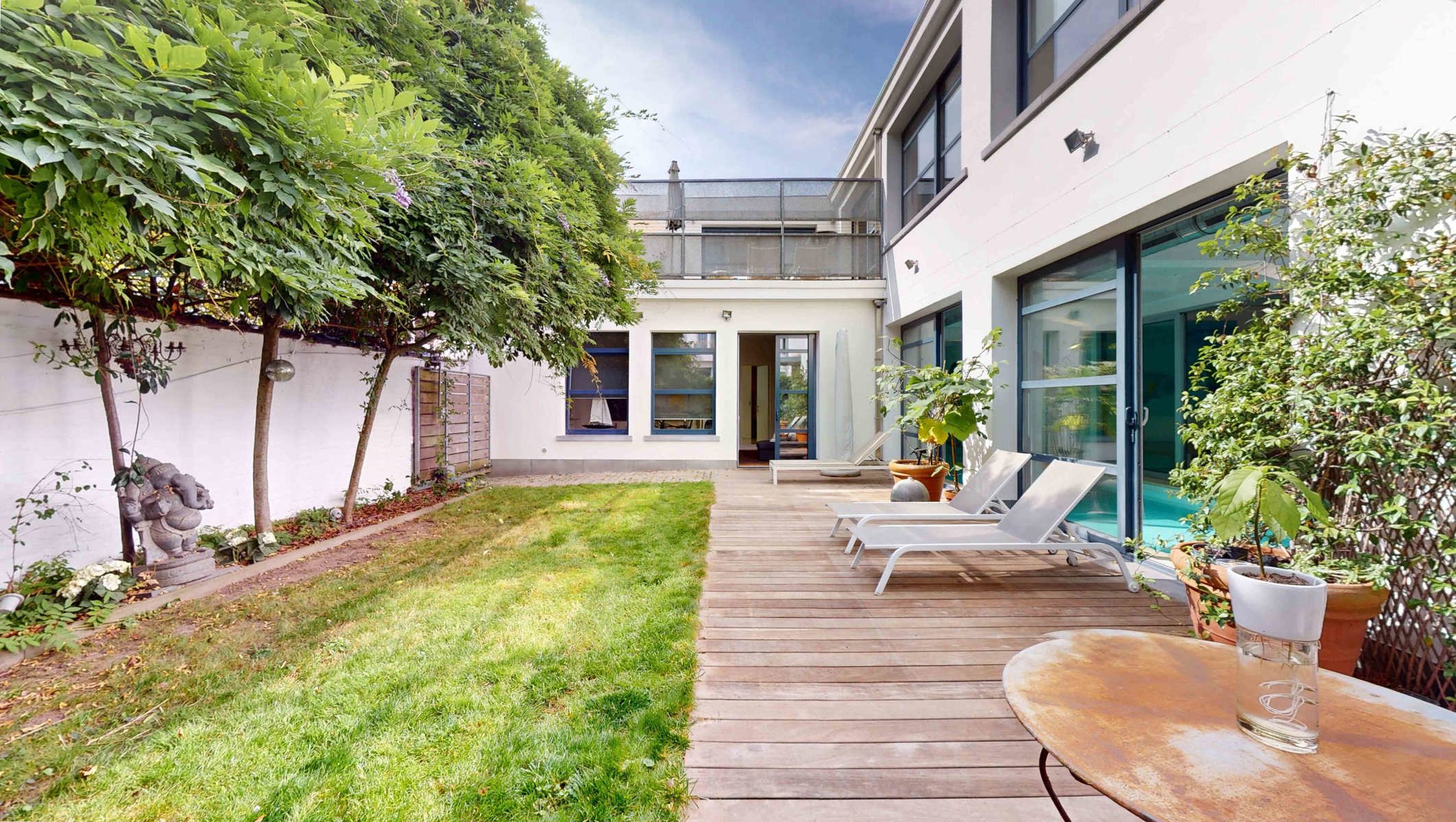 L’ensemble immobilier se retrouve à l’arrière d’une copropriété super sécurisée et se compose d’une grande arrière-maison avec piscine et jardin + une petite maison une chambre + grand garage box pour 2 voitures + emplacements de parking extérieurs.