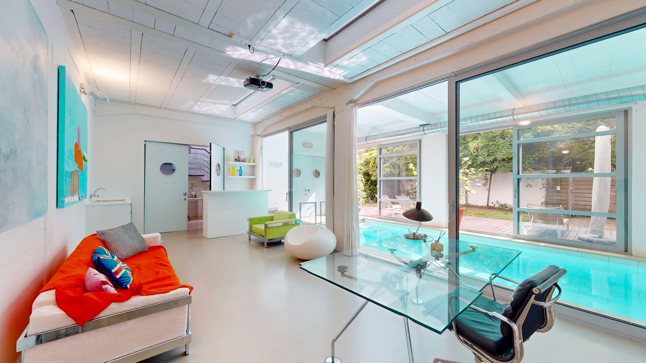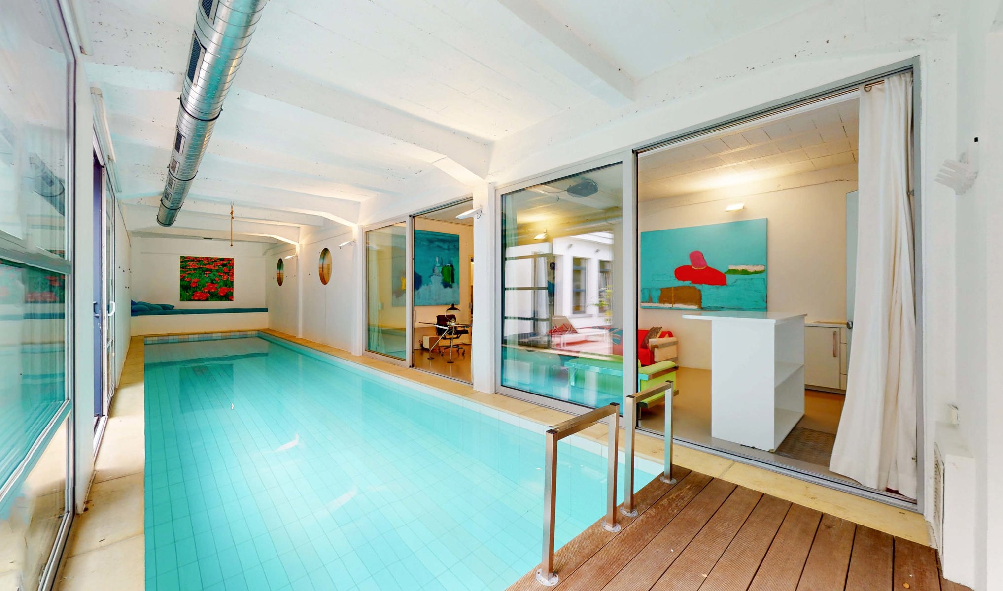 Piscine équipée d’une pompe à chaleur et d’un déshumidificateur.