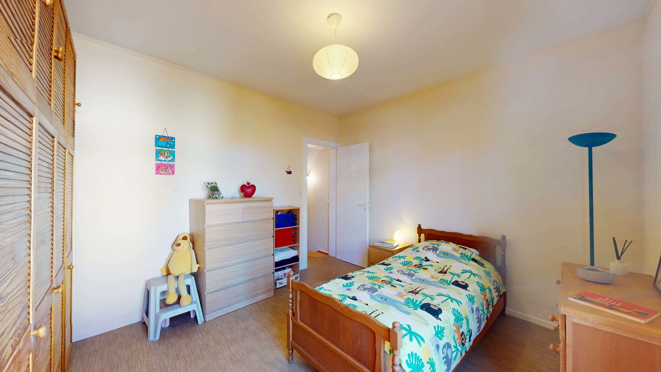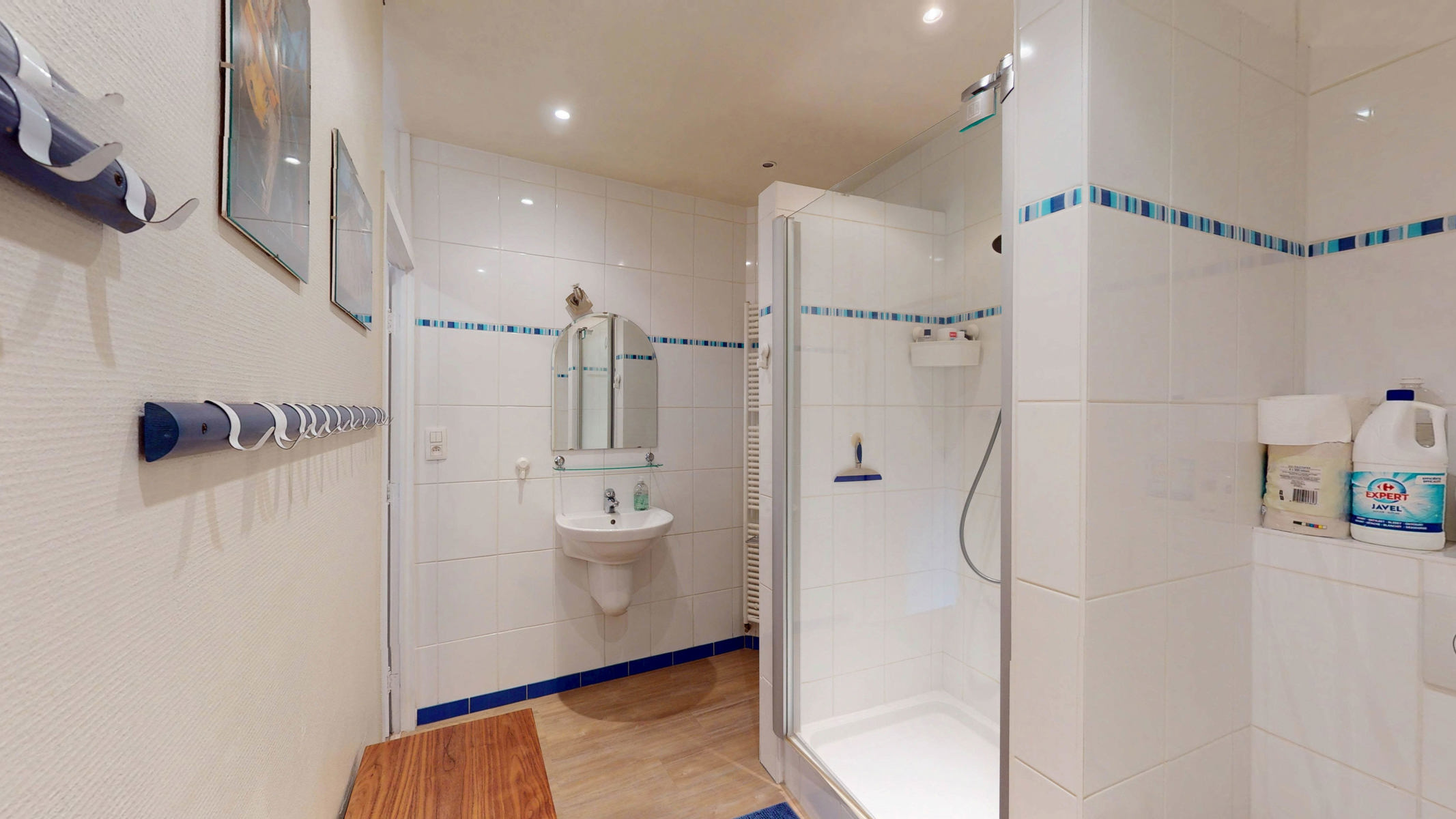 Au 1er étage, deux belles chambres confortables (17 et 16 m²) dont une avec de grands placards et une salle de douche avec 2ème WC.