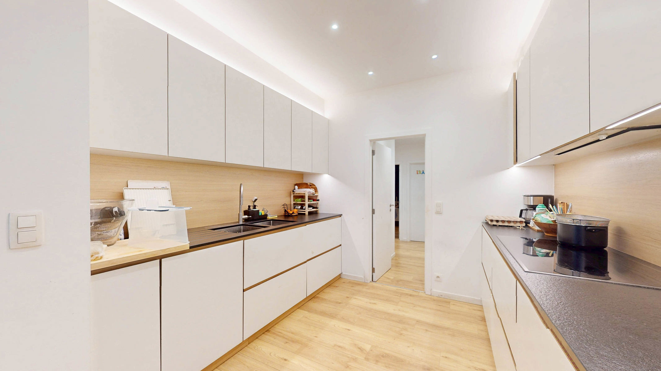 👉 Au 2e étage, un appartement mansardé d’env. 72 m², lumineux et ultra-charmant : spacieux séjour, cuisine super-équipée ouverte, chambre avec salle de bain indépendante, WC séparé et mezzanine offrant une 2e chambre ou un espace cosy atypique. Isolation performante et climatisation (rare et appréciée).
