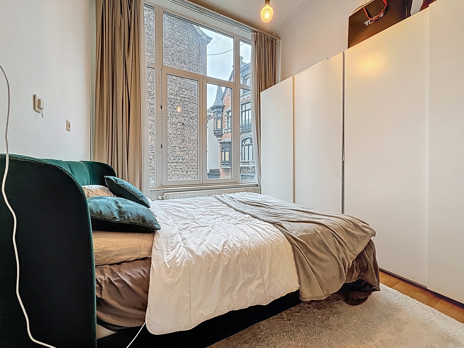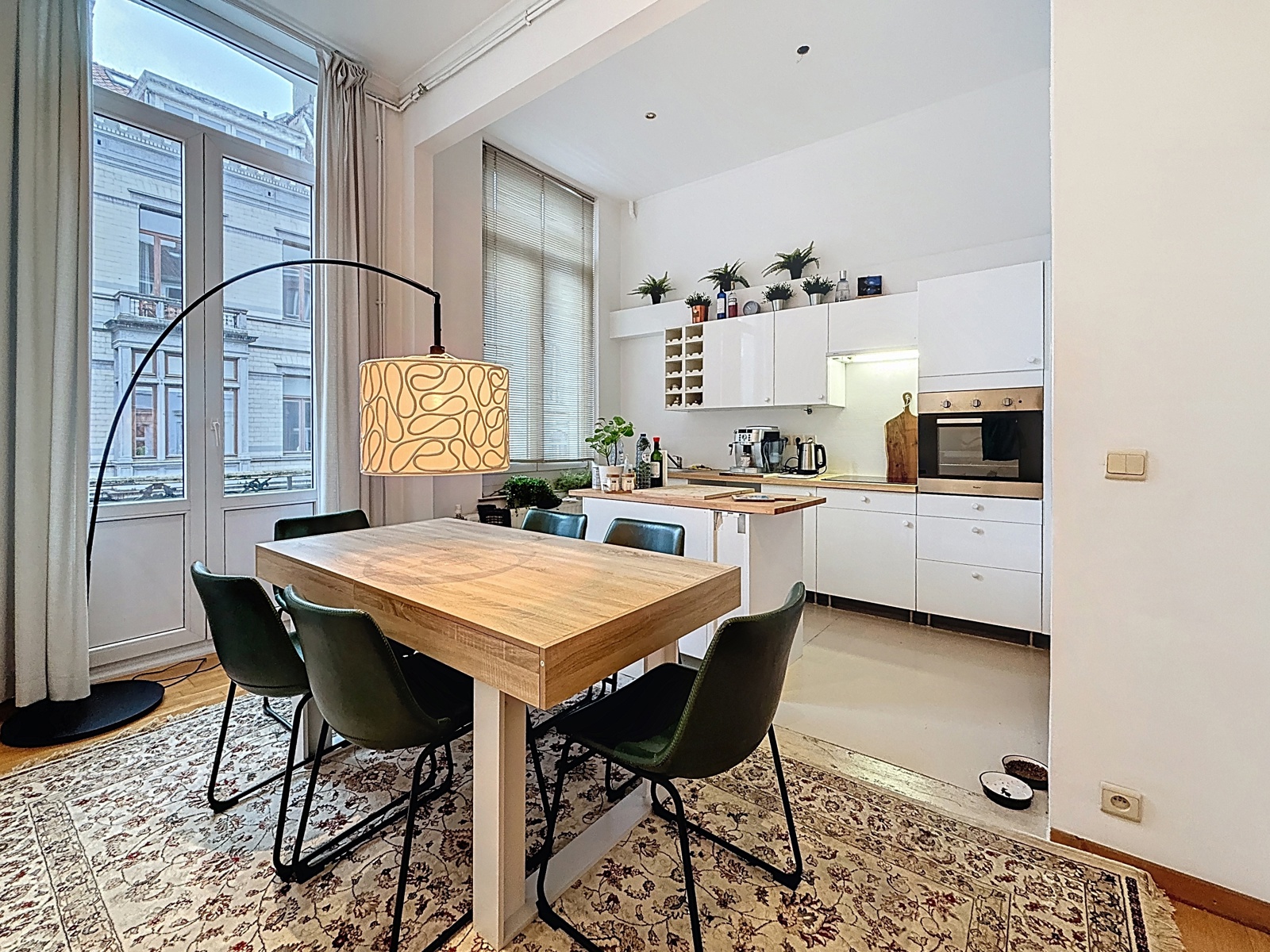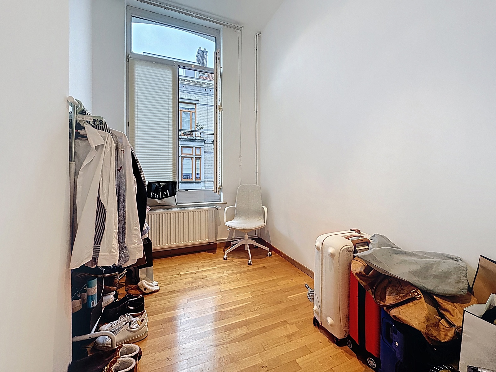 Infos et visites, contactez antonin – antonin@bytheway.be – 0497.10.20.28. Idéalement situé dans la prisée rue de Florence, nous vous proposons cet appartement lumineux et en parfait état. L’entrée s’ouvre sur un salon chaleureux, agrémenté d’un feu ouvert décoratif, qui distribue intelligemment les espaces. D’un côté, vous découvrirez une cuisine américaine fonctionnelle, équipée de plaques électriques, d’un four à gaz et d’un grand évier, attenante à une dépendance pratique avec réfrigérateur/congélateur et une seconde chambre plus petite, parfaite pour un enfant ou un bureau. De l’autre côté, l’appartement offre une chambre principale spacieuse, baignée de lumière grâce à sa baie vitrée, ainsi qu’une salle de bain complète comprenant une douche indépendante, un lave-linge et des toilettes. Le confort est assuré par une chaudière individuelle au gaz et un boiler électrique pour l’eau chaude. La provision pour les charges communes et l’eau est de 125€ par mois, et le bien dispose d’un PEB D-. Pour toute information complémentaire ou pour planifier une visite, veuillez contacter Antonin par email à antonin@bytheway.be ou par téléphone au 0497.10.20.28.