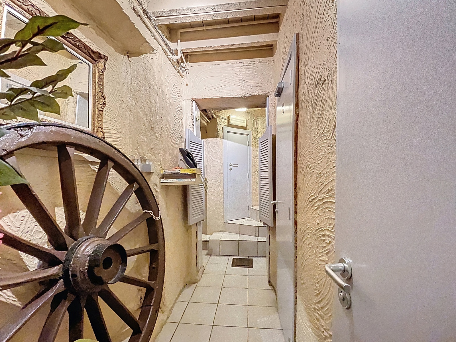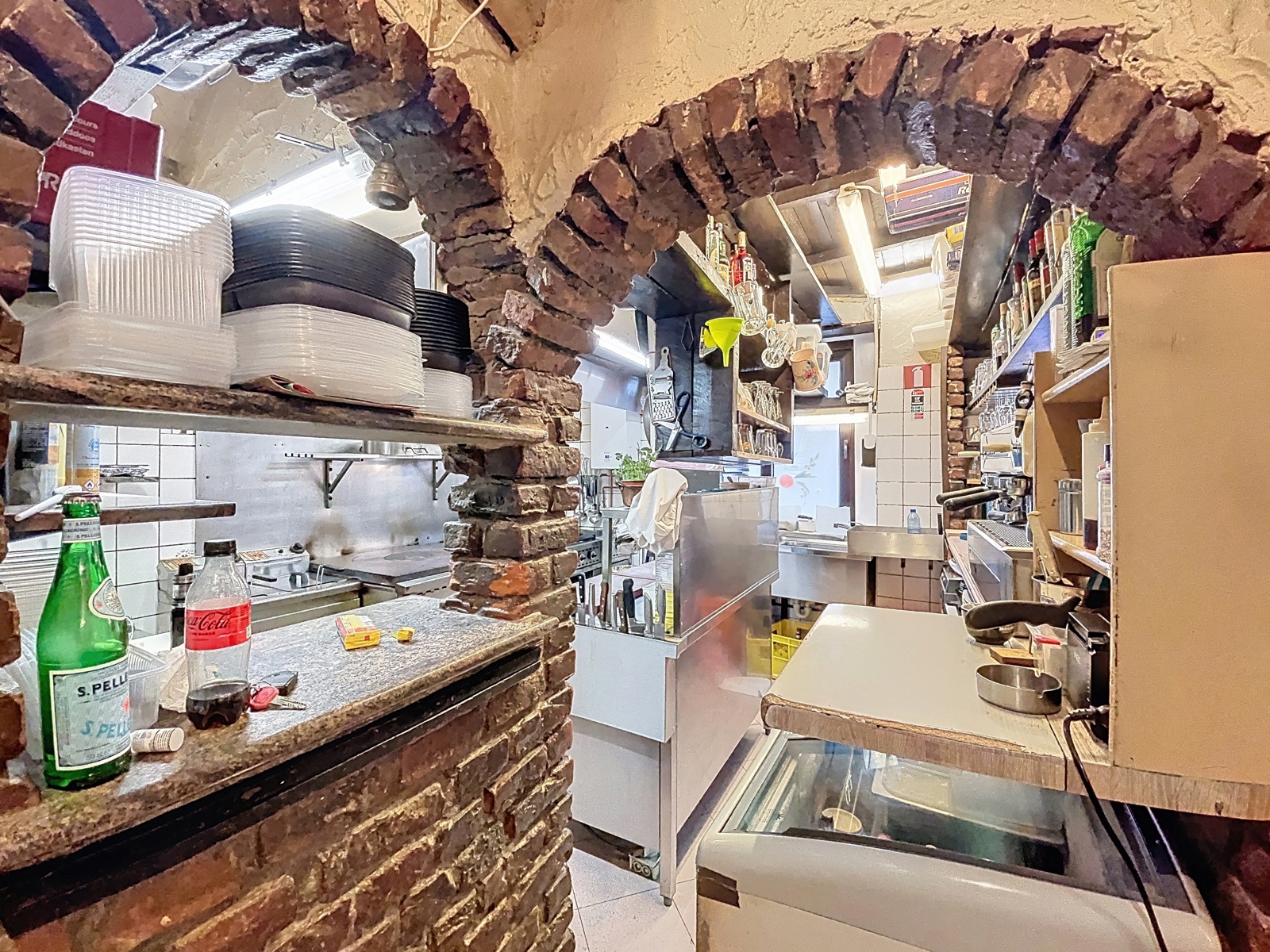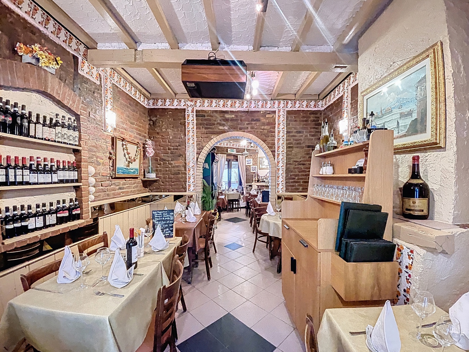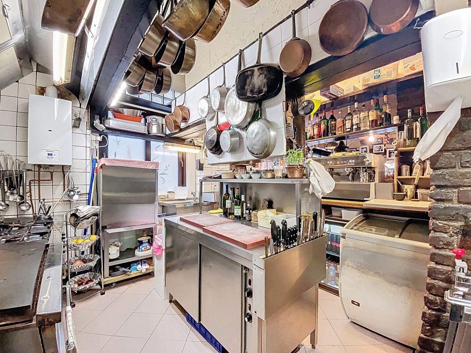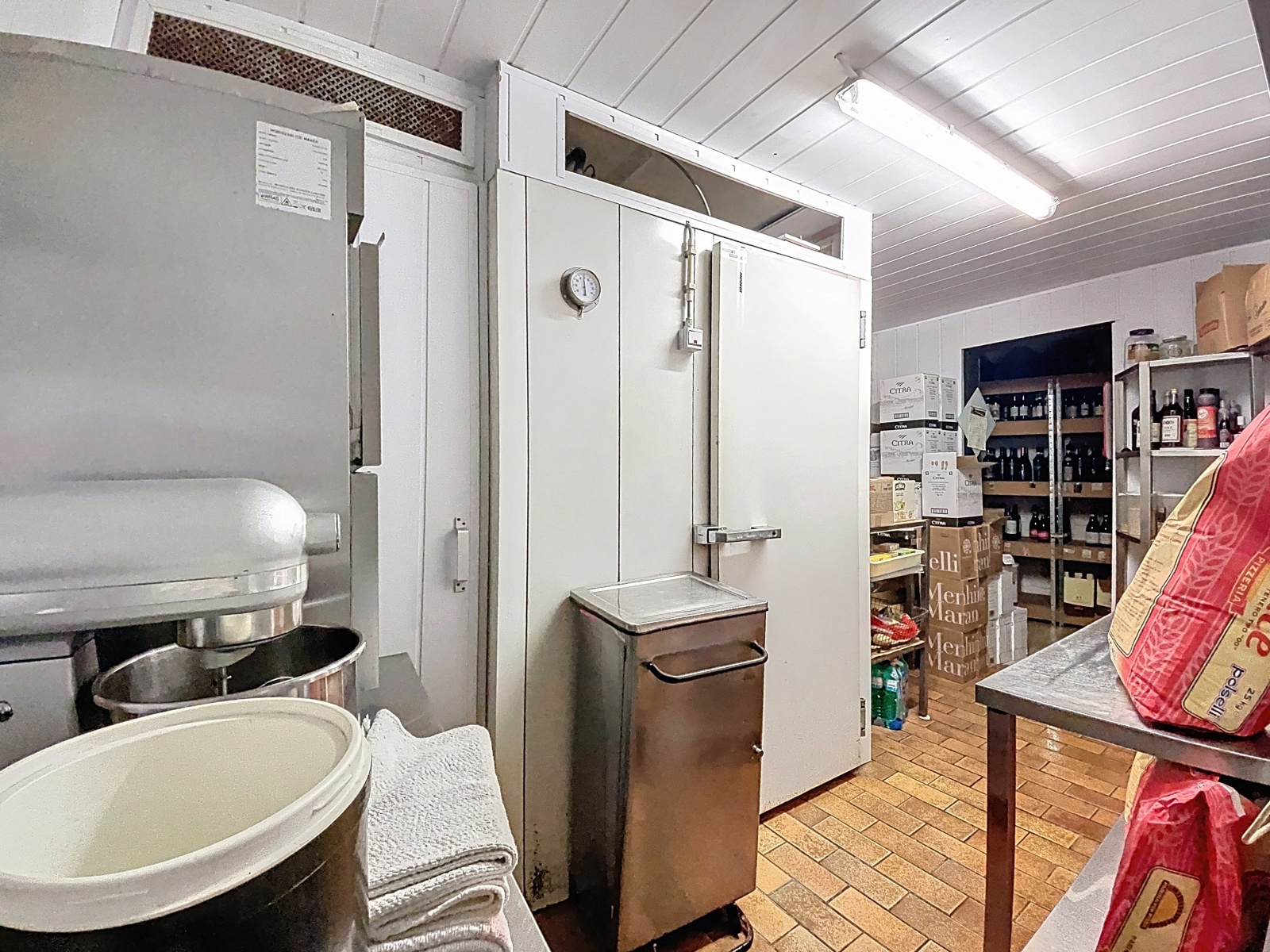 Le restaurant dispose de salles pouvant accueillir 40 couverts ainsi que d’une terrasse de 20 couverts. Un four à pizza à bois fonctionnel est installé à l’entrée et la cuisine professionnelle HORECA est entièrement équipée. À l’étage se trouvent des espaces annexes comprenant des zones de stockage et un bureau. Le sous-sol comprend une chambre froide ainsi qu’un vaste espace de stockage.