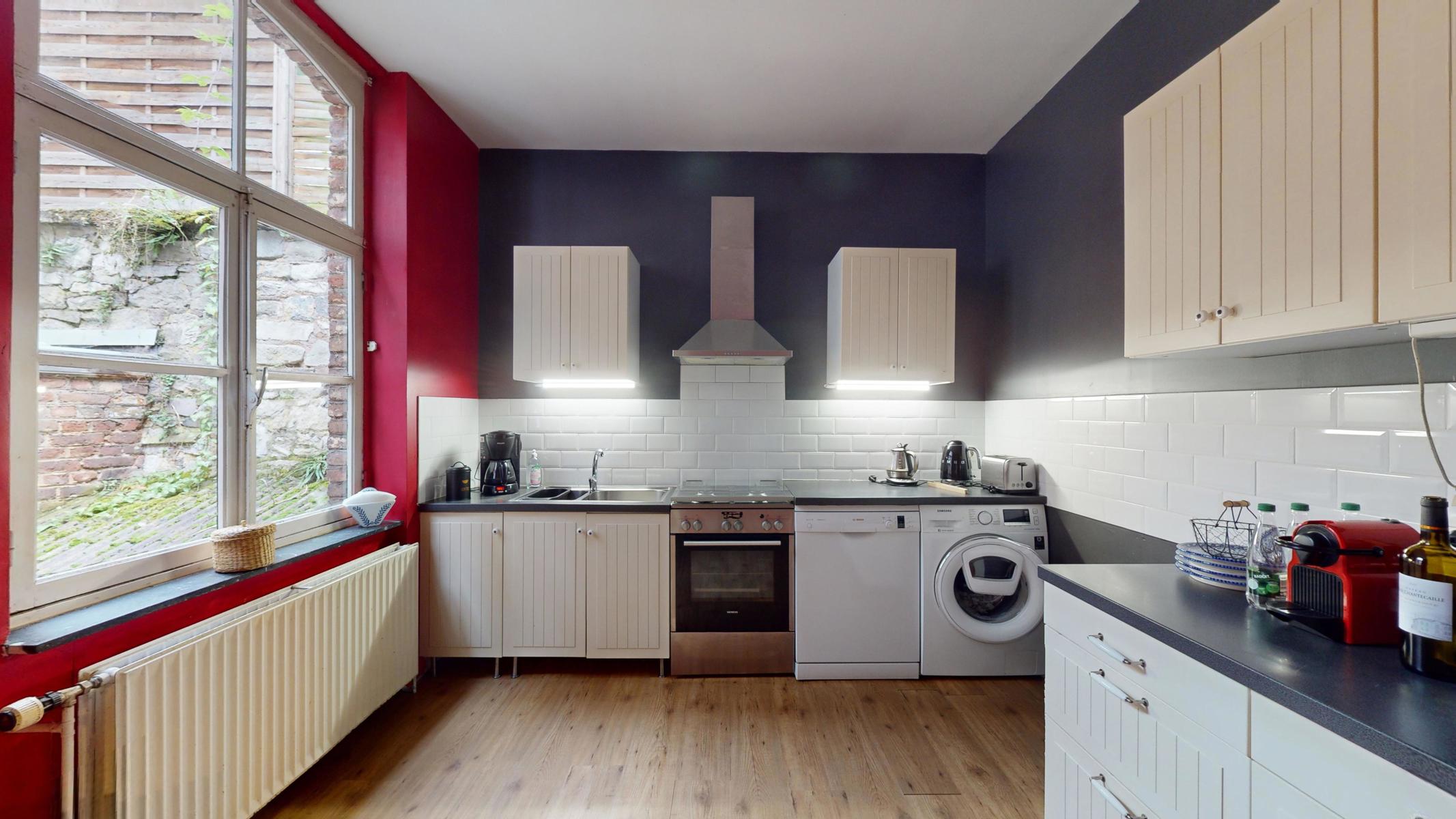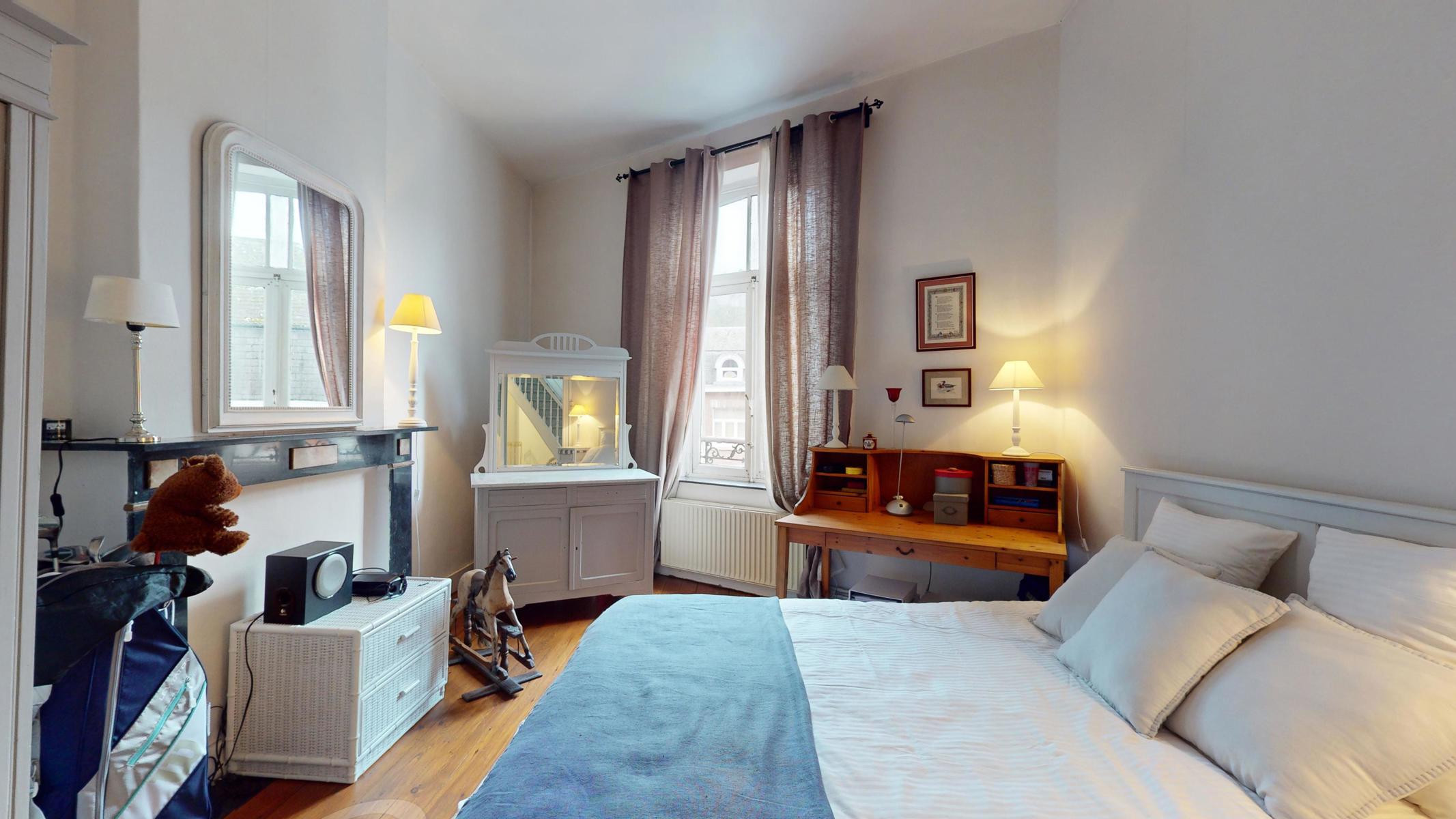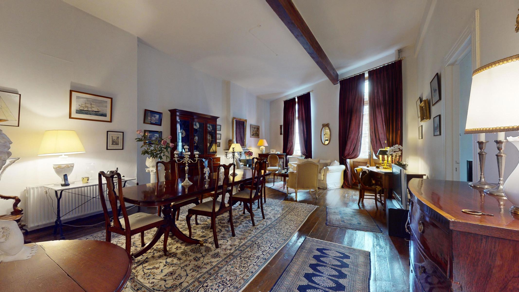 DINANT – Situé en plein centre-ville, à proximité immédiate de la gare et du pont Charles de Gaulle, cet ensemble immobilier bénéficie d’un emplacement privilégié face à la collégiale et à la citadelle. Il se compose de deux immeubles de rapport totalisant cinq unités. Le bâtiment principal comprend, au rez-de-chaussée, une vaste surface commerciale de ± 190 m² avec réserve. Aux étages supérieurs, un logement de fonction s’étend sur trois niveaux et offre deux salons, une cuisine, une salle à manger, trois chambres, une salle de bain ainsi qu’un grenier aménageable. Le second bâtiment, accessible par une entrée indépendante située dans une rue latérale, se compose de trois logements. L’appartement du premier étage, d’une superficie de ± 80 m², est à rénover entièrement et comprend une pièce de vie lumineuse, une cuisine, une salle de bain et deux chambres. Au deuxième étage, un appartement de ± 88 m², actuellement loué, dispose de trois chambres, salon, cuisine, sdb. Enfin, au dernier étage, des combles aménageables sur une surface de 92 m² offrent un beau potentiel d’agrandissement. Ce vaste ensemble de caractère se prête à de nombreux projets immobiliers, qu’il s’agisse d’un développement résidentiel, d’un commerce ou d’un établissement horeca. Une opportunité rare au cœur de Dinant ! Technique: PEB D-E-G, chaudière ind. gaz, Electricité non conforme.