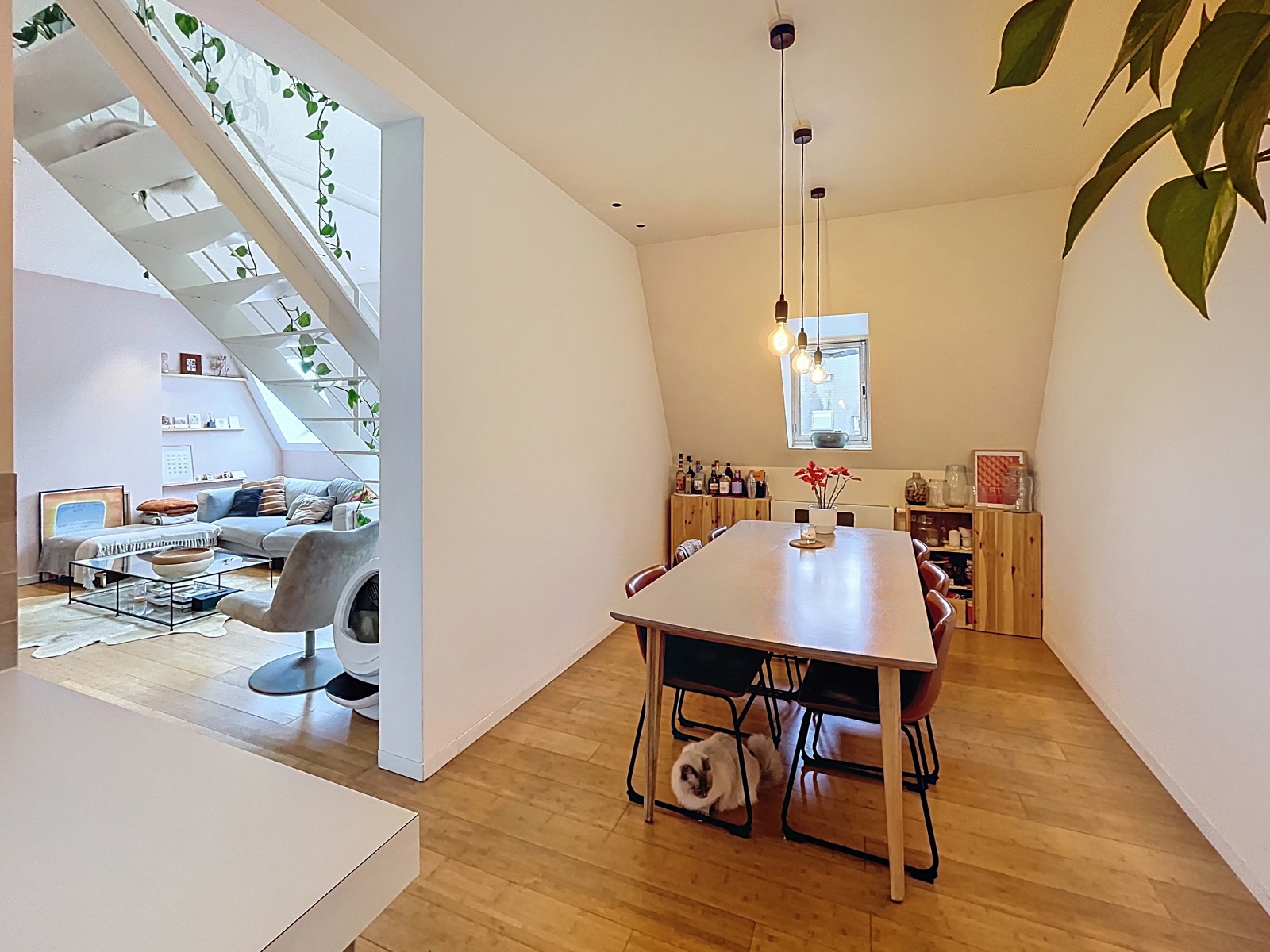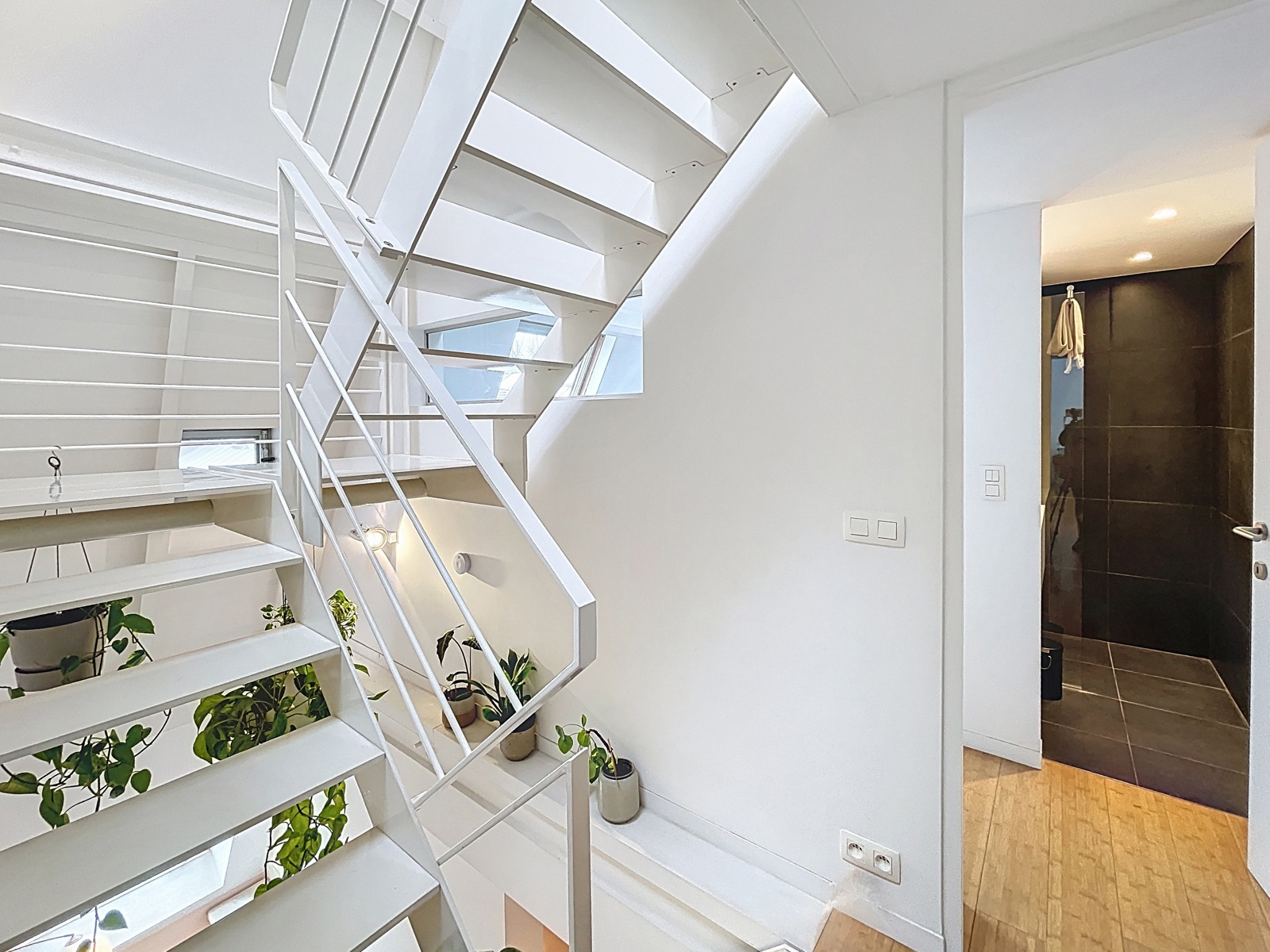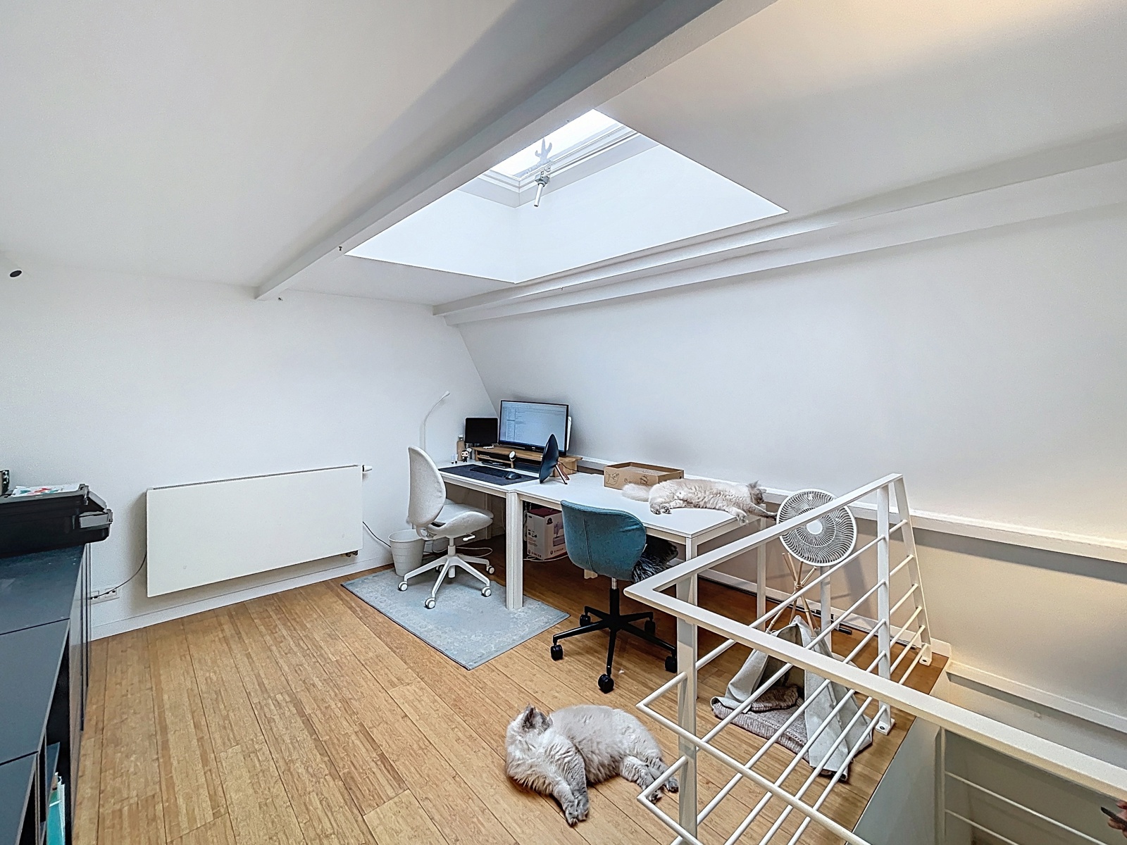 Situé à Anderlecht, à deux pas de la Gare du Midi (Métro, Eurostar, Thalys,…), By the Way vous propose ce magnifique loft triplex de 145 m² situé au sein d’un parc privé et paisible d’un hectare. Implanté dans un petit immeuble historique entièrement rénové en 2015, ce bien séduit par ses volumes et sa luminosité. Il se compose, au premier niveau, d’un hall d’entrée avec vestiaire et WC séparé, menant à un vaste espace de vie ouvert et baigné de lumière comprenant le salon, la salle à manger ainsi qu’une cuisine moderne entièrement équipée. Aux étages, vous trouverez une spacieuse suite parentale de 23 m² disposant de sa propre salle de bain, une seconde chambre de 21 m² avec salle de douche à l’italienne, d’un dressing et d’un WC séparé. Le dernier niveau accueille également un bureau ouvert. Les charges communes s’élèvent à 200 €/mois et couvrent l’électricité des parties communes, l’entretien de l’immeuble et du jardin, l’assurance du bâtiment ainsi que le fonds de réserve. Les compteurs de gaz, d’eau et d’électricité sont individuels. Un local vélos sécurisé est à disposition et un emplacement de parking obligatoire (en supplément pour 20.000€) complète le bien. Techniques: PEB C. Électricité conforme. Parquet au sol. Libre à l’acte. Une commission d’agence de 3 % HTVA est à charge de l’acquéreur.