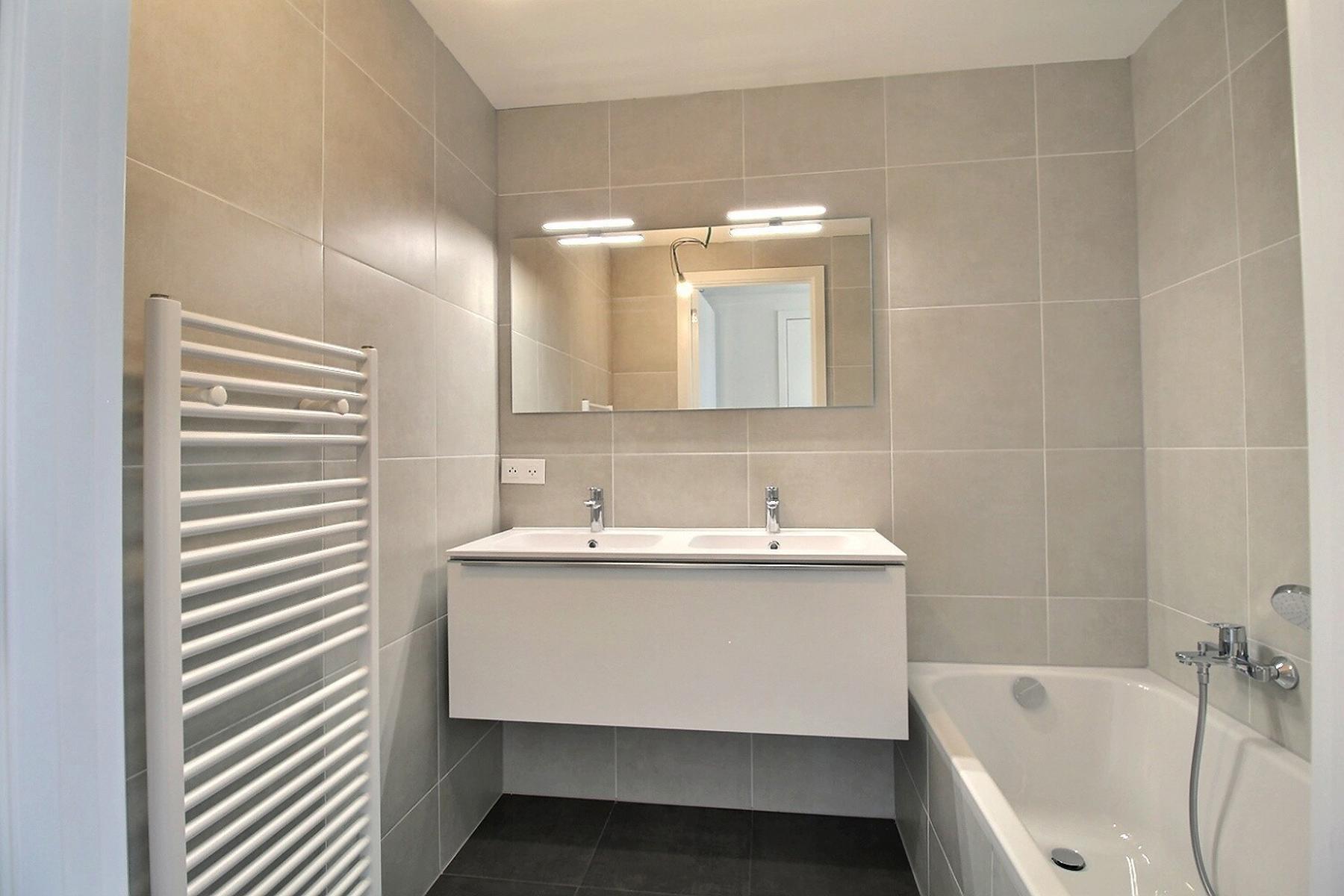 Localisé sur la commune verdoyante d’Uccle, By the Way vous présente ce bel appartement neuf (première occupation) composé de 2 chambres. Il se trouve au 3ème étage sur 4 avec ascenseur. Composition : hall d’entrée avec vidéo-phone et porte blindée, un lumineux séjour avec cuisine ouverte entièrement équipée (frigo, congélateur, four, micro-ondes, lave-vaisselle, taque de cuisson et hotte), une terrasse de +- 8 m2 exposée Nord-Ouest, magnifique vue, une chambre de 15,4 m2, une seconde de 12 m2, une salle de bains avec double vasque, une salle de douche, un WC séparé, une buanderie avec espace pour la machine à laver + sèche linge. Parquet partout. Divers : chaudière individuelle, l’appartement dispose d’une cave, le bâtiment possède deux locaux à vélo et un local poubelle. L’appartement jouit d’une localisation idéale grâce à sa bonne accessibilité à pied, à vélo et en voiture, à sa proximité des transports en commun (tram 51 et bus 60) et la gare de Calevoet. Le projet se situe à proximité immédiate de nombreuses crèches, d’écoles dont le Lycée Français, de commerces locaux et supermarchés classiques ou bio et de restaurants. Charges :130 €/mois (provisions pour les parties communes). L’eau, le chauffage et l’électricité sont des consommations individuelles. PEB A-. Possibilité de parking Smart ou Moto pour 50€/mois.