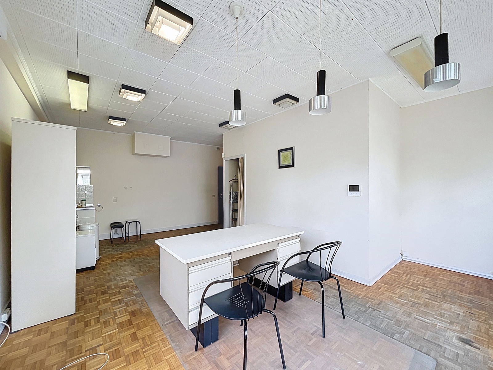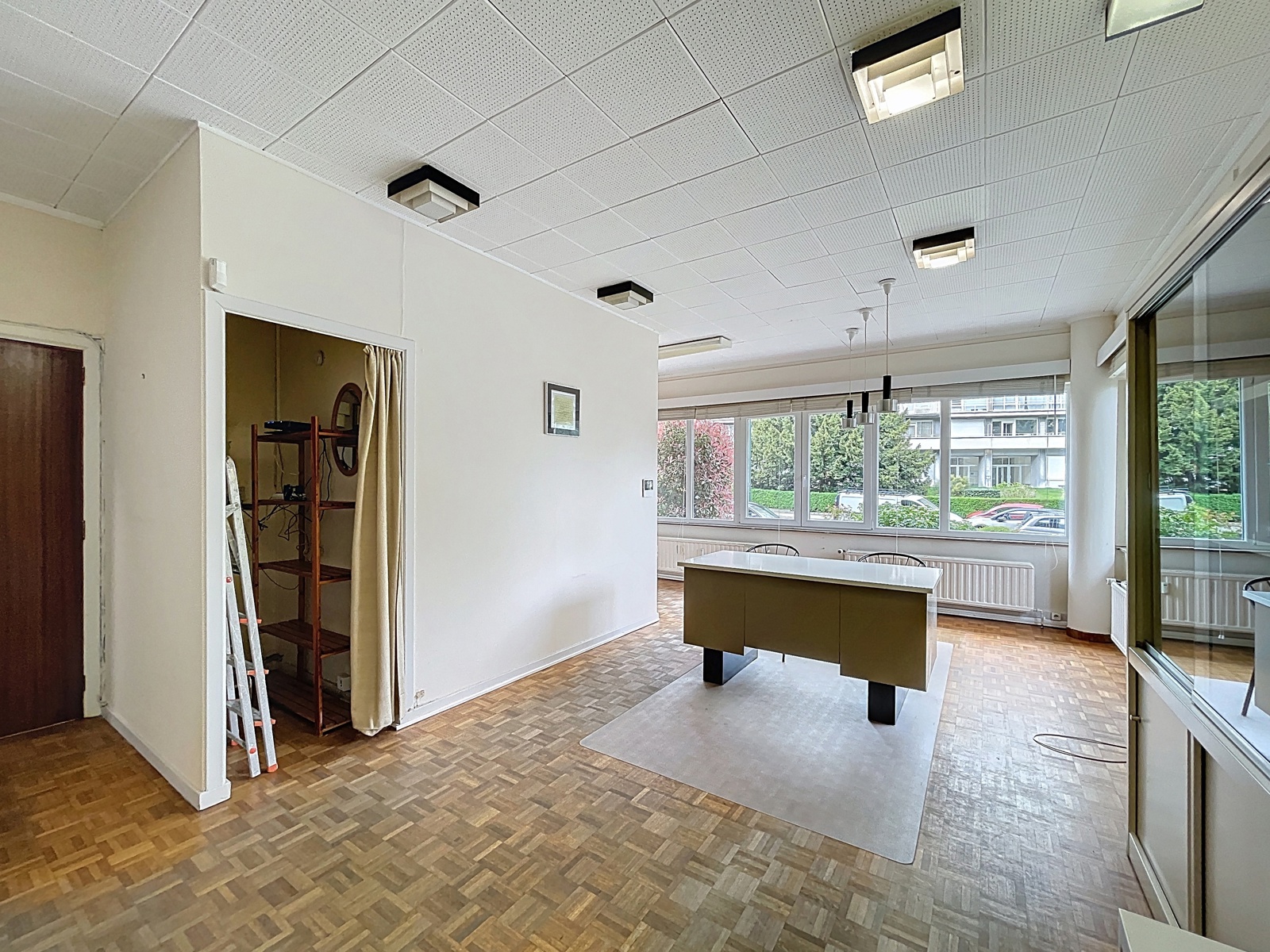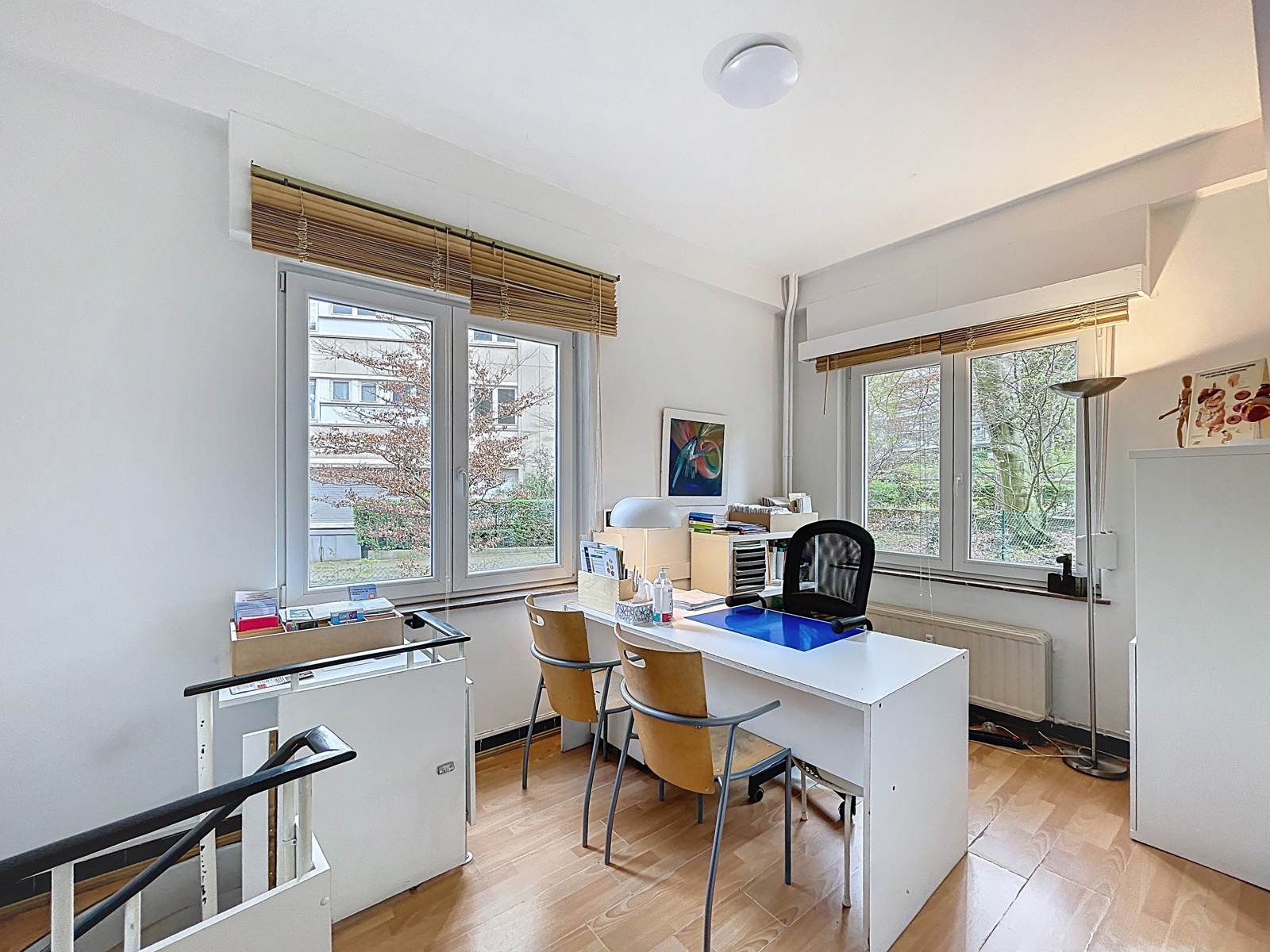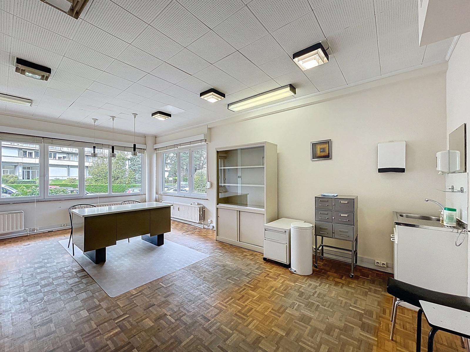 Situé sur la commune d’Auderghem, à la frontière de Woluwe-Saint-Pierre, dans le quartier du Chant d’Oiseau, By the Way vous propose cet espace bureau de ± 144m² sur deux étages avec entrée privative, actuellement utilisé comme centre médical. Composition : au rez-de-chaussée : hall d’entrée avec espace d’accueil, WC séparé, un premier bureau de ± 36m², un second bureau de ± 13m², salle d’attente, un troisième bureau de ± 10m² avec un quatrième bureau de ± 11m² en suite. À l’étage inférieur : un cinquième bureau de ± 10m², un sixième bureau de ± 17m², une salle de douche et un espace de stockage. Techniques : chaudière commune au gaz, volets électriques et volets manuels. Achat de parts de société possible.