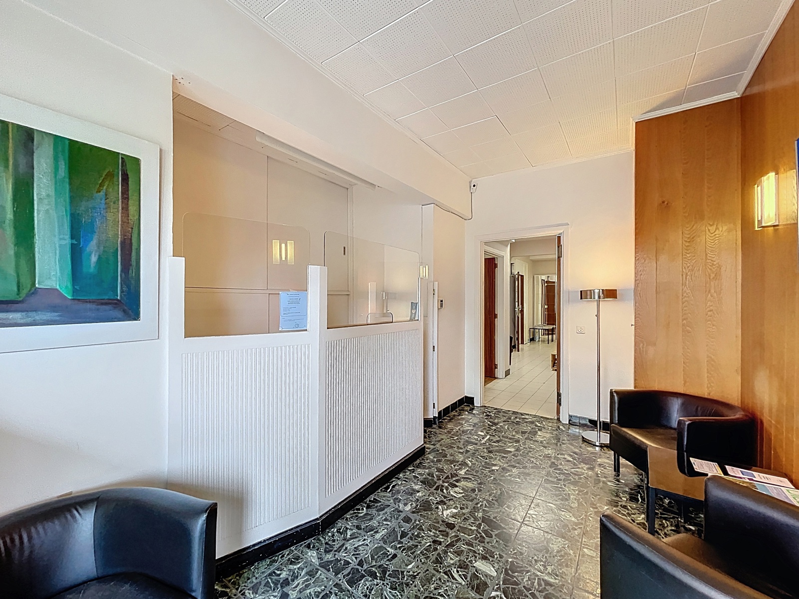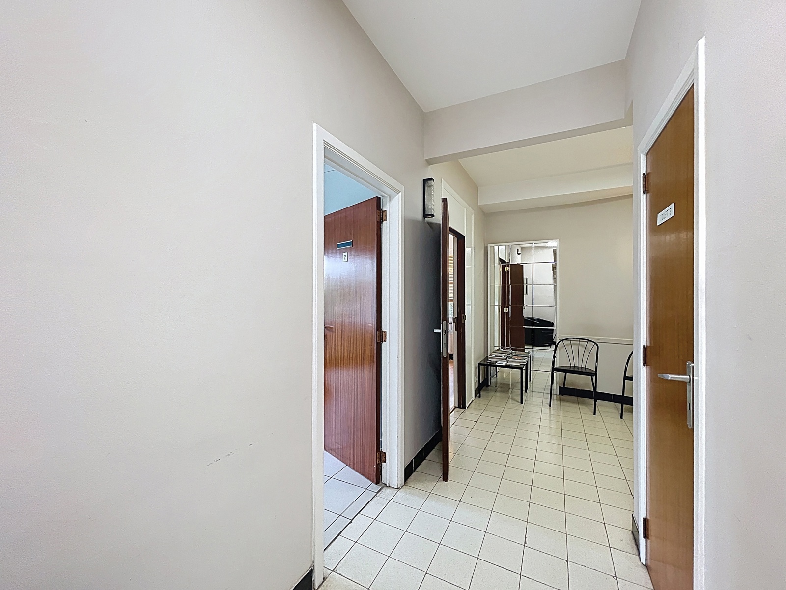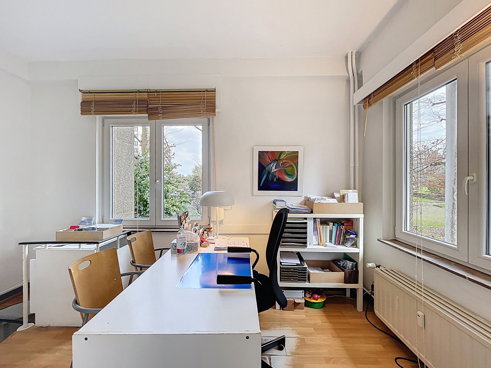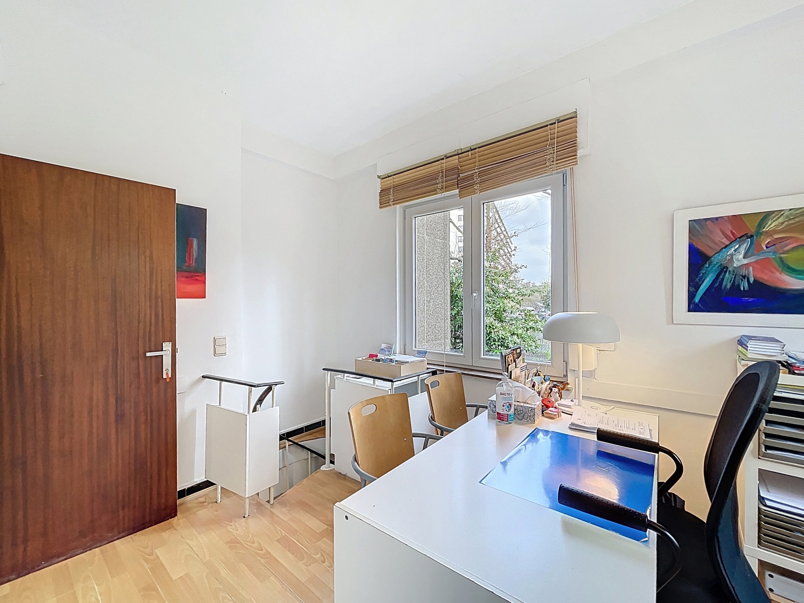 Situé sur la commune d’Auderghem, à la frontière de Woluwe-Saint-Pierre, dans le quartier du Chant d’Oiseau, By the Way vous propose cet espace bureau de ± 144m² sur deux étages avec entrée privative, actuellement utilisé comme centre médical. Composition : au rez-de-chaussée : hall d’entrée avec espace d’accueil, WC séparé, un premier bureau de ± 36m², un second bureau de ± 13m², salle d’attente, un troisième bureau de ± 10m² avec un quatrième bureau de ± 11m² en suite. À l’étage inférieur : un cinquième bureau de ± 10m², un sixième bureau de ± 17m², une salle de douche et un espace de stockage. Techniques : chaudière commune au gaz, volets électriques et volets manuels. Achat de parts de société possible.