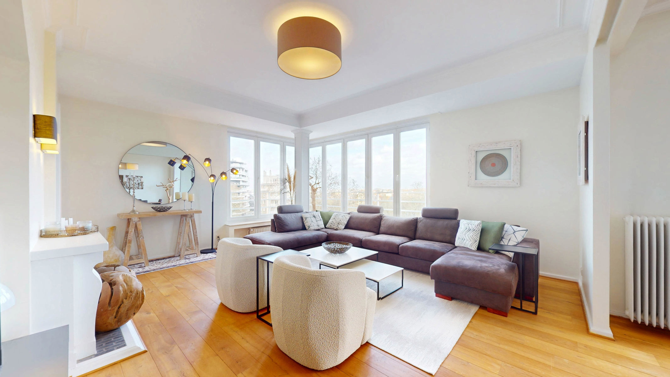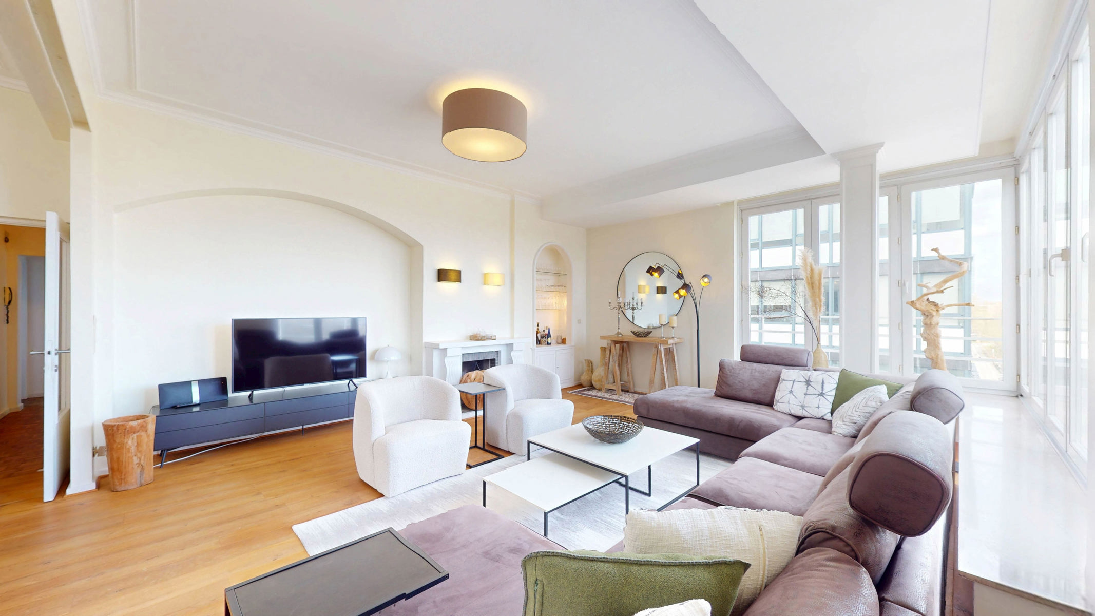 By The Way vous propose ce splendide appartement d’environ 115m2 bruts selon PEB au 5e étage avec ascenseur. Situé sur la prestigieuse Avenue Louise, à deux pas de l’Abbaye et du bois de la Cambre mais aussi du Jardin du roi. Composition : Hall d’entrée avec placards, séjour et salle à manger de +/- 47m2, accès au balcon avant, cuisine séparée, hall de nuit avec accès aux deux chambres de +/ 16,5 et 16m2, placards dans les chambres ainsi que le hall de nuit, salle de bains avec douche dans le bain et WC. DIVERS : PEB « E », électricité conforme, conciergerie, porte blindée, local poubelle, cave et chambre de bonne. CHARGES : de +/- €540/mois comprenant ; Communs généraux, chauffage et eau, administration, assurance, frais privatifs…