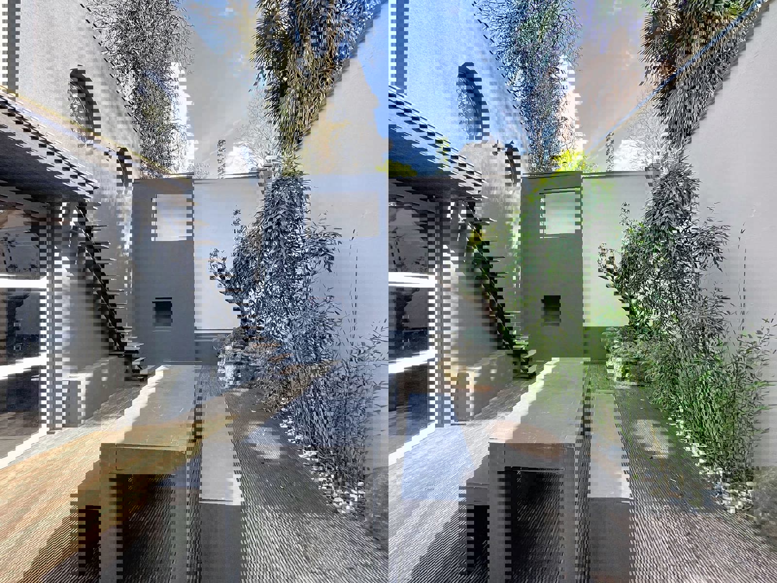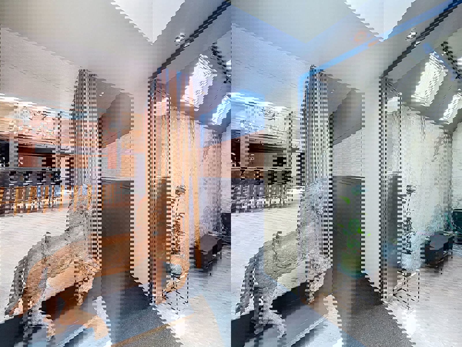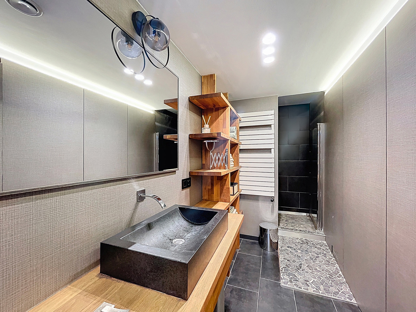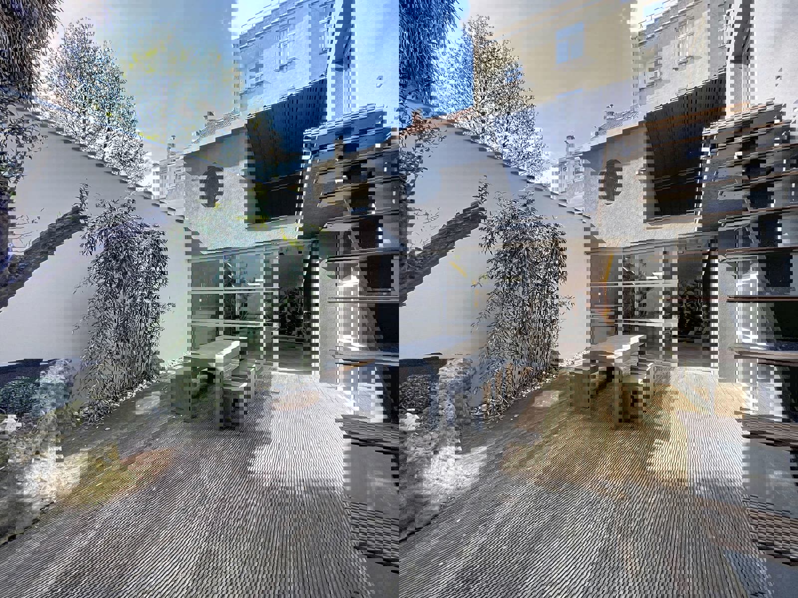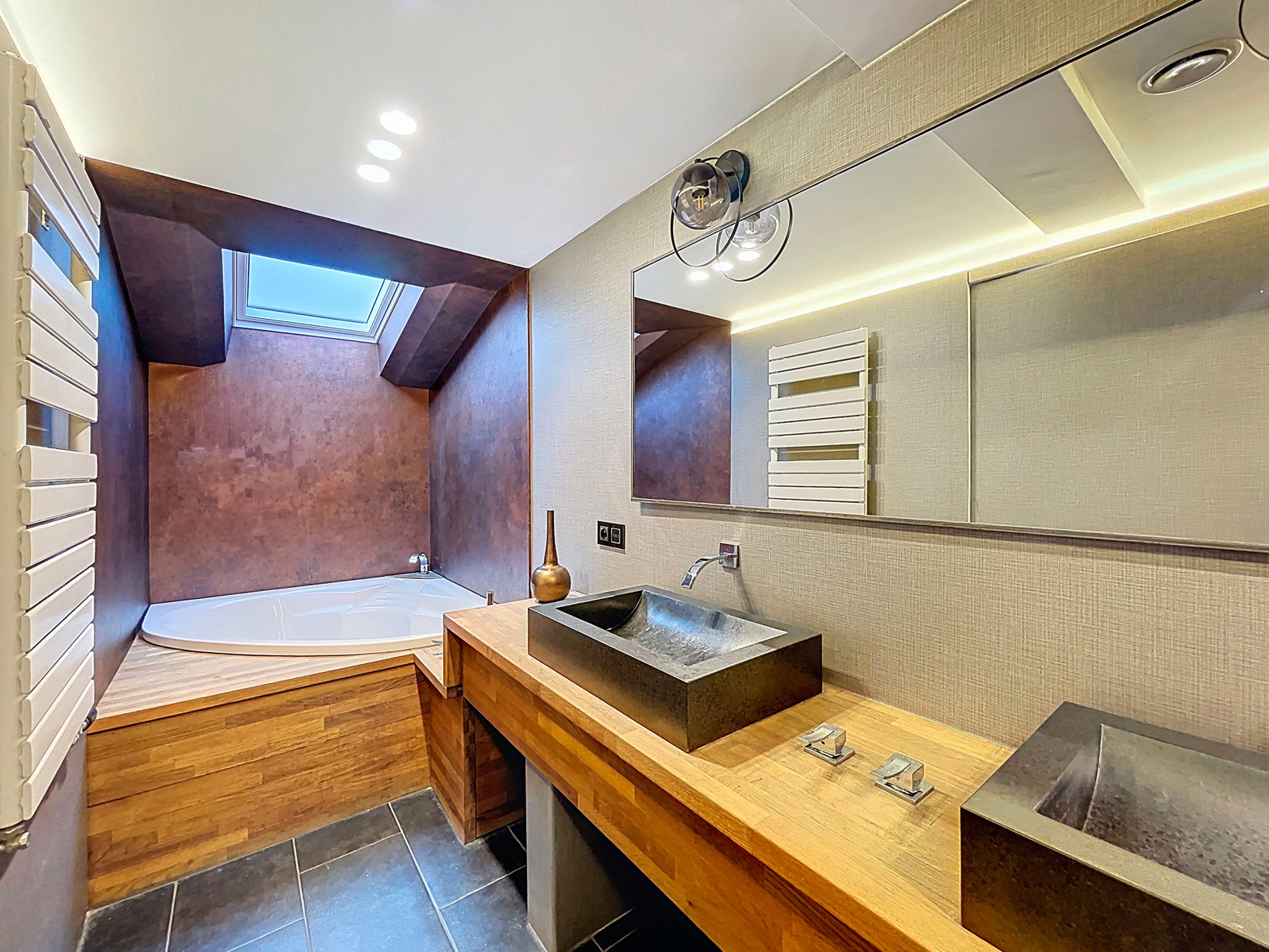 UCCLE – Situé à proximité du Parvis Saint Pierre, ses nombreux commerces et restaurants, By the Way vous présente cette arrière-maison de +/- 285 m² brut selon PEB, fraichement rénovée et entièrement meublée. Ce havre de paix est niché au RDC arrière du bâtiment principal, à l’abri des regards. Ses spacieux volumes sont répartis sur 2 étages, avec au RDC: 1 hall d’entrée, 1 vestaire, une salle-à-manger avec cuisine américaine hyper-équipée, 1 grand séjour principal avec écran géant intégré et cheminée au gaz, 1 deuxième séjour avec bar, 1 chambre de +/- 12 m² avec placards et écran encastrés, 1 salle de douche avec WC, 2 bureaux (avec possibilité de faire une 4ème chambre), une buanderie et une magnifique terrasse de +/- 46 m² orientée Sud-Ouest. A l’étage on retrouve 2 chambres de +/- 17 m² et 10 m² avec chacune sa salle d’eau atenante: une salle de bain avec baignoire d’angle et douche et une salle de douche, 1 dressing et 1 WC séparé. Ce bien possède de nombreux rangements encastrés sur-mesure. Techniques: PEB C, Electricité conforme, chaudière à gaz à condensation Vaillant, VMC dans chaque pièce, climatiseurs réversibles, châssis double vitrage en aluminium, porte blindée, domotique et appareils connectés pour une commande à distance des équipements. Compteurs d’eau, électricité et gaz individuels. Charges communes: +/- 150€/mois comprenant l’entretien des communs, l’asurance et les frais de syndics | Toutes les infos et visite virtuelle disponible sur notre site: https://bytheway.immo/bien/7546177-brugmann-510/ !