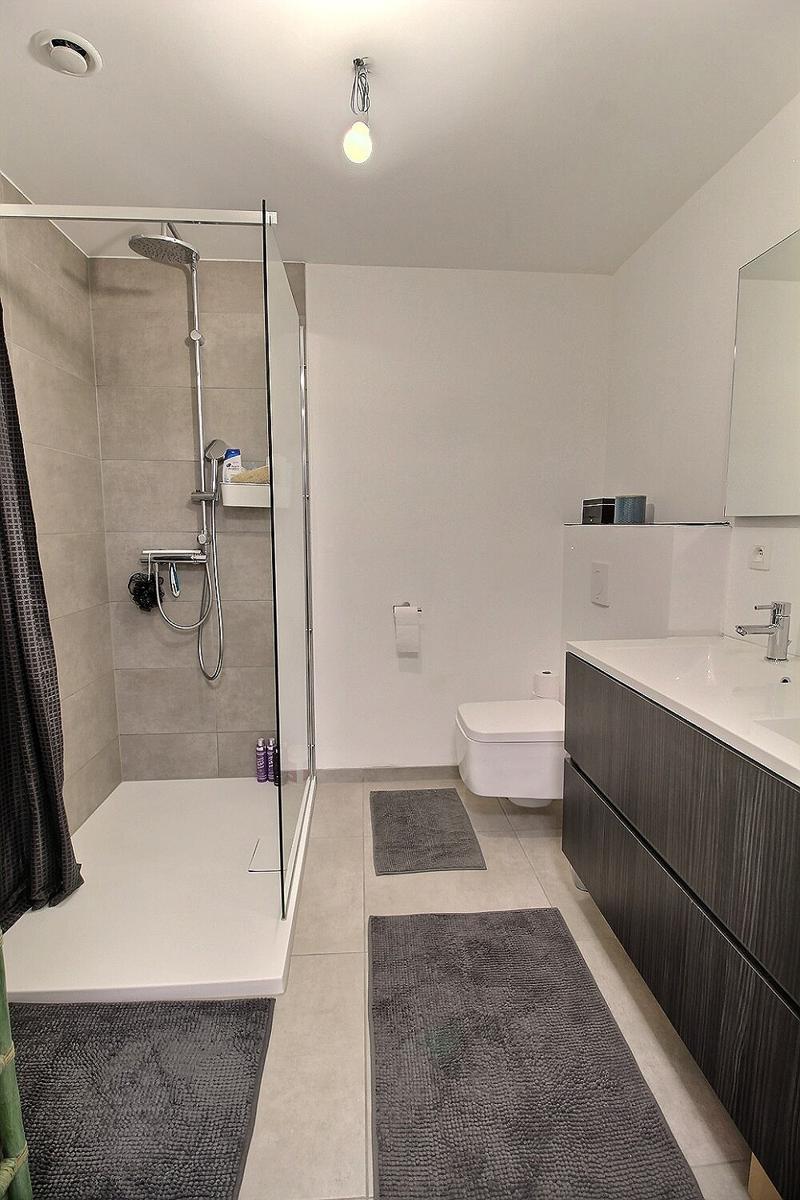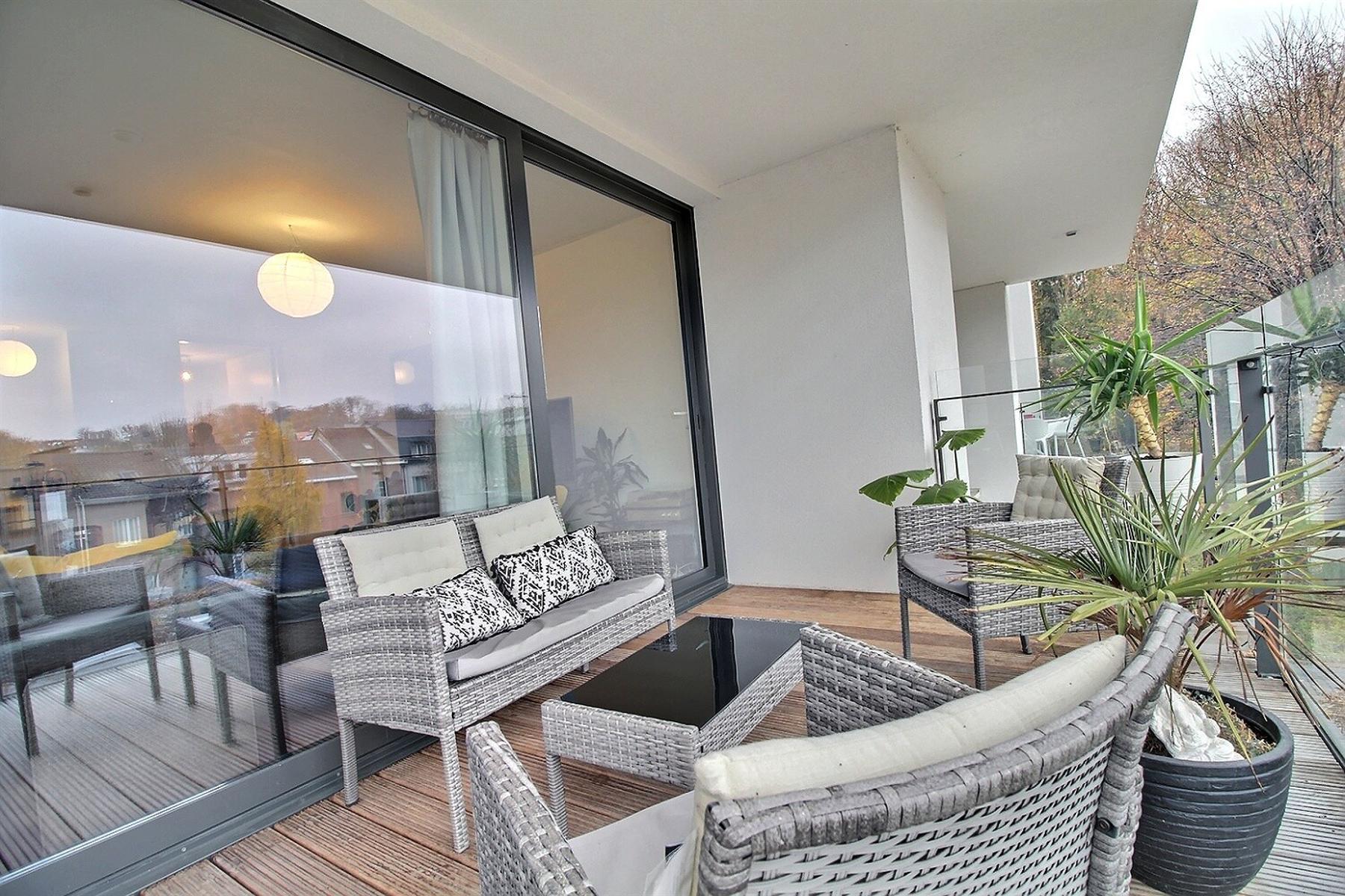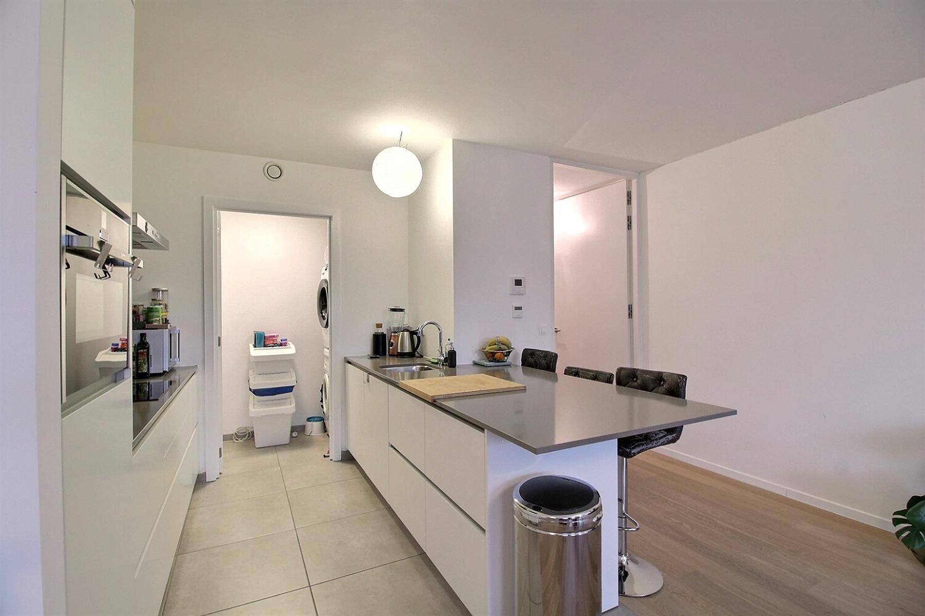 In the nice area of the Globe, Avenue Adolphe Wansart 10A in 1180 Uccle, By The Way proposes you to rent this superb unfurnished low energy flat (PEB : B+) located in a luxury residence. The 99m2 flat is located on the ground floor on the entrance side (1st floor on the terrace side) and is composed of a large living room with a fully equipped open kitchen, a large terrace facing South, 2 nice bedrooms, a shower room, laundry room, separate toilet, cellar and indoor parking space: 100€/month (mandatory). Close to shops, public transport and the ring. Charges: 150€/month including maintenance, hot water and heating