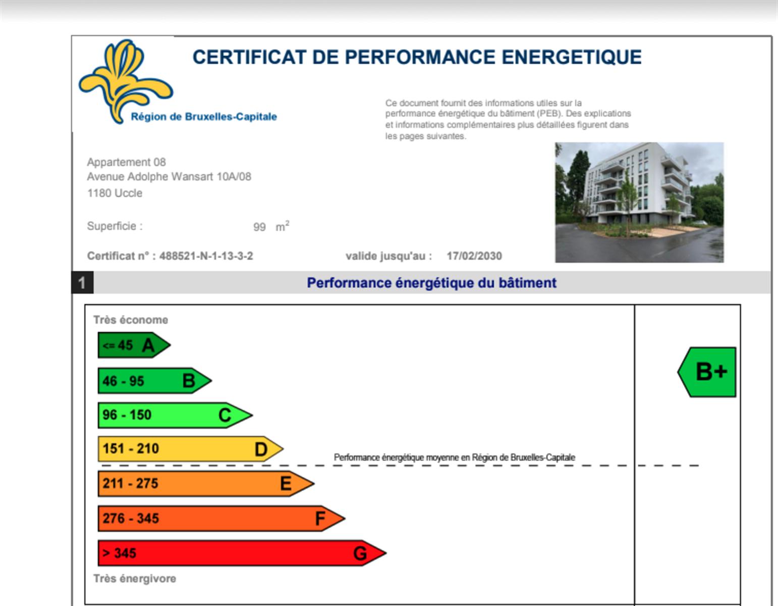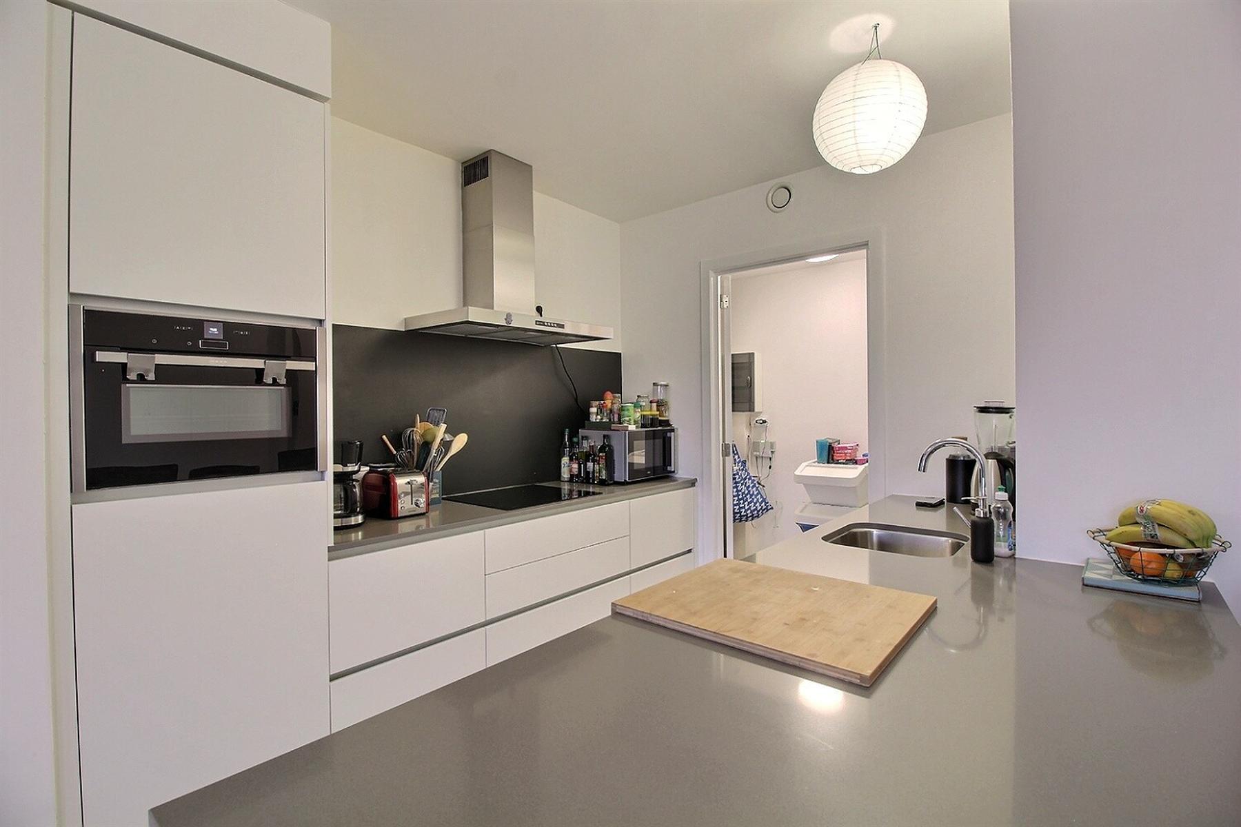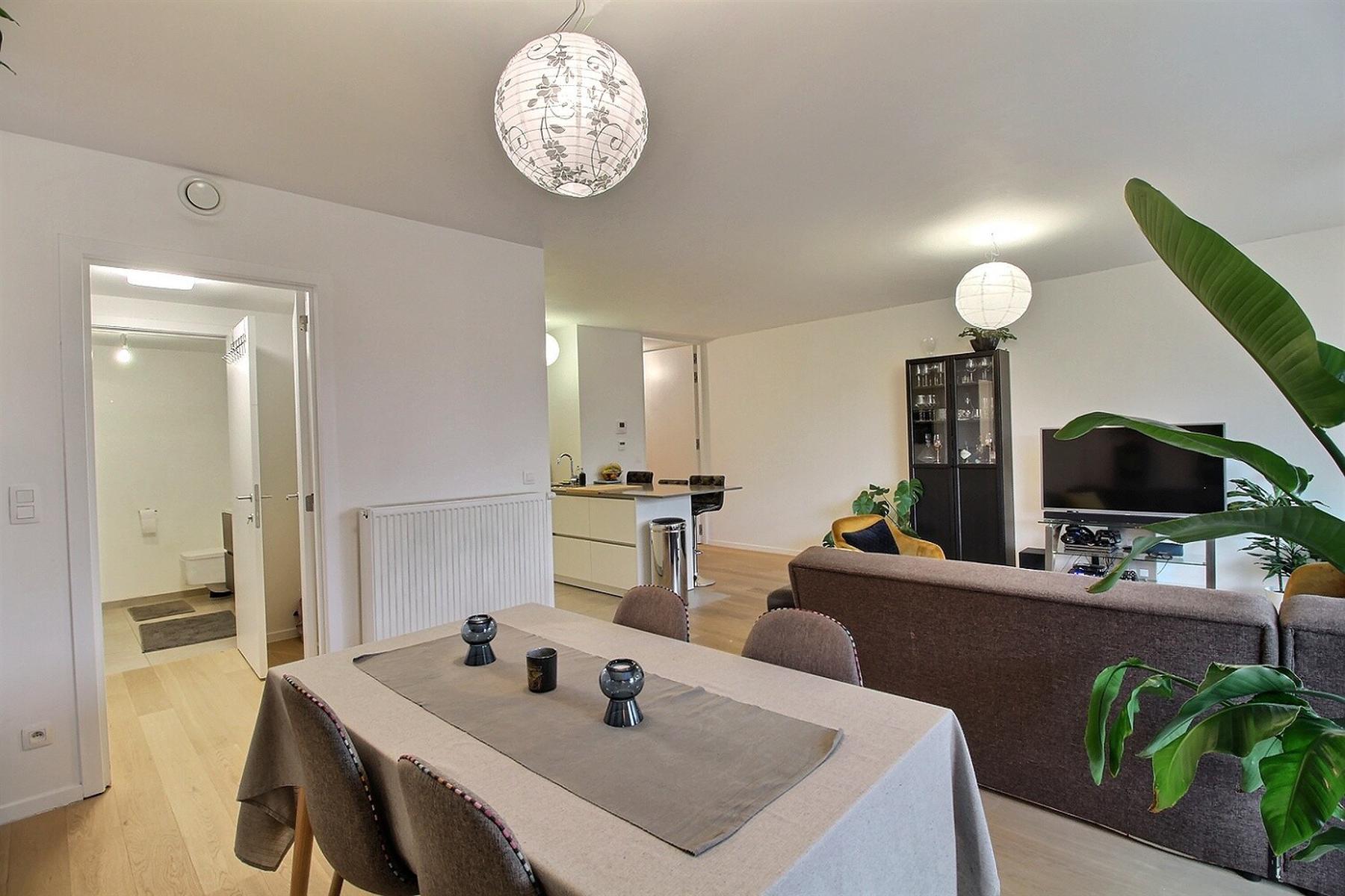 In the nice area of the Globe, Avenue Adolphe Wansart 10A in 1180 Uccle, By The Way proposes you to rent this superb unfurnished low energy flat (PEB : B+) located in a luxury residence. The 99m2 flat is located on the ground floor on the entrance side (1st floor on the terrace side) and is composed of a large living room with a fully equipped open kitchen, a large terrace facing South, 2 nice bedrooms, a shower room, laundry room, separate toilet, cellar and indoor parking space: 100€/month (mandatory). Close to shops, public transport and the ring. Charges: 150€/month including maintenance, hot water and heating