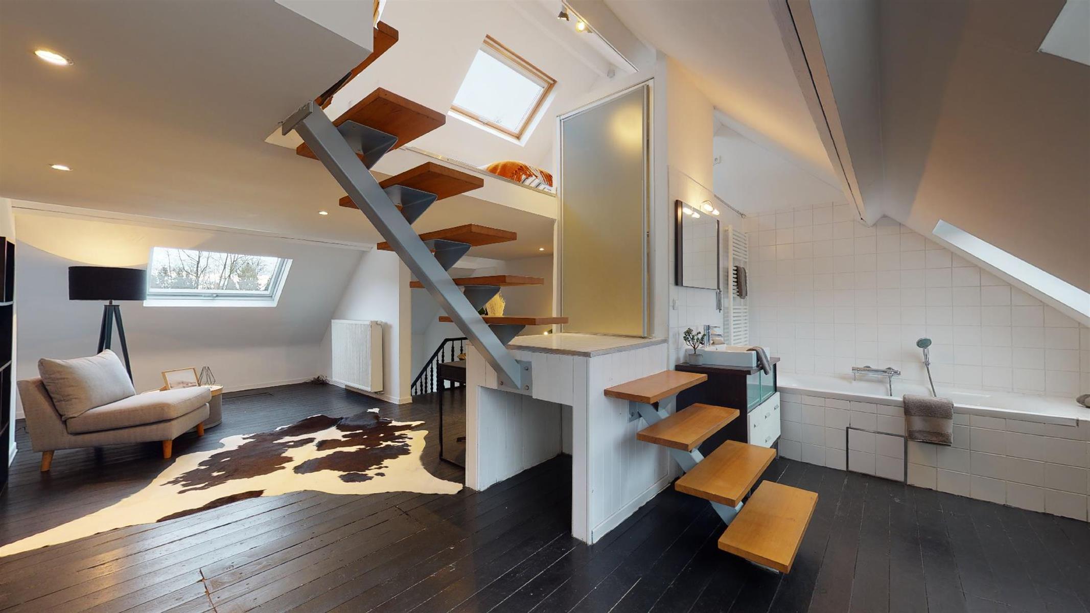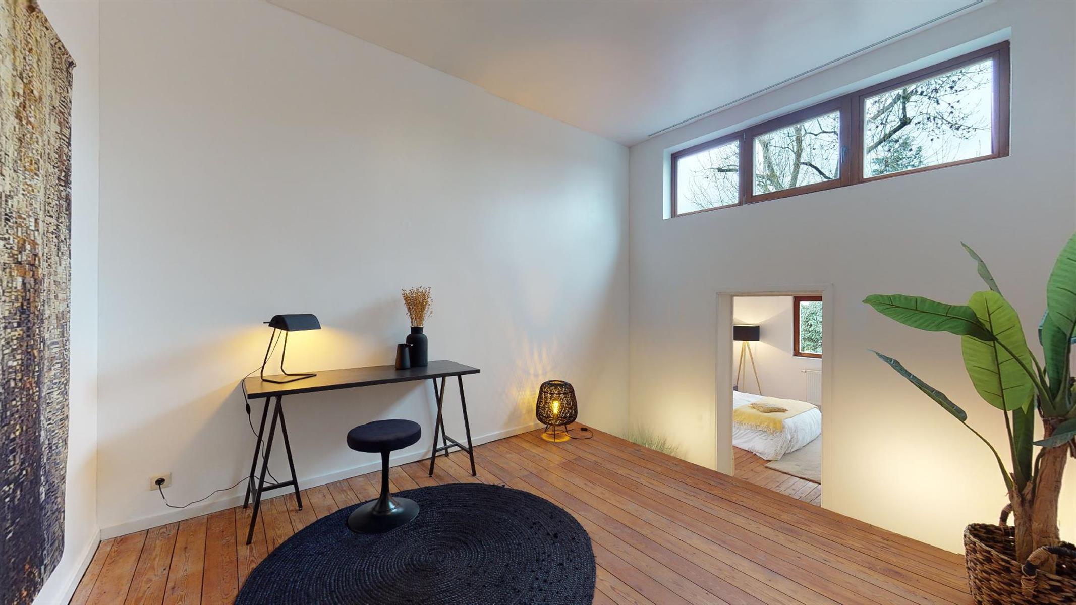 By the Way offers you a 4 bedroom house + office ideally located close to the Soignes forest and at the entrance of Brussels on the border of Rhode-Saint-Genèse and Uccle, very pleasant SOUTH orientation. The property is composed as follows: GROUND FLOOR: Entrance hall with cloakroom and guest WC, large open plan kitchen of +/-16m2 with breakfast area, dining room of +/- 15m2, living room of +/- 23m2 with access to a wooden terrace fully equipped with small spotlights to illuminate the garden in the evening // 1st FLOOR: bedroom n°1 of +/- 13 m2, bedroom n°2 of +/-13m2, bedroom n°3 of +/-15m2, study of +/-11m2, shower room with washbasin and WC // 2nd FLOOR: Bedroom n°4 on two levels which could be the master suite covering a total surface area of +/- 51m2 including a bathroom with separate shower and WC // BASEMENT: 3 Cellars for a surface area of +/- 41m2 MISCELLANEOUS: PEB “G”, garden sheds, parking 2/3 spaces.