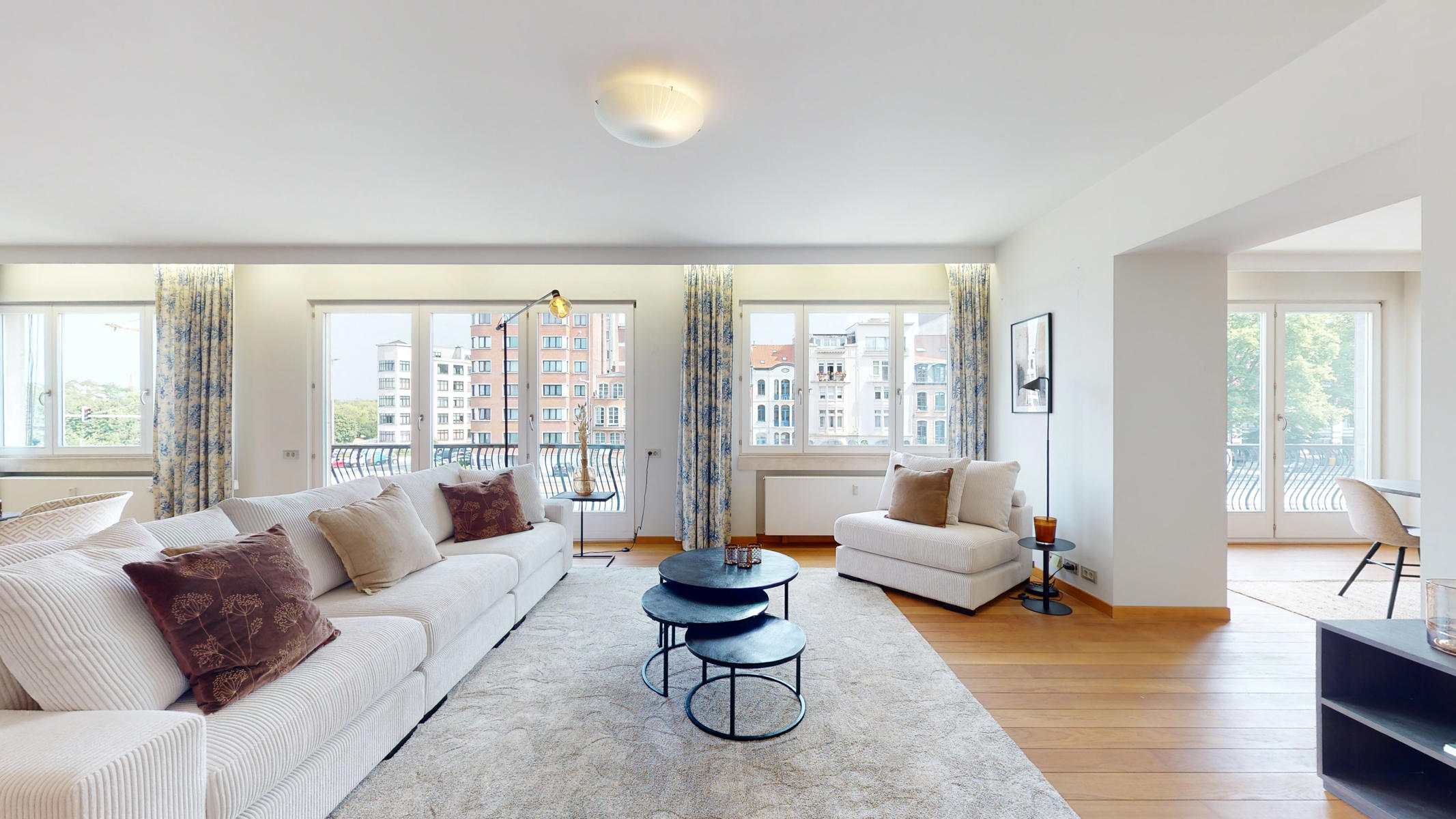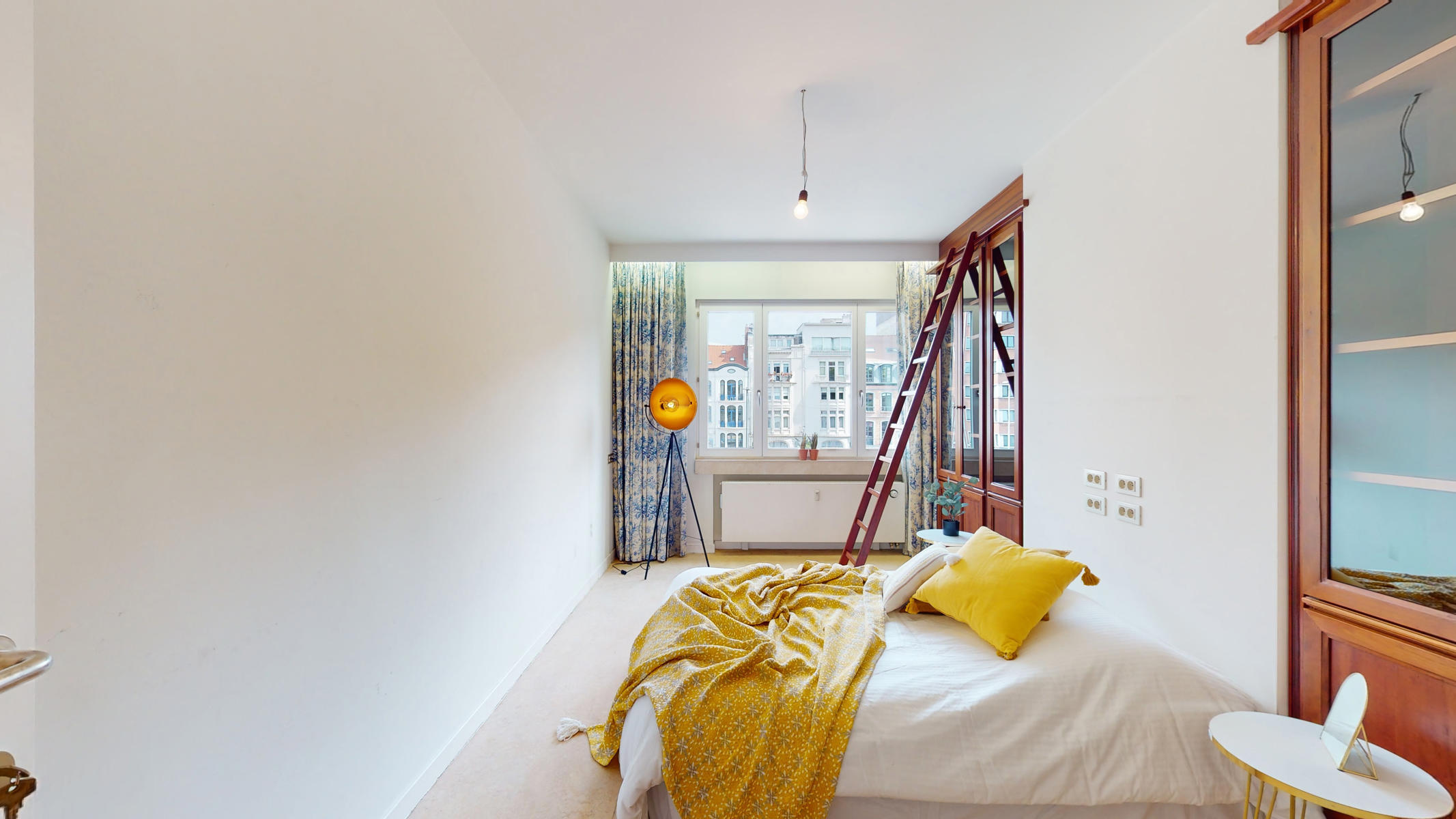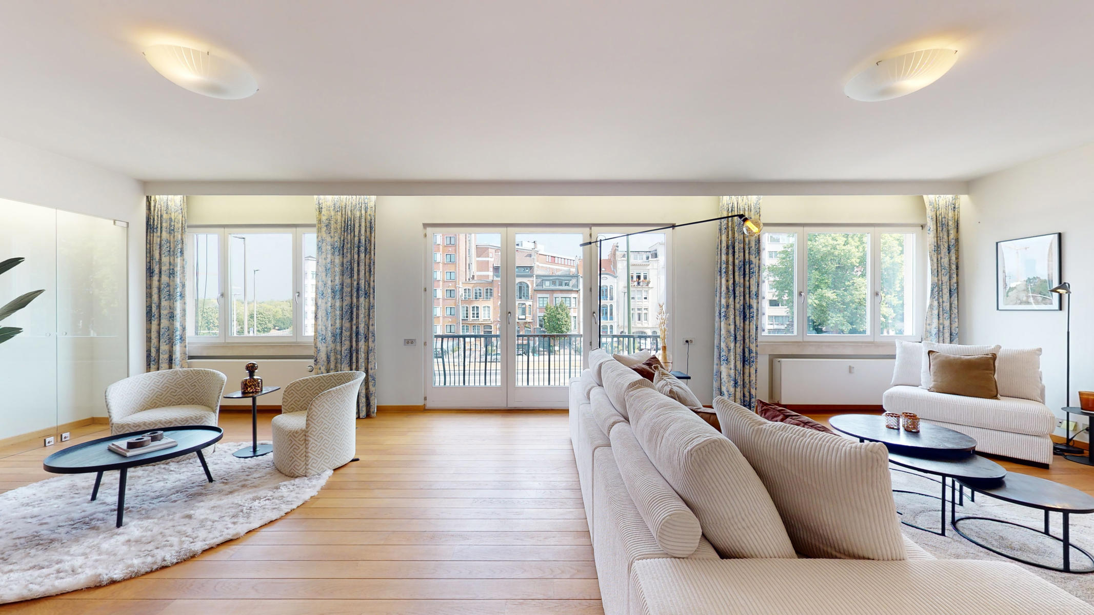In the very famous Diamant district, known for having seen Jacques Brel born, By the Way presents you this superb 3 bedroom flat of +- 220 m2 BRUT, in very good condition and its two private cellars. On the 2nd floor, with lift, of a well maintained building. The flat is composed as follows: A large entrance hall leading to a cloakroom with guest WC, a spacious living room of +- 50 m2 with solid wood parquet flooring, a fully equipped kitchen of +- 20 m2, a library, a master suite of +- 15 m2 and its adjoining bathroom with WC, 2 bedrooms of respectively +- 17 m2 and +- 17 m2, 1 bathroom with WC and bidet, a fitted dressing room and a laundry room. Two terraces of respectively +- 10 m2 and +- 8 m2 . Garage box for 2 cars in option at 45.000 € (optional). EPC C. Electricity NOT compliant, common gas boiler with calorimeters. DV wood frame. Charges +- 541€/month including RESERVE FUND, lift fees, provision for PRIVATE hot water and heating, common (syndic, building insurance, electricity).