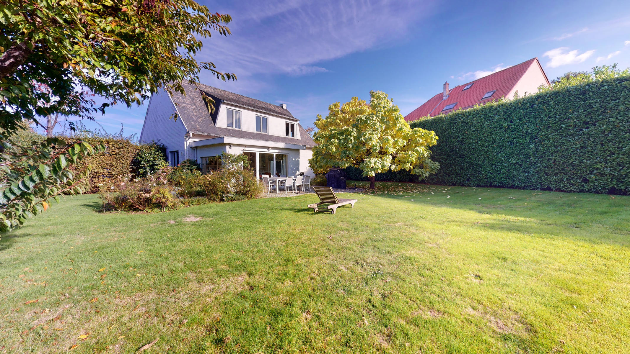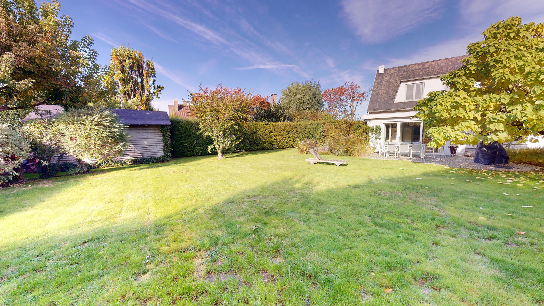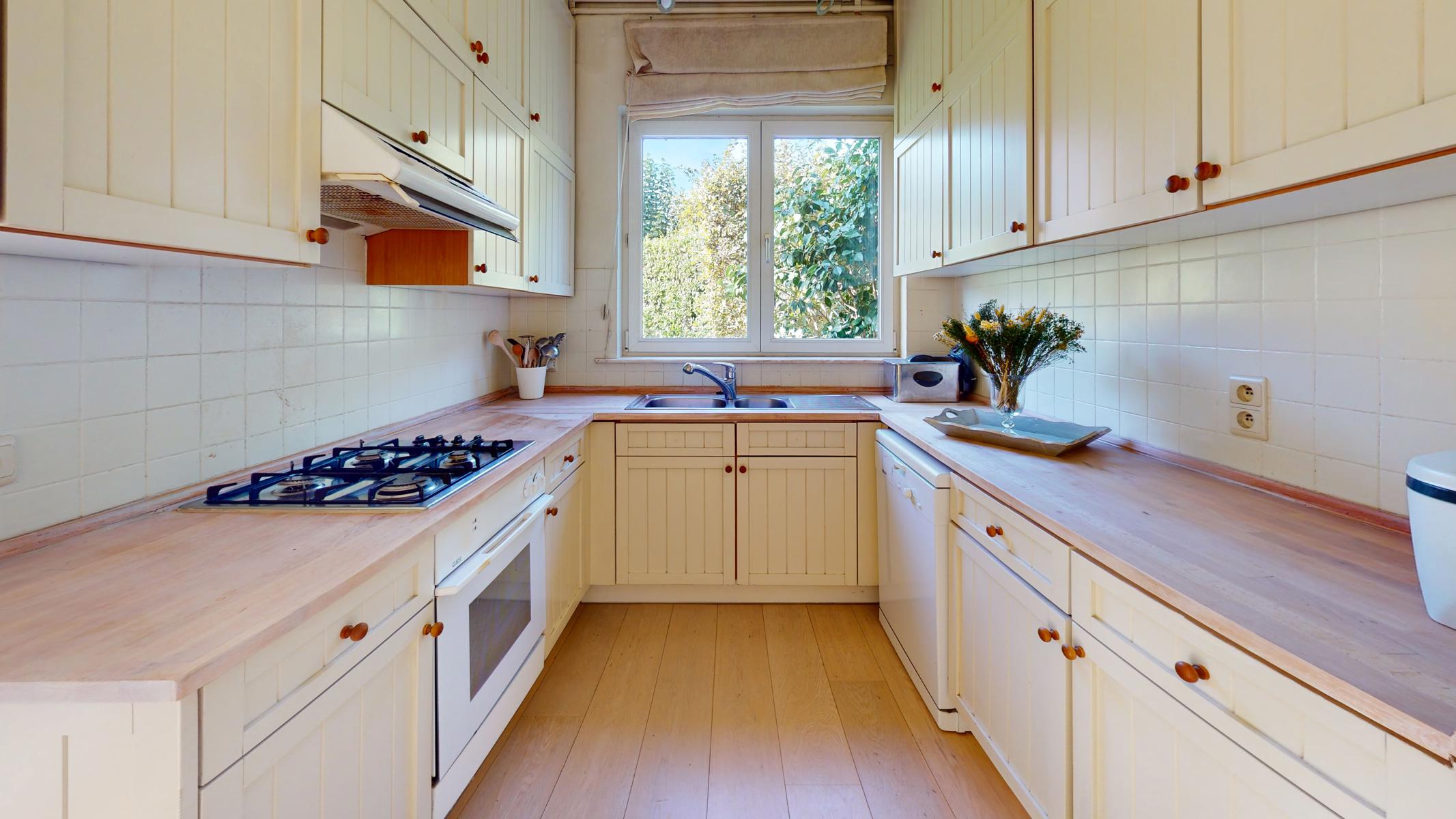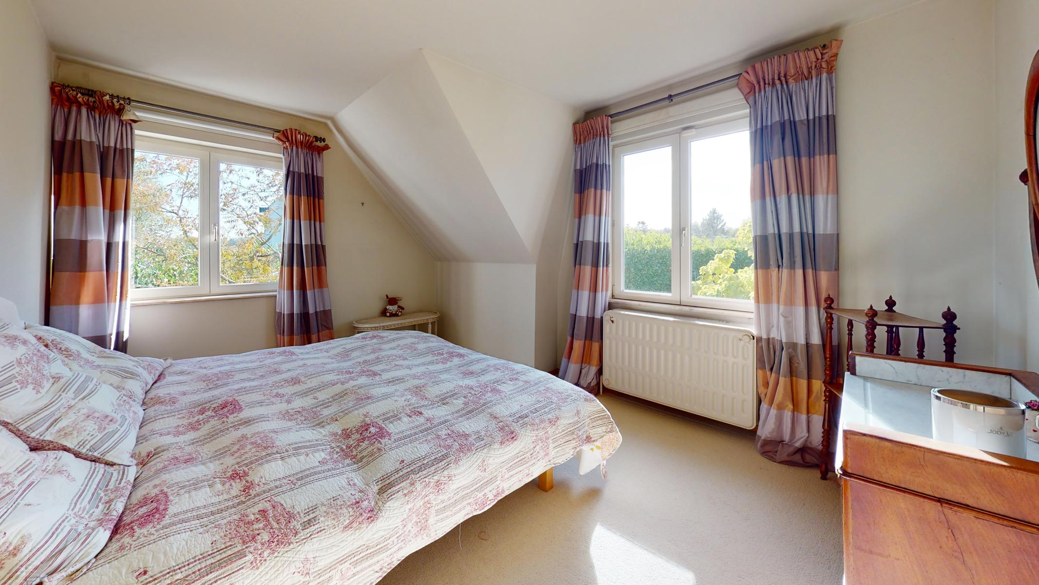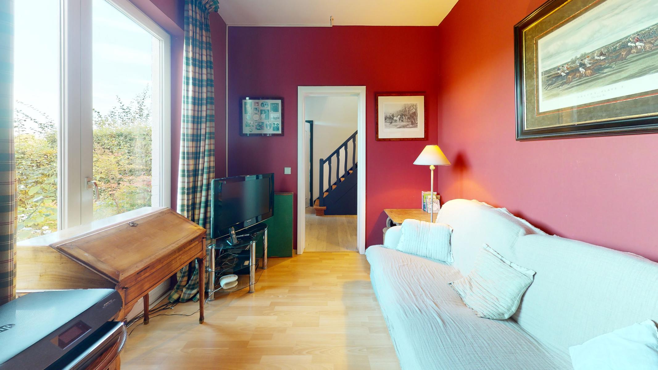 Located in a small enclosed area, in the “De Hoek” district of Rhode-Saint-Genèse, By the Way presents this charming 4-front villa, with a net living area of +/- 177 m2, situated on a magnificent plot of 10 ares 24 ca. It is composed as follows: Ground floor: entrance hall, a bedroom of +/- 11 m2, a large living room of +/- 44 m2 with open fire, a fully equipped kitchen giving access to a veranda opening onto a beautiful terrace and a beautiful flat garden, nicely planted and without vis-à-vis facing south-west with a garden chalet, separate toilet. On the first floor: night hall, a bathroom with double washbasin and WC, 4 bedrooms of +/- 17, 16, 14, 13 m2 including one with a shower room. Numerous cupboards. Attic for storage accessible by a retractable staircase.