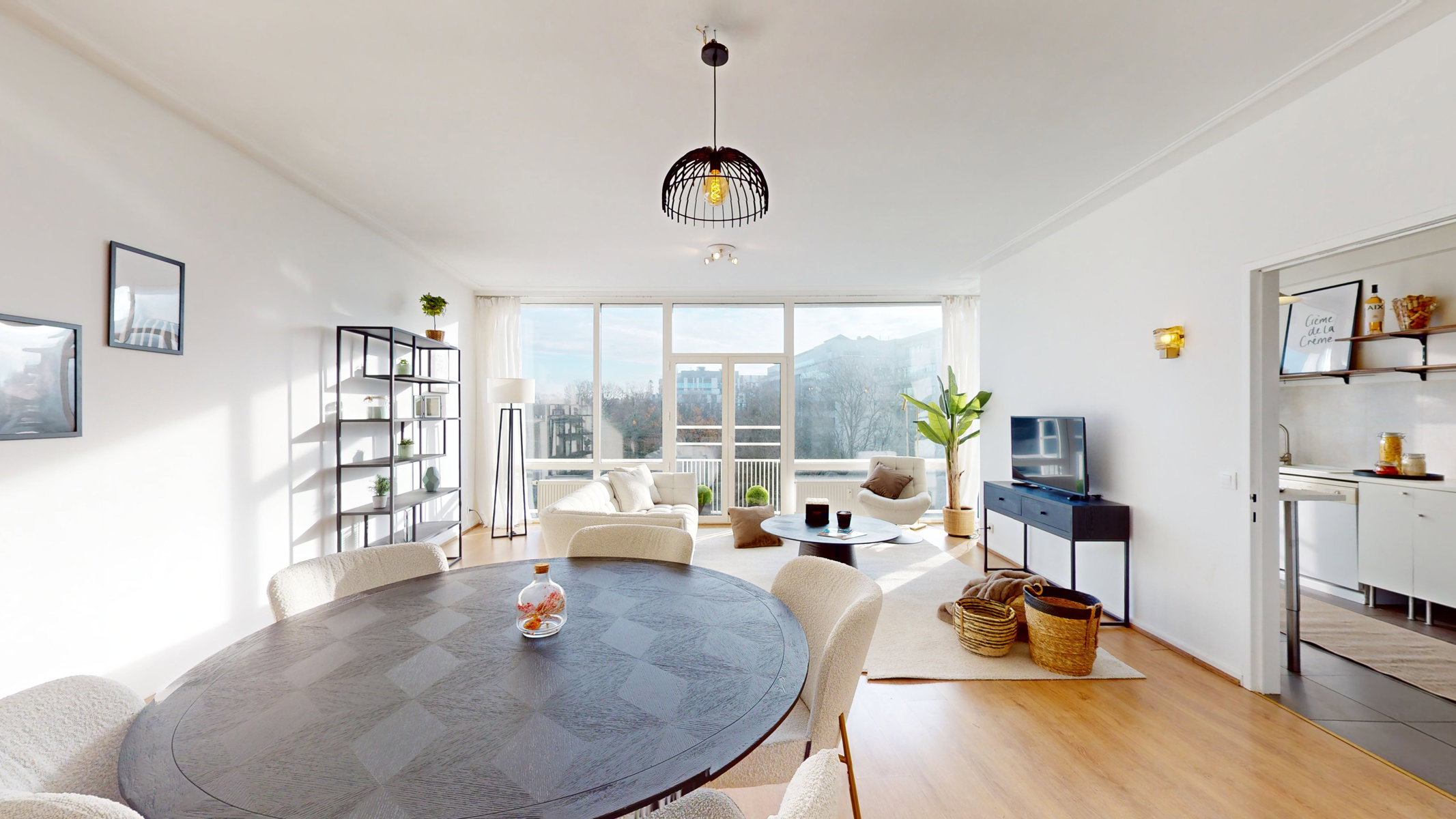 Niché sur la prestigieuse avenue Roosevelt, en face de l’Hippodrome et proche des commerces, disposant également d’une facilité d’accès que ce soit en voiture ou transports en commun (Tram 8, Bus 366, 41, Gare Boondael). Nous avons le privilège de vous proposer ce magnifique appartement traversant composé de 3 chambres et qui bénéficie d’une situation privilégiée : Entrée par la rue perpendiculaire particulièrement calme, vue dégagée verdoyant, pas de vis-à-vis. L’appartement offre un hall d’entrée, un séjour baigné de lumière, une cuisine séparée, un hall de nuit qui distribue les 3 chambres (deux possèdent un accès sur une terrasse) , une salle de bain avec espace buanderie et un wc séparé . Une cave en sous-sol. Il y a une conciergerie et un local vélo . Les charges s’élèvent en moyenne à +- 370€/mois. Compteur individuel électrique. L’appartement se trouve au 5ème et dernier étage avec ascenseur. Le PEB est C (ce qui est très apprécié pour un dernier étage). Possibilité d’acquérir un garage au prix de 30.000€.