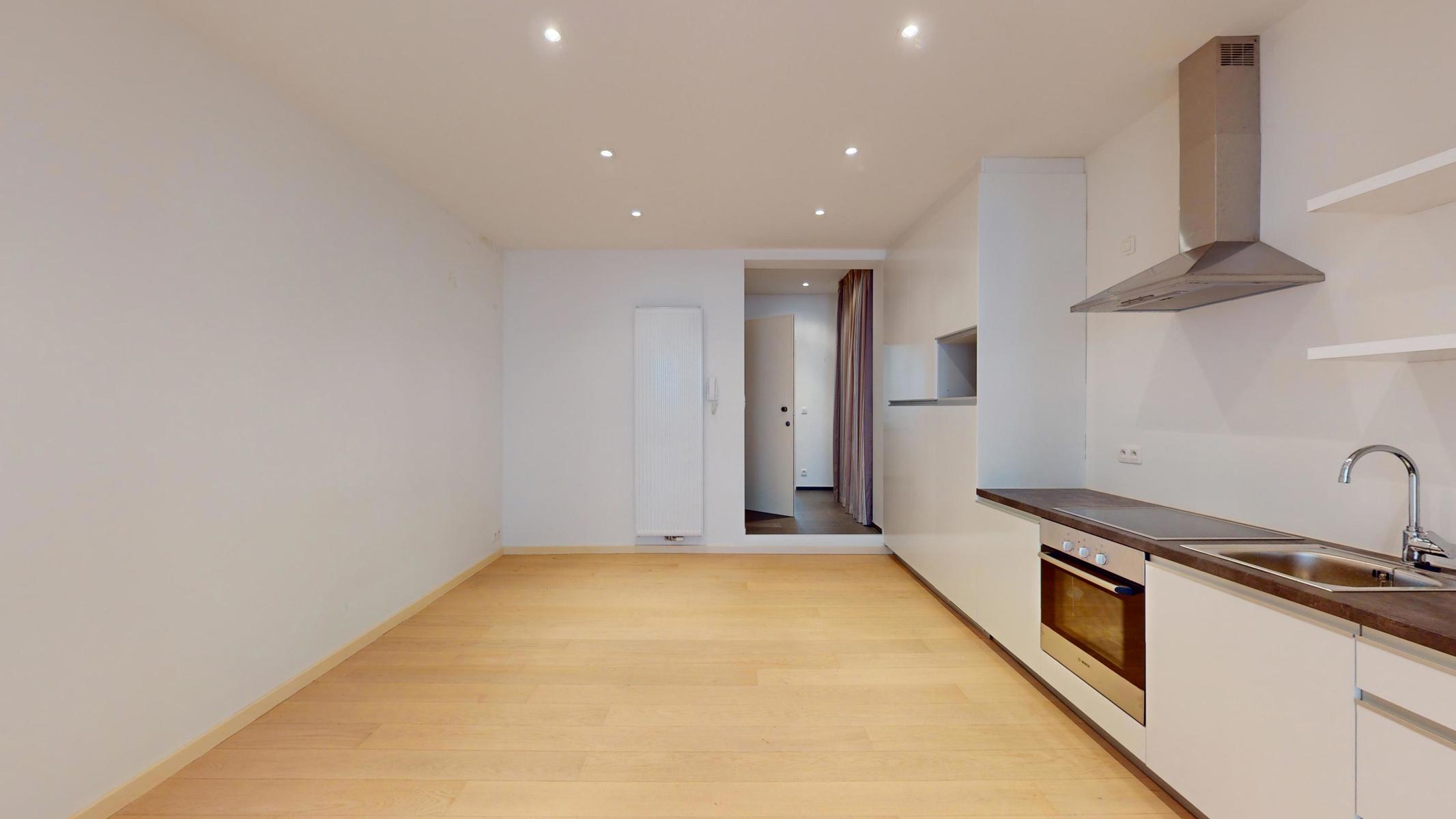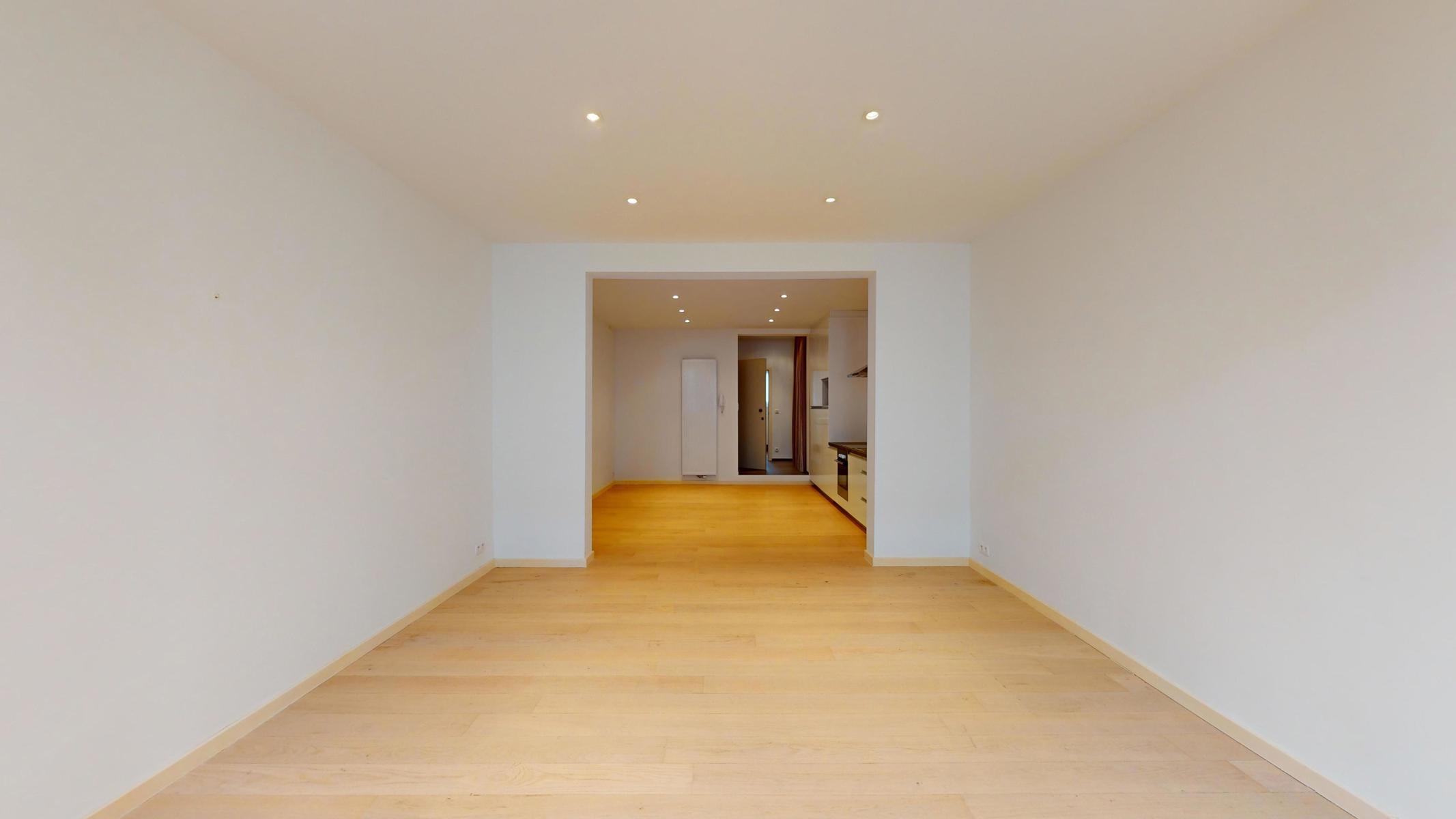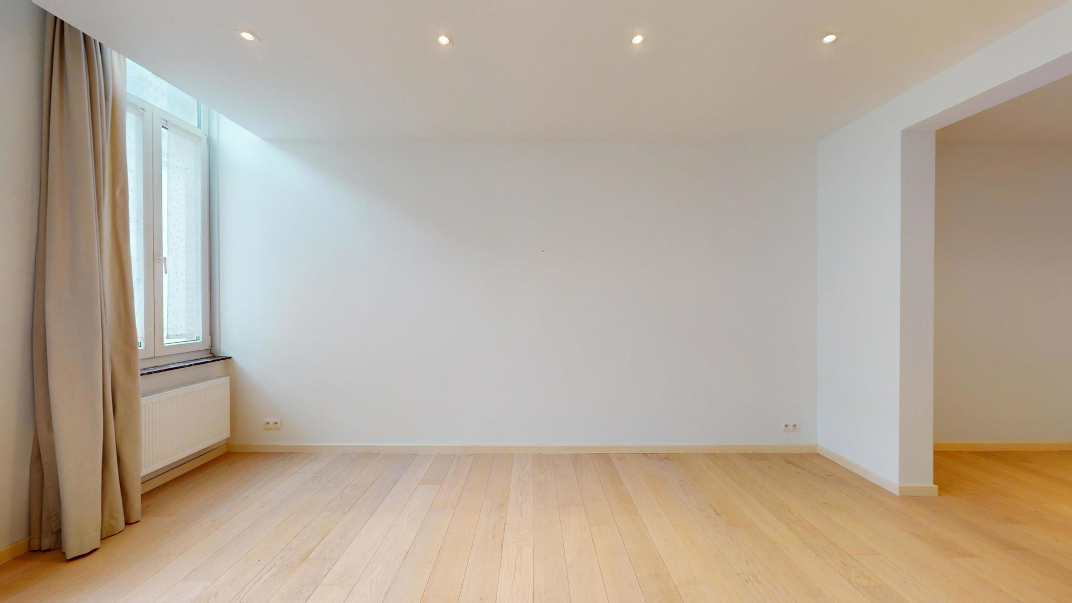 In the heart of the lively center of Uccle, in the sought-after Parvis St-Pierre district, close to shops, transport, schools, supermarkets, Sunday market Rue Xavier De Bue, By the Way Real Estate offers you to discover on the 1st floor of a pretty building from the beginning of the 20th century, this very beautiful and spacious studio of 60 m² gross (52 net) completely renovated in 2014 and in almost new condition because used by a french lady as a ‘pied-à-terre’. Entrance on the rear façade Rue des Fidèles, 10b. Beautiful & large entrance hall, bright 40 sqm living room with dining room and a fully equipped open kitchen with Bosch and living room/bedroom area on the front facade (possibility of installing a partition to isolate the bedroom), floating parquet flooring and beautiful finishes. At the rear, large bathroom with toilet.