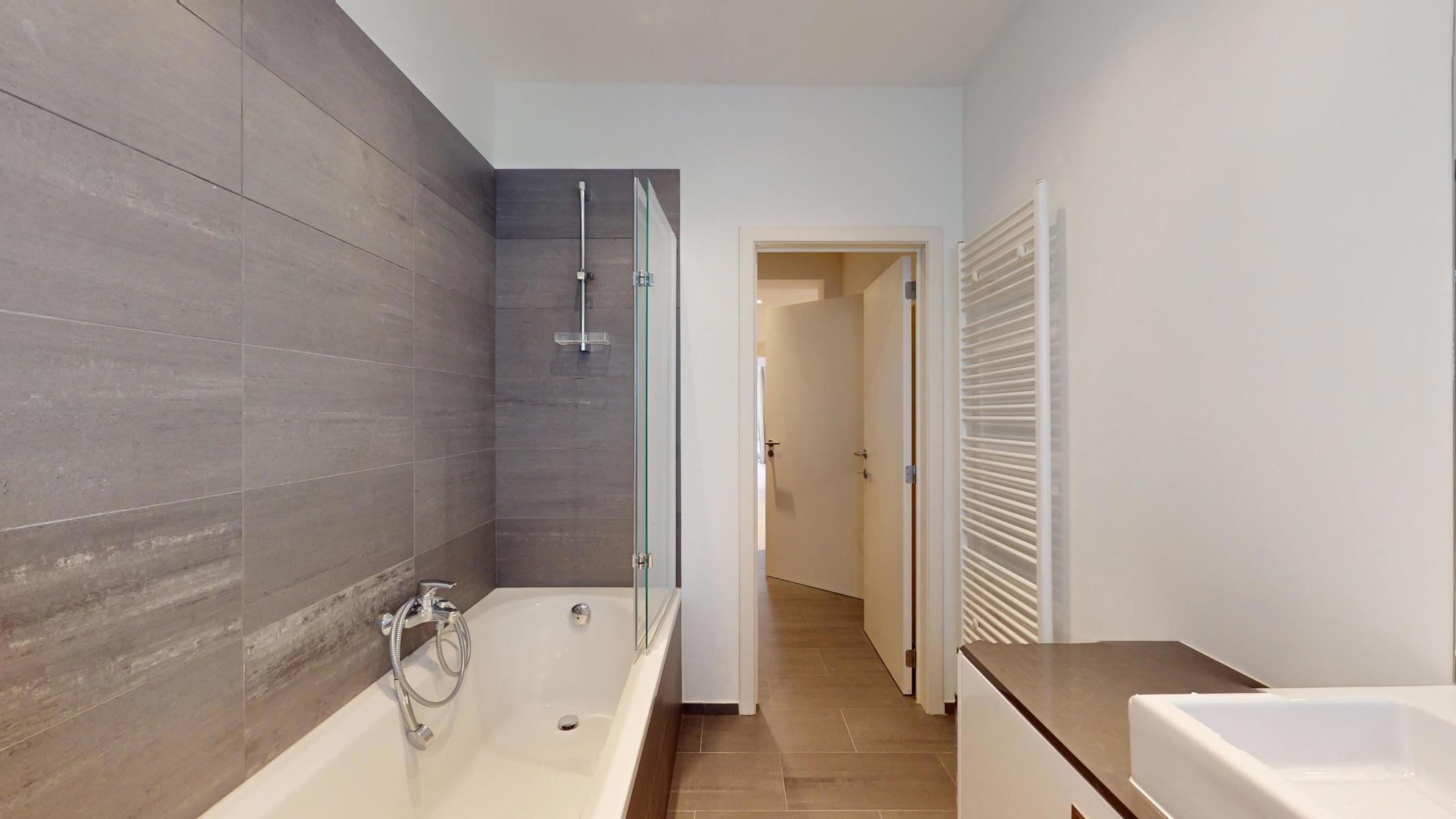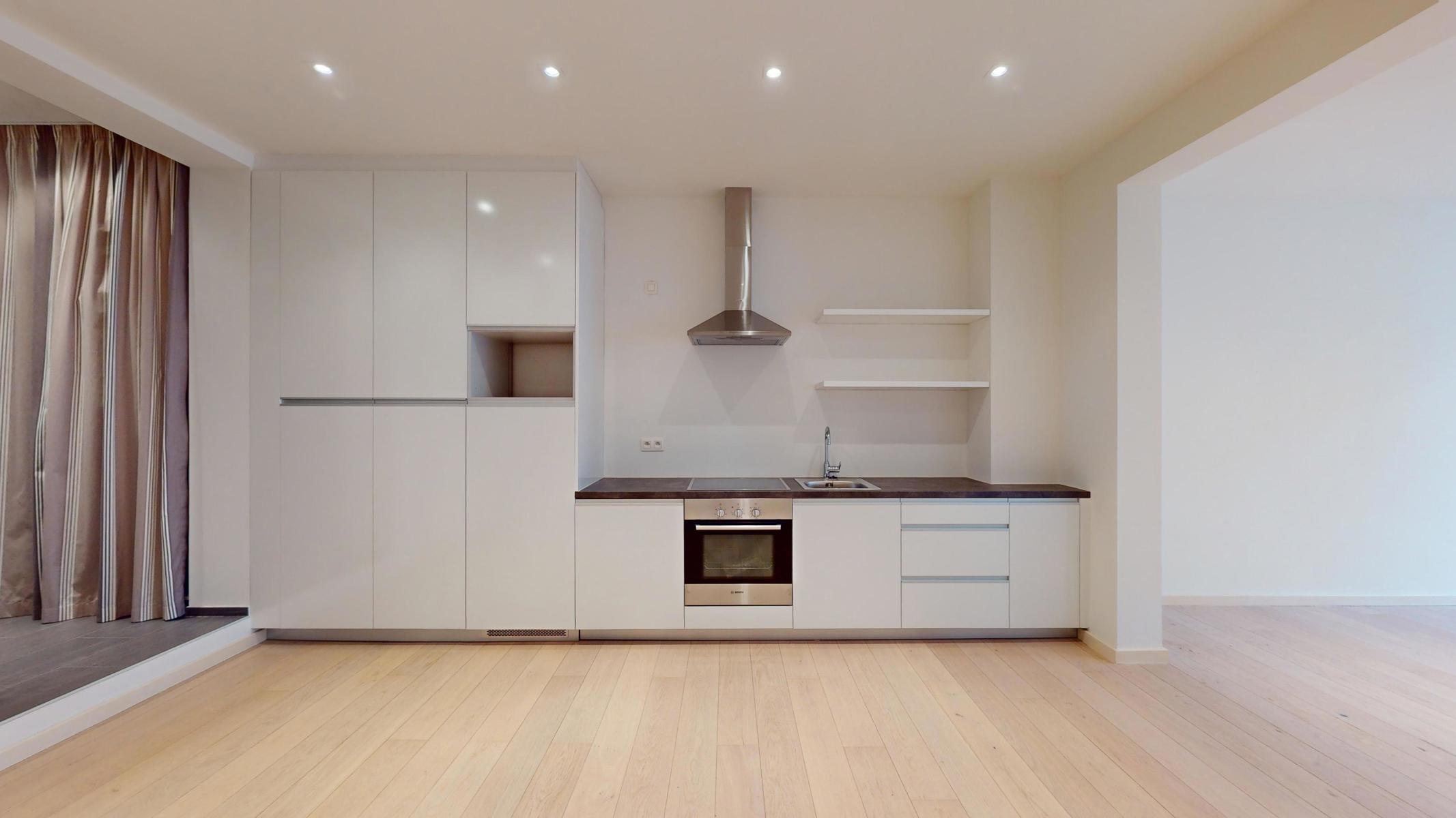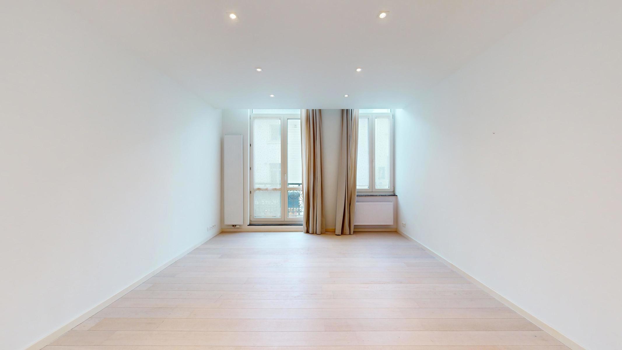 In the heart of the lively center of Uccle, in the sought-after Parvis St-Pierre district, close to shops, transport, schools, supermarkets, Sunday market Rue Xavier De Bue, By the Way Real Estate offers you to discover on the 1st floor of a pretty building from the beginning of the 20th century, this very beautiful and spacious studio of 60 m² gross (52 net) completely renovated in 2014 and in almost new condition because used by a french lady as a ‘pied-à-terre’. Entrance on the rear façade Rue des Fidèles, 10b. Beautiful & large entrance hall, bright 40 sqm living room with dining room and a fully equipped open kitchen with Bosch and living room/bedroom area on the front facade (possibility of installing a partition to isolate the bedroom), floating parquet flooring and beautiful finishes. At the rear, large bathroom with toilet.