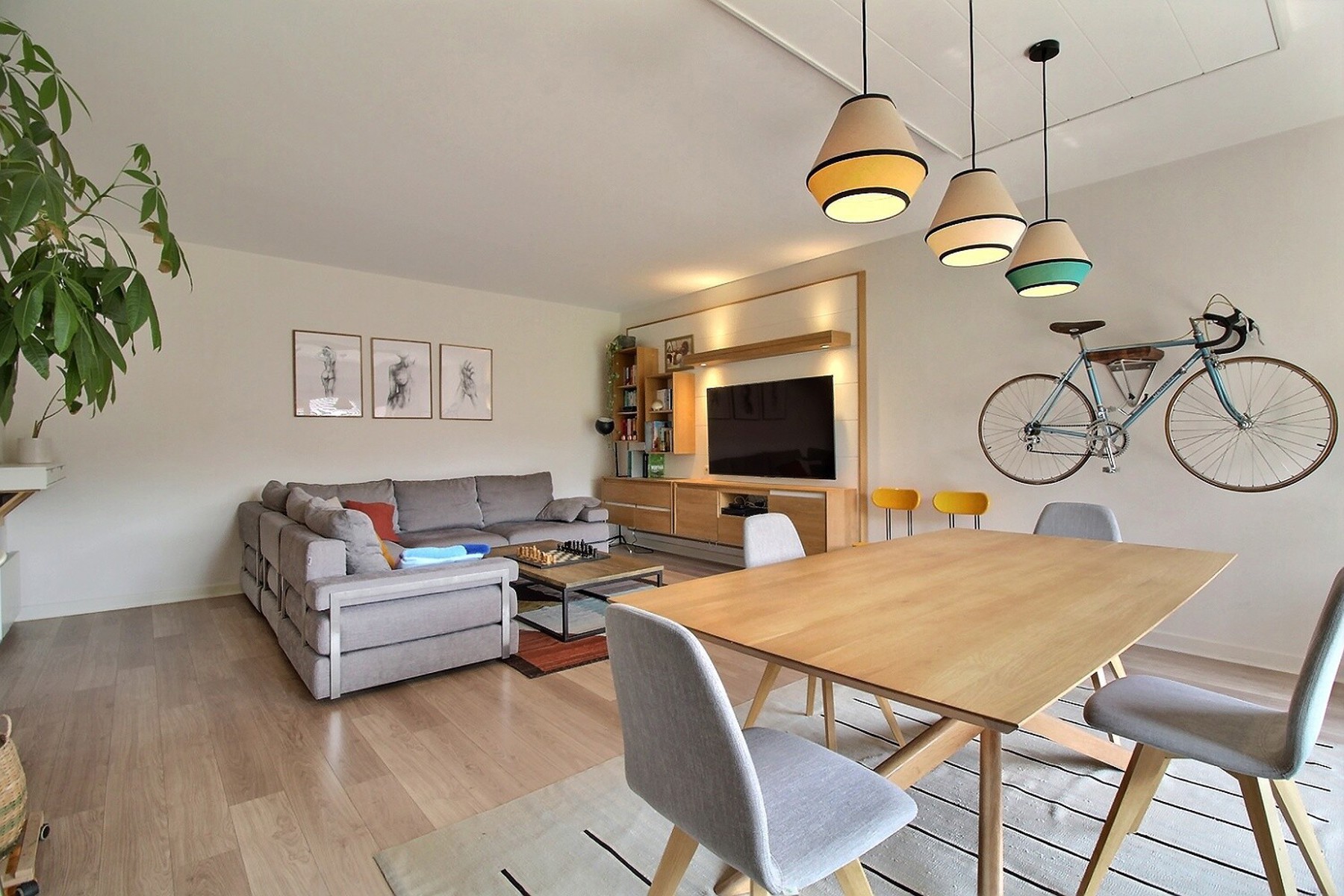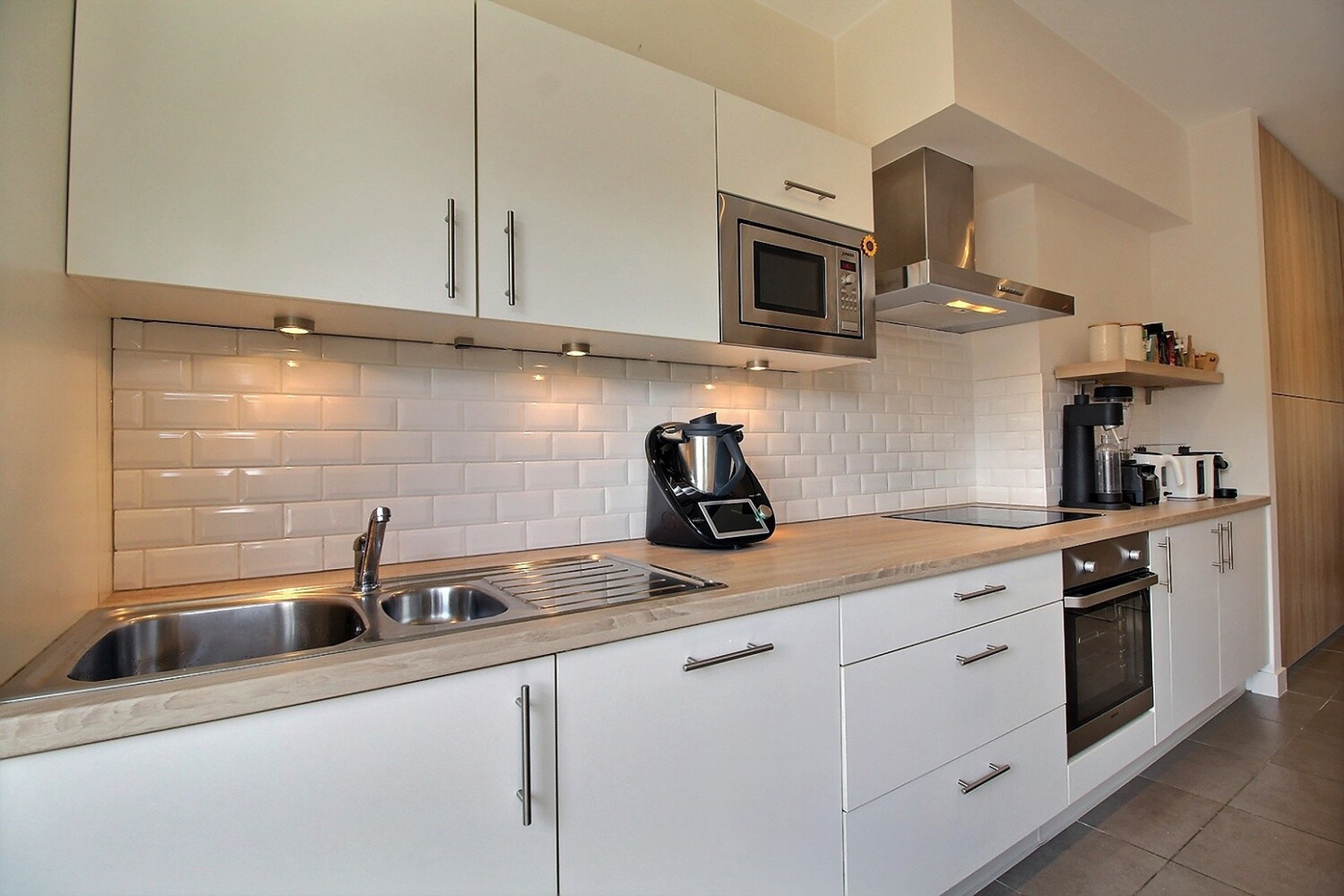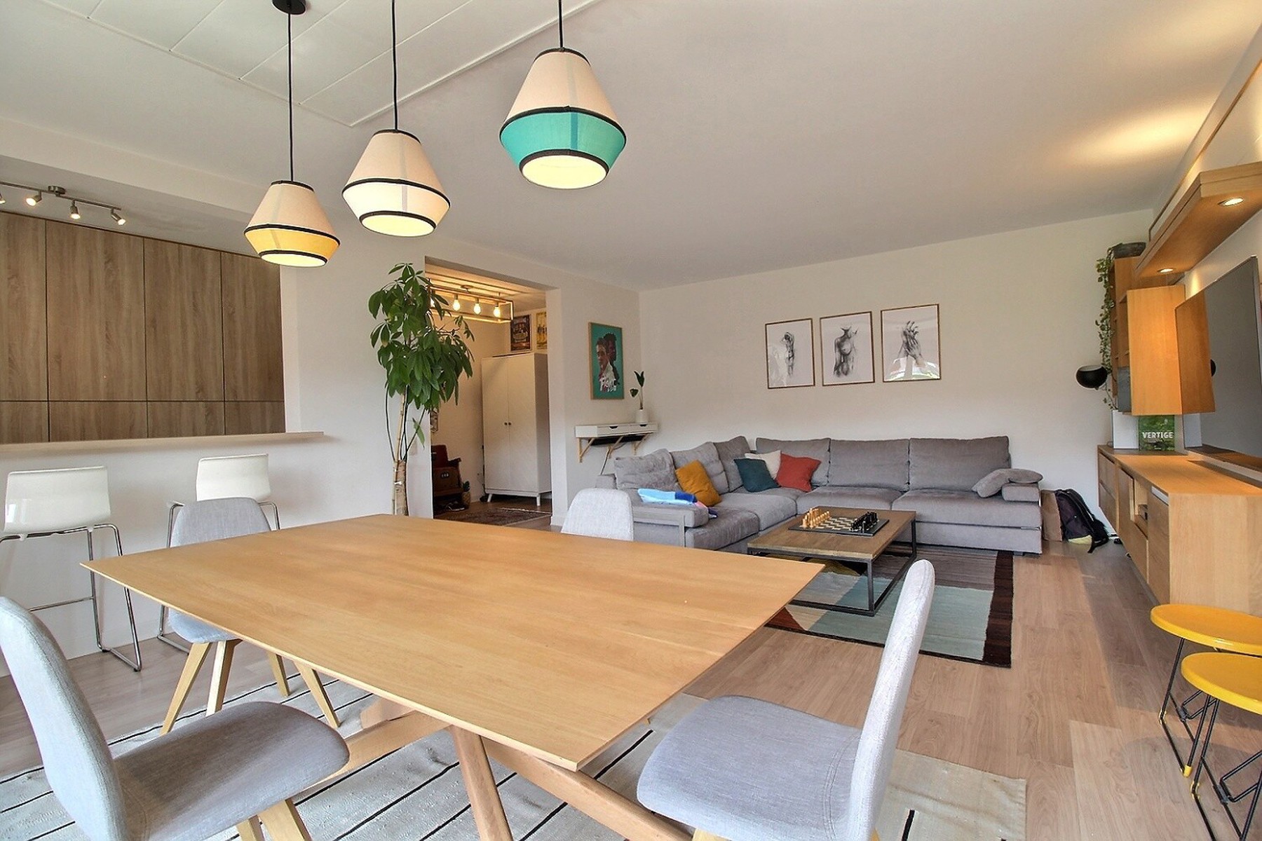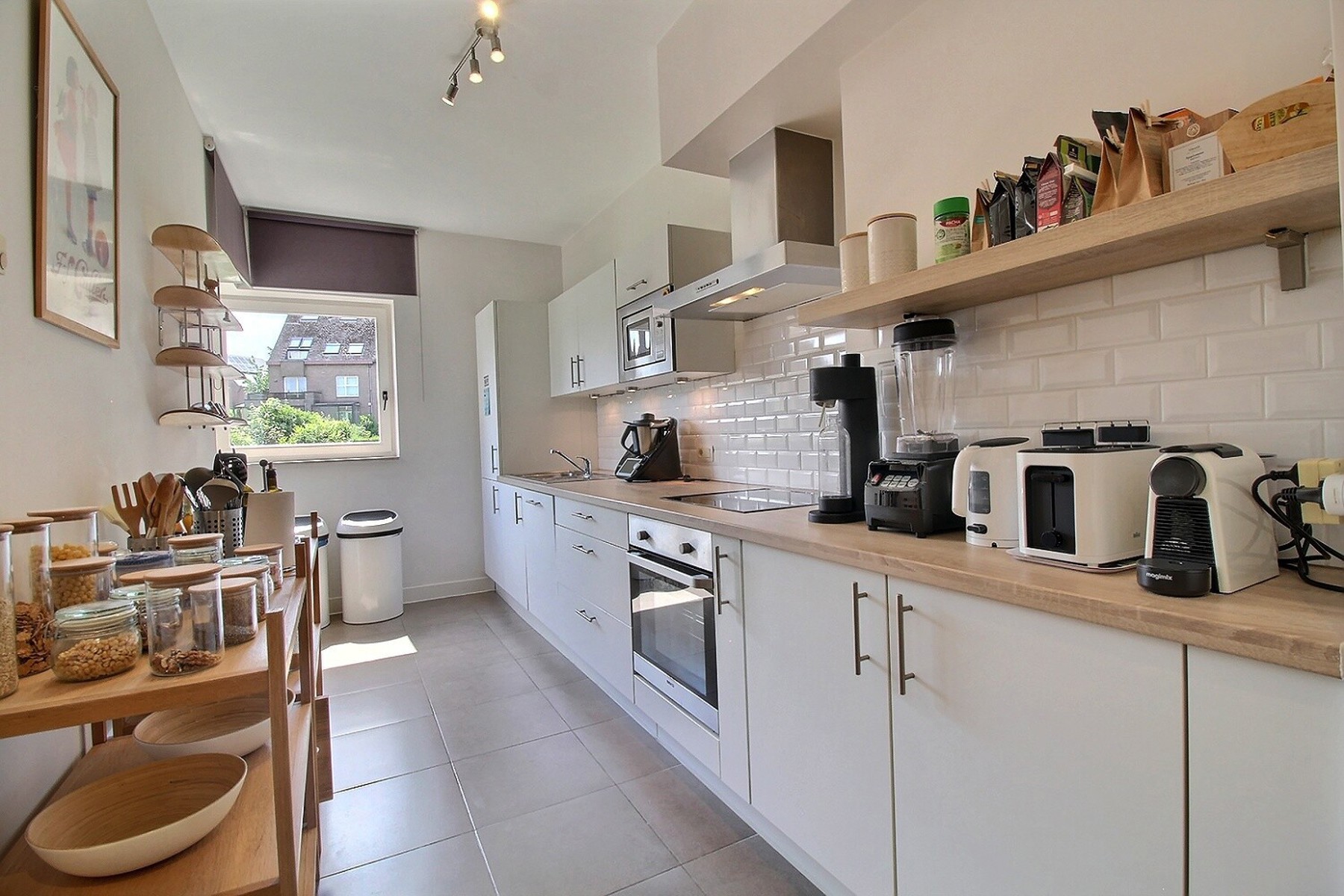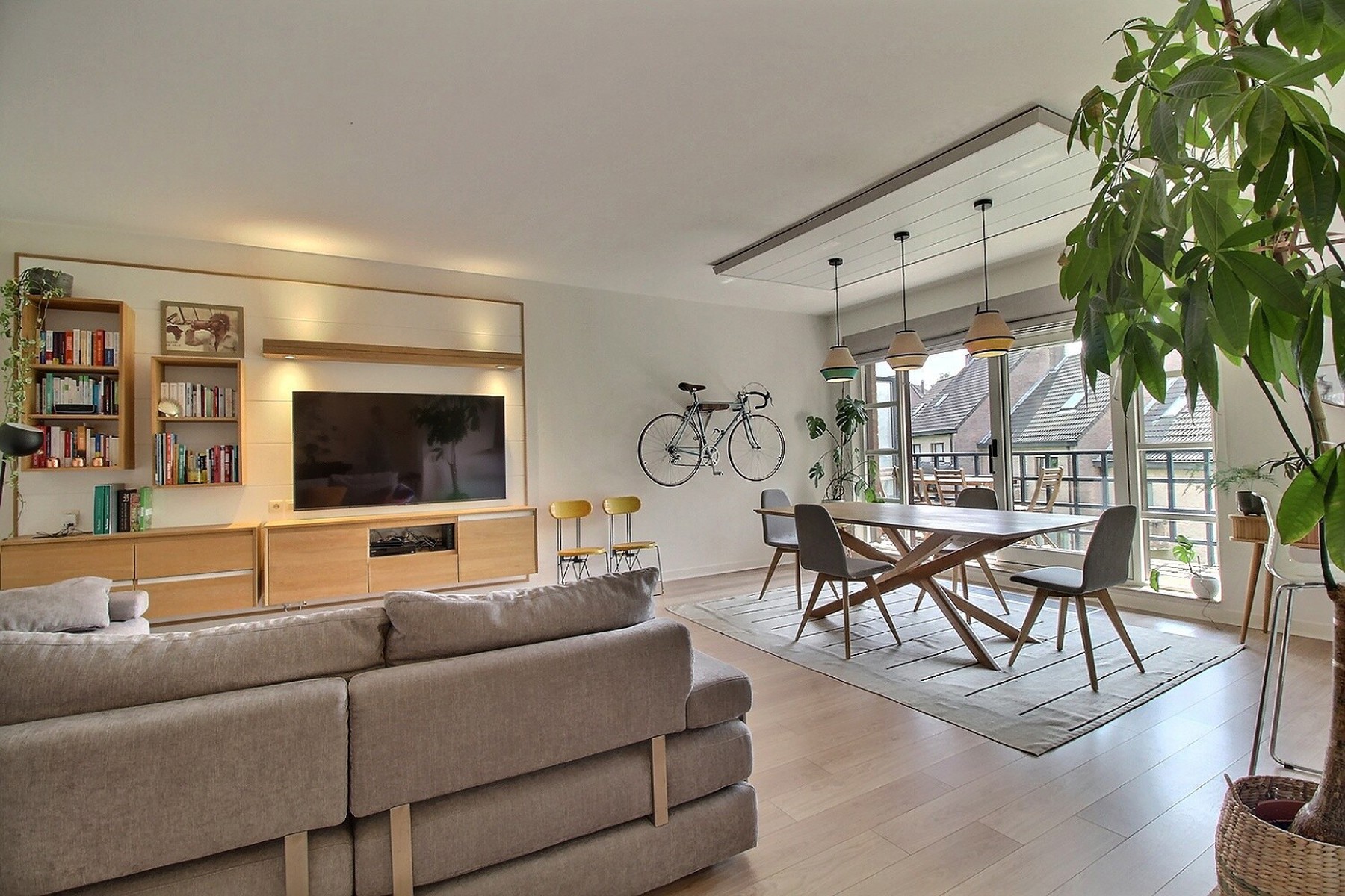 By The Way vous propose ce splendide appartement d’environ 115m2 bruts selon PEB dans le quartier du SOLBOSCH au 3e étage avec ascenseur. Le bien se compose comme suit: Hall d’entrée de +/- 7 m2, grand séjour de +/- 34 m2, cuisine full équipée de +/16m2; hall de nuit +/- 5m2, chambre n°1 de +/- 16 m2 avec sa salle de bains privative (douche dans le bain, WC, double évier), chambre n°2 de +/- 10m2, salle de douche, WC invités. DIVERS: Provision de charges 150 euros/mois comprenant l’entretien des communs, électricité des communs, nettoyage des communs, box garage avec grands espaces de rangements en supplément à 150 euros/mois, PEB: E