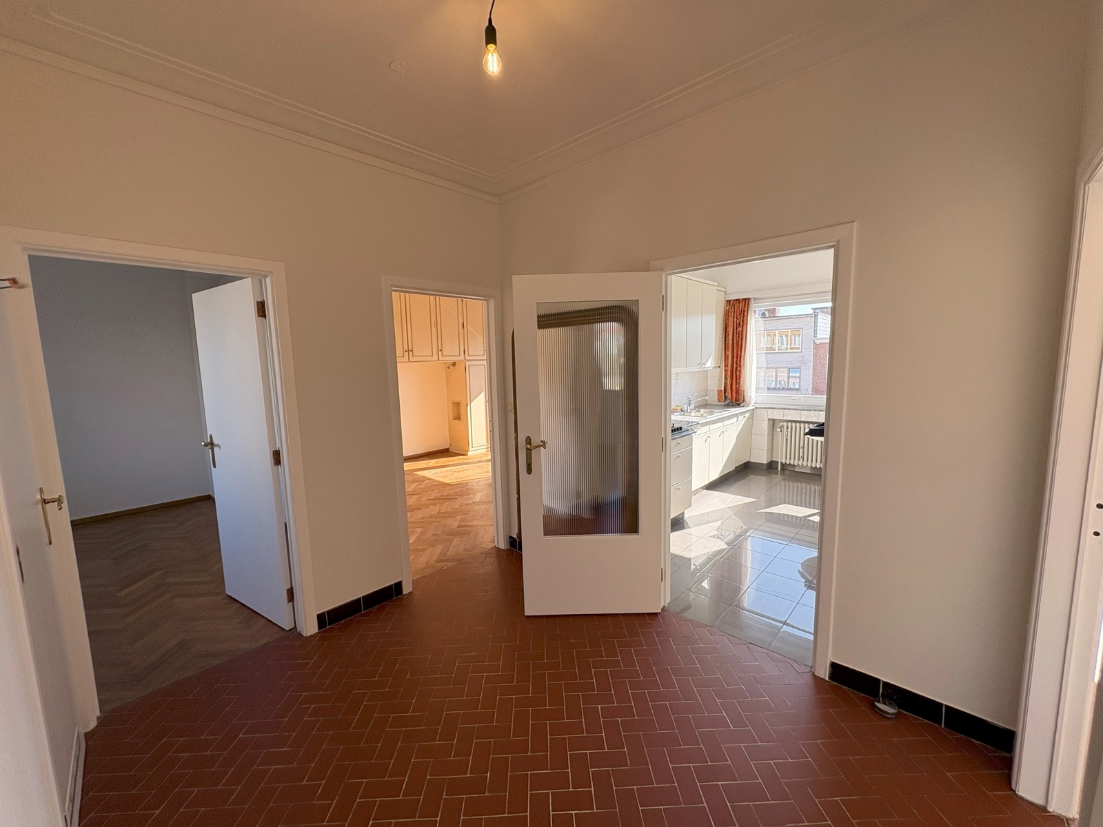 Idéalement situé à deux pas de l’Altitude Cent, ByTheWay vous propose ce lumineux appartement de caractère de +/- 102 m² (brut selon PEB). Proche des transports en communs et des commerces, ce bien se situe au 4ème étage d’un petit immeuble avec ascenseur et vient d’être fraichement repeint. Il possède un espace de séjour de +/- 29 m² orienté plein Sud avec terrasse, 2 chambres de 19 m² et 11 m², un beau hall d’entrée avec WC séparé, une cuisine équipée et une salle de douche avec machine à laver. Au RDC se trouve également une cave privative et la possibilité d’y entreposer des vélos. Parquet au sol, videophone, PEB E, chaudière commune au gaz, compteur électrique individuel, provisions de charges de 175€ comprenant le chauffage, l’eau et les charges communes de l’immeuble. Disponible immédiatement !