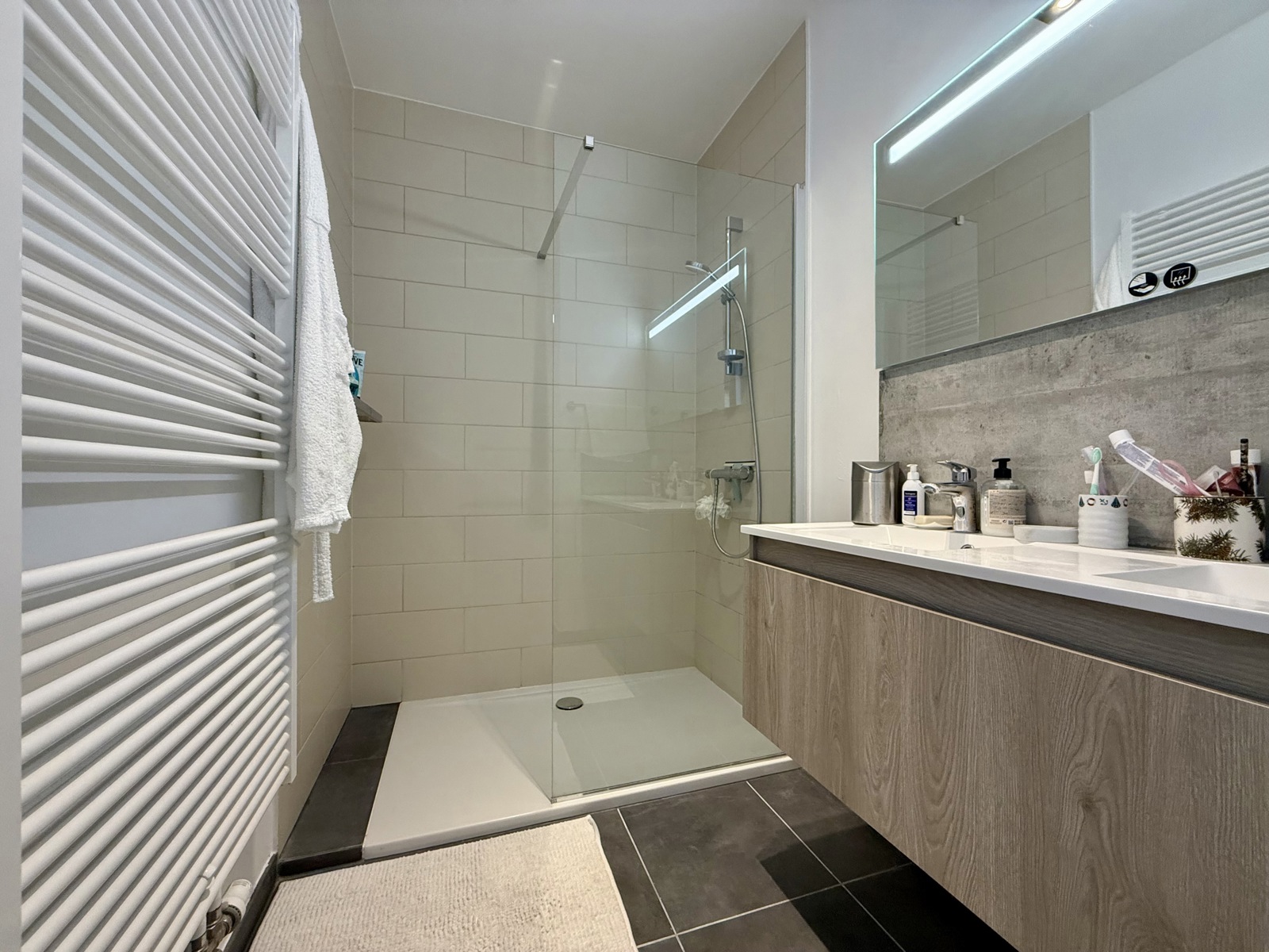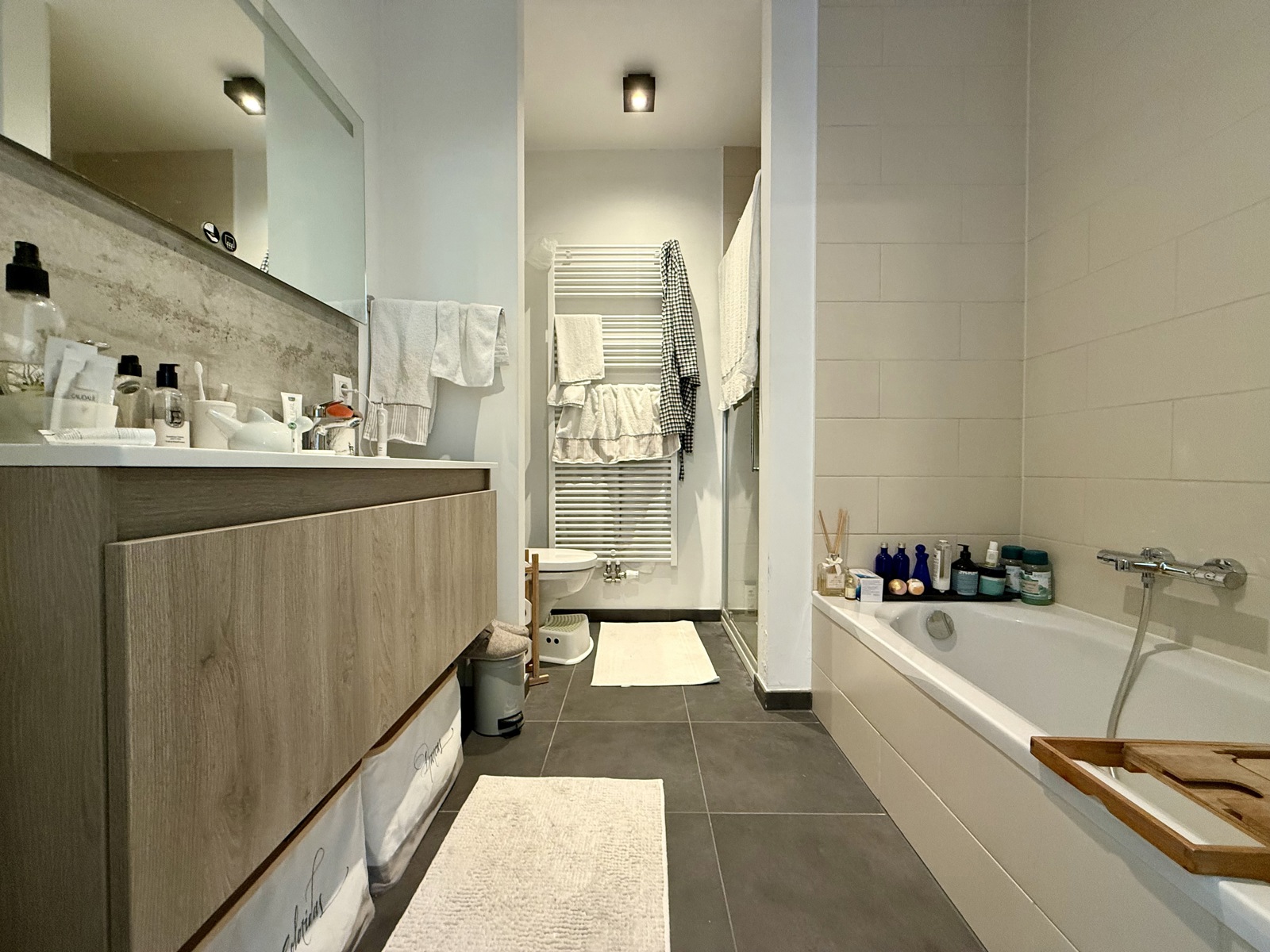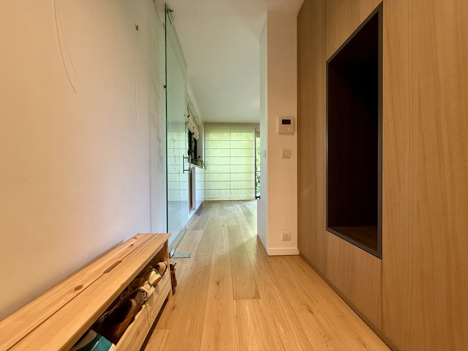 Located on the border of Ixelles, Watermael-Boitsfort and Uccle, a stone’s throw from the Bois de la Cambre, the Hippodrome and the famous Avenue Franklin Roosevelt, By the Way offers you this superb apartment of +/- 117m2 (according to EPC), located on the 1st floor out of 4 of a recent building (2019) with elevator. Comprising : entrance hall with WC and checkroom, bright living room with super-equipped open kitchen and storeroom, spacious terrace of +/- 16m2, 3 bedrooms (+/- 14, 12 and 9m2) with built-in closets and one with full bathroom (bath, shower and WC), shower room and laundry area. EPC A. Charges : provision of €175/month (building utilities and private consumption of heating, hot water and cold water). Others : individual electricity meter, double-flow ventilation, reinforced door and triple-glazed aluminum windows. Available immediately.
