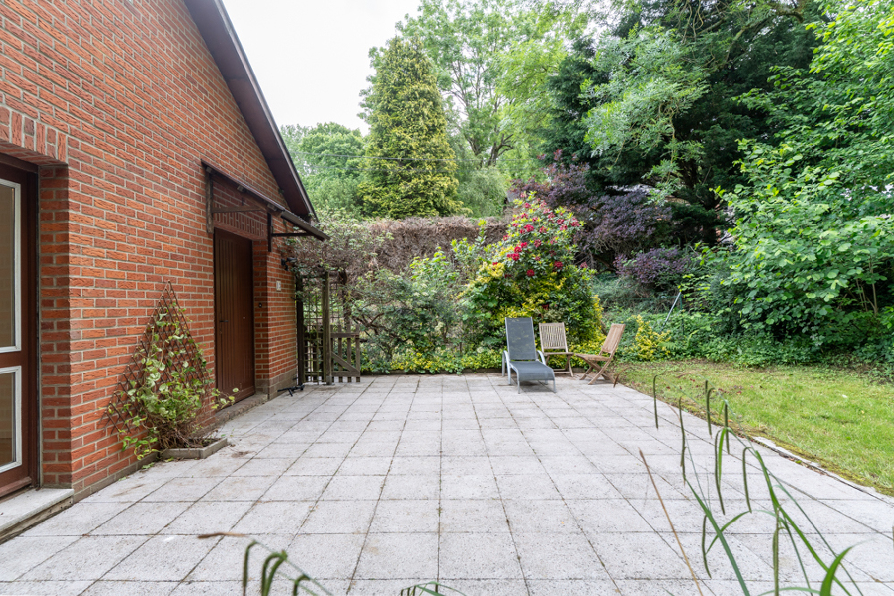 Située dans un quartier verdoyant et calme, proche du centre de Rixensart, By the Way vous présente cette rare villa de plain-pied à rafraichir, 4 façades avec 2 chambres, un bureau ou espace de jeu supplémentaire, sise sur un joli terrain arboré (cerisiers, groseillers blancs et rouges, noisetiers, muriers) de +/- 11,11 ares. Le jardin se situe à l’abri des regards et bénéficie d’un coin jardin potager. Sa terrasse de +/- 30 m2 est orientée Sud et agrémentée d’un coin barbecue. Elle dispose aussi d’un garage avec porte segmentée automatique et grenier de rangement, d’une chaufferie séparée et enfin d’un bel abri jardin datant de 2019. Le sous bois d’en face préserve l’intimité et le calme du jardin. Le toit plat a été refait récemment ainsi que le pourtour des cheminées. Le restant du toit en ardoise a fait l’objet d’un traitement hydrofuge et a donc bien été entretenu. Le châssis du salon est neuf. La villa est proche de l’arrêt de bus vers Ixelles/Flagey (4 minutes à pieds), de la gare, du cinéma, du parc communal (Bois du Heron), du Carrefour Market et de tous les agréables petits commerces de Rixensart. PEB F et Electricité conforme. Infos et visites: Frédérique : 0497 469 556 – frederique@bytheway.be