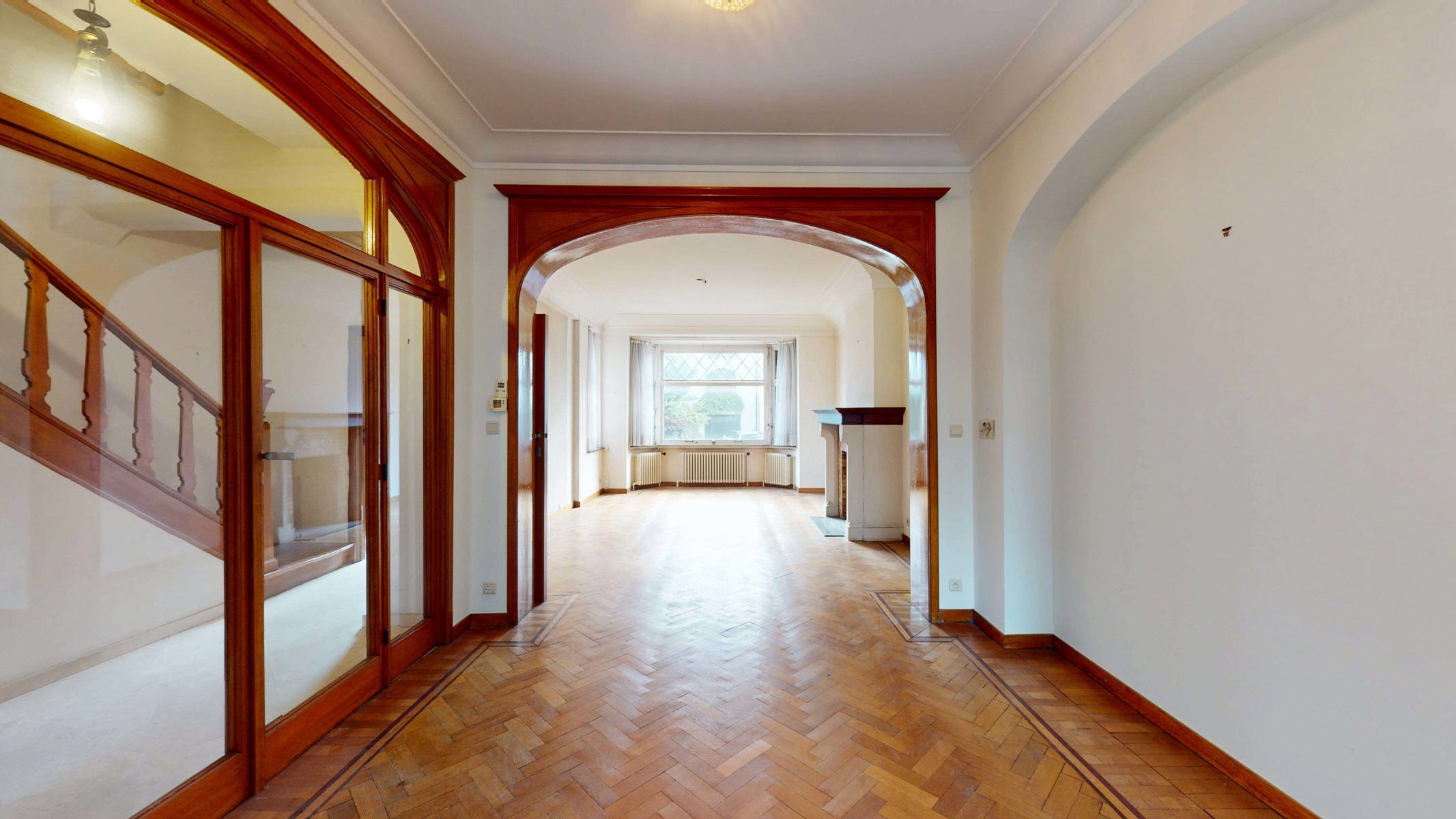 It is laid out as follows: On the ground floor, a large entrance hall in Burgundy stone, a pleasant living room of +/- 35m², a dining room of +/- 14m², opening onto 2 terraces and a garden decorated with climbing hydrangeas facing north-west, and a kitchen. On the first floor, a hallway, one large bedroom of approximately 31m², one bedroom of approximately 14m², one bedroom of approximately 10m², a bathroom of approximately 8.50m² and a separate toilet. On the second floor, there is a landing, a beautiful bedroom of +/- 17m², a bedroom of +/- 9.50m², a study of +/- 8m² and a loft that could be converted.