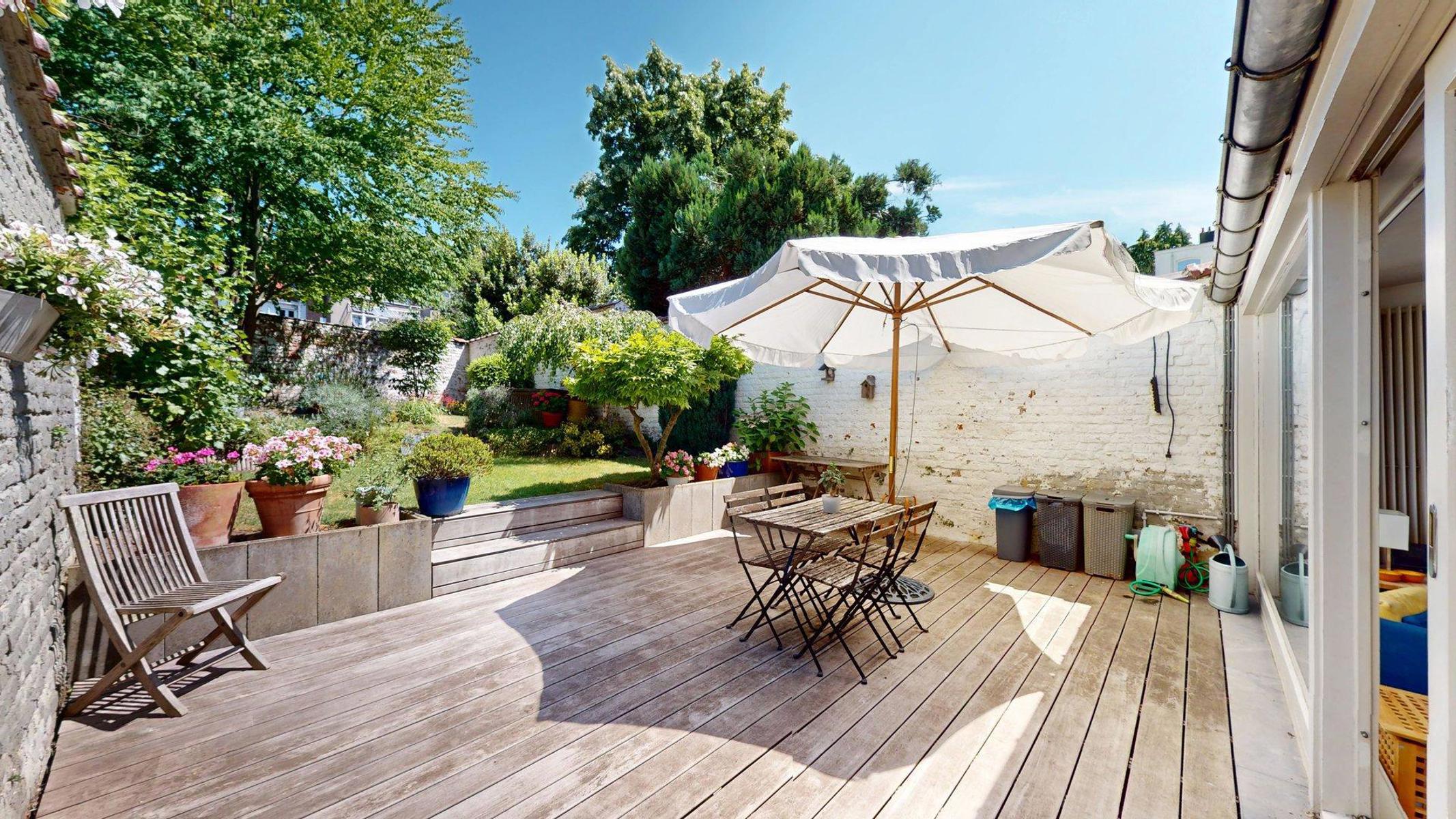 Located in Etterbeek, just 5 minutes from the European Quarter, between La Chasse and Parc du Cinquantenaire, By the Way presents this beautiful and bright souplex, renovated in 2015. In a townhouse comprising two residential units, this apartment is arranged as follows: on the garden level, a living room with an open fully equipped kitchen of ± 54m² giving access to a lovely east-facing garden with terrace of ± 80m², a study/bedroom of ± 18m², and a separate toilet. On the lower level, a spacious master suite of ± 52m² including the main bedroom, a full bathroom (bathtub, walk-in shower and toilet), a dressing room/office area, and a laundry room. Technical details: EPC D-, compliant electrical installation, individual Junkers gas boiler, double glazing. No common charges. Further information and virtual tour via the following link: https://bytheway.immo/bien/platane/