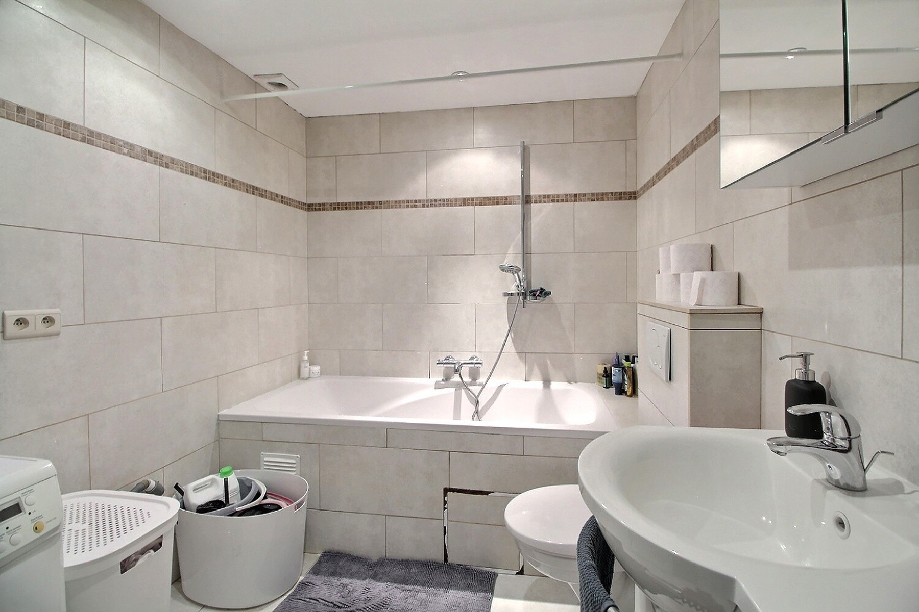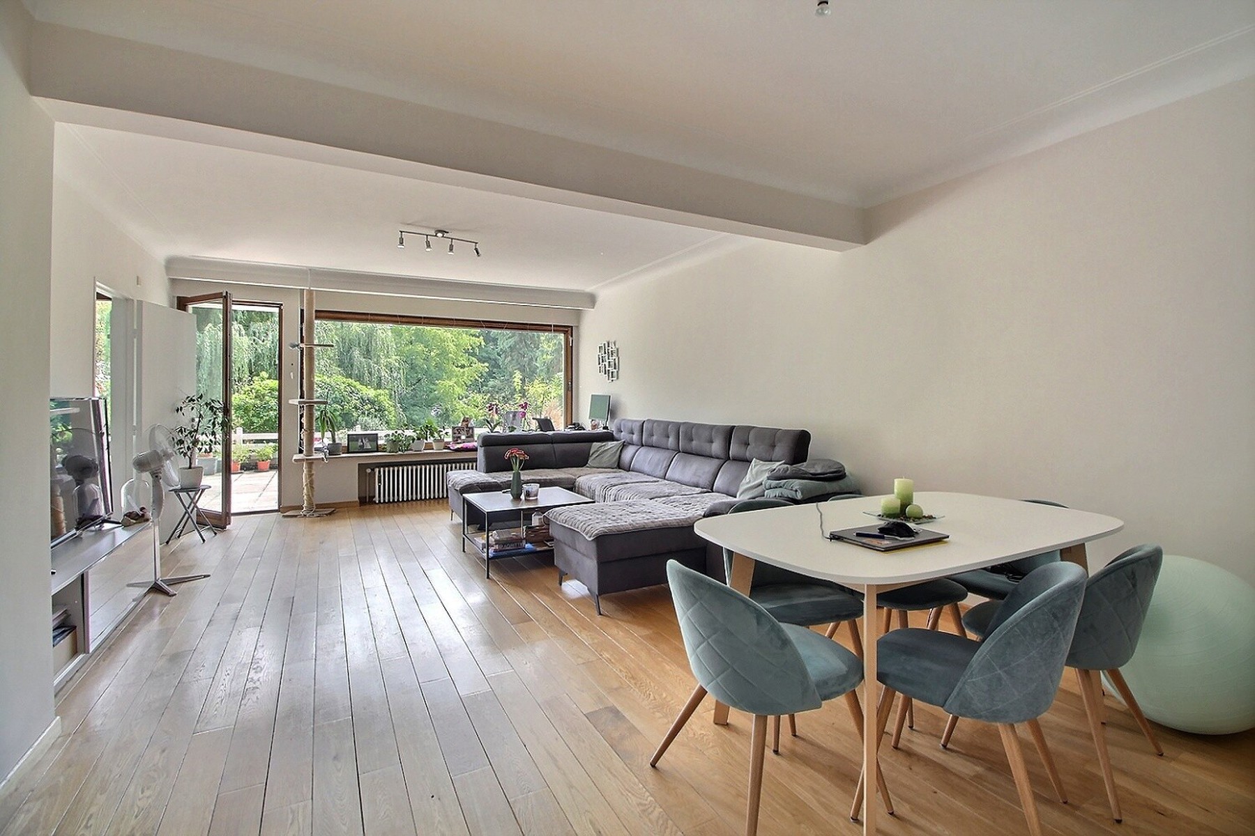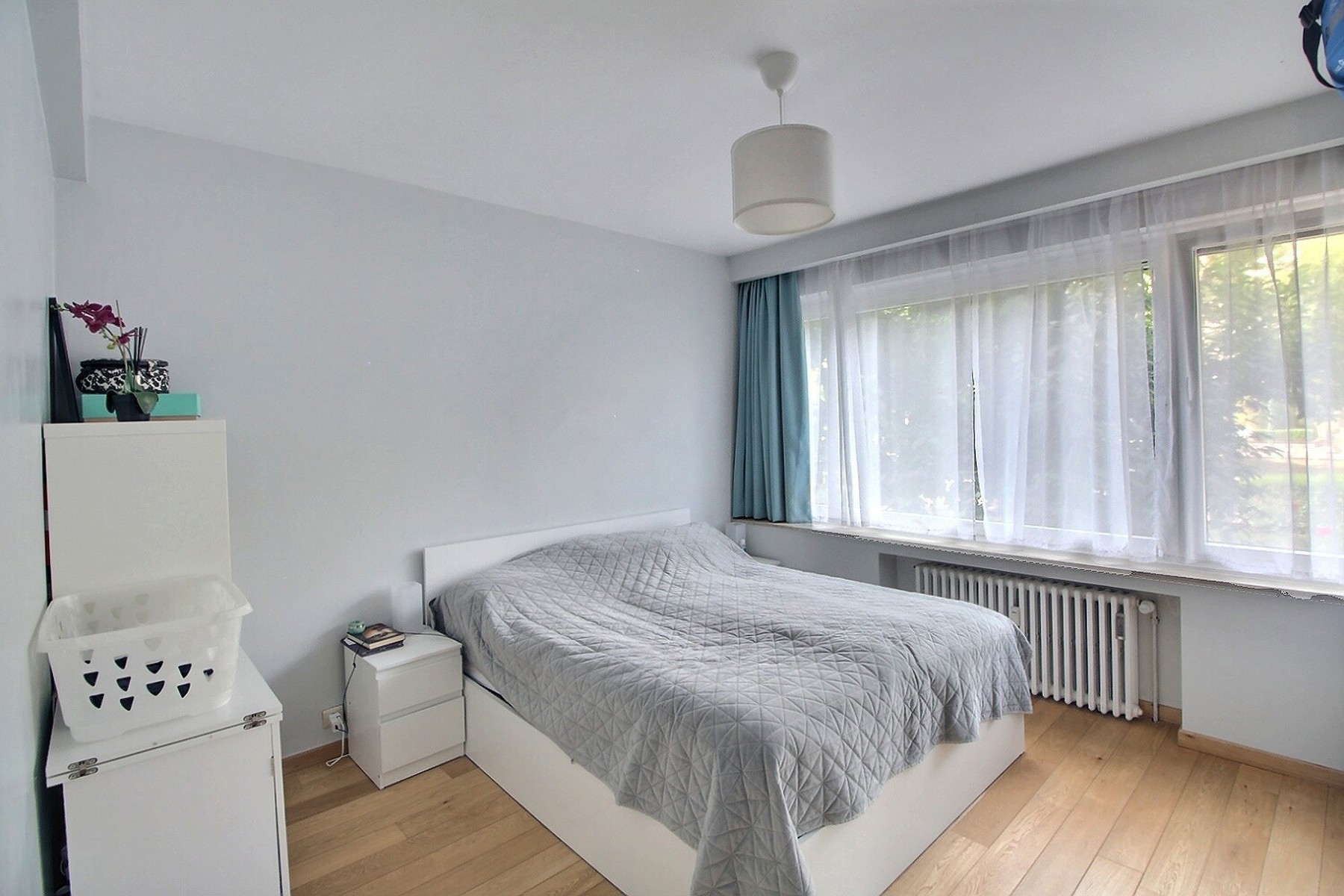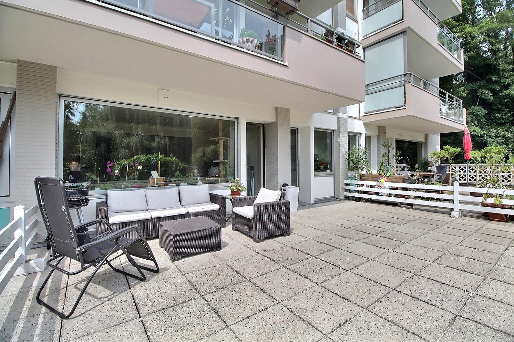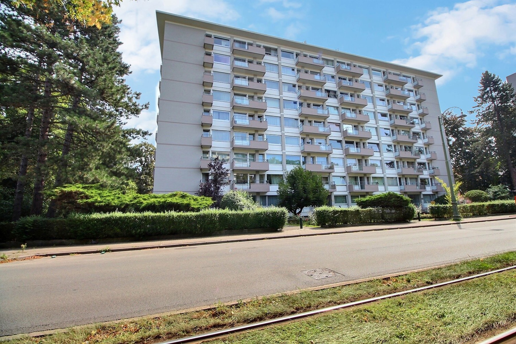 Just a stone’s throw from Val Duchesse, in a leafy environment, By the Way presents this lovely 80 m² apartment located on the ground floor of a renovated 8-storey building. Ideally located close to major roads, public transport, schools and shops. It is composed as follows: a 2 m² entrance hall, a 35.50 m² living/dining room with oak parquet flooring, a 12 m² kitchen, a 13.50 m² bedroom, a 5 m² bathroom with toilet, a 2 m² hallway with cupboards, a beautiful large 35 m² south-east facing terrace with a magnificent view of the greenery and a 4 m² cellar. Parquet flooring and tiled floors. Bicycle storage room. Electricity compliant. Gas heating. Double glazing. Security door. Videophone. Excellent condition. EPC: Label E, total E 17,450 kWh/year, specific E 195 kWh m²/year. Rent: €1,095/month + €200/month provision for charges (heating, hot/cold water, maintenance of common areas, exteriors, lift, property management). Available on 01/11/2025.