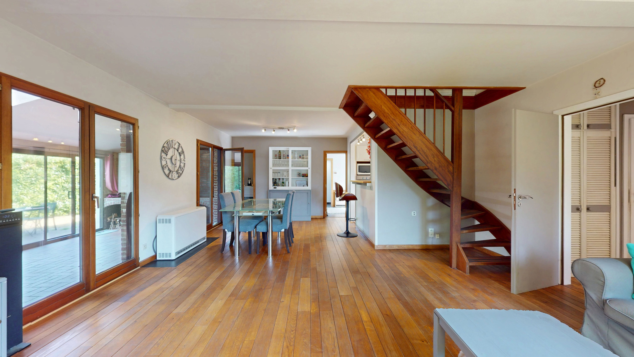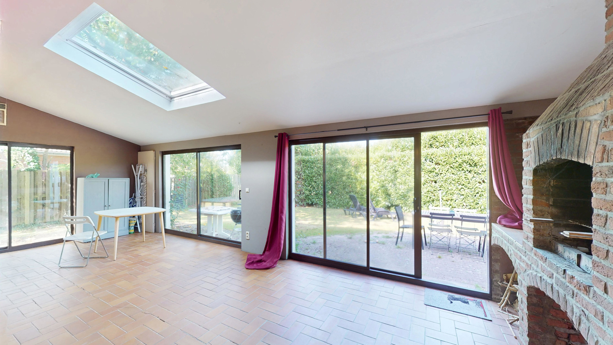 A veranda with a barbecue runs along the entire length of the living room and provides access to the garden.