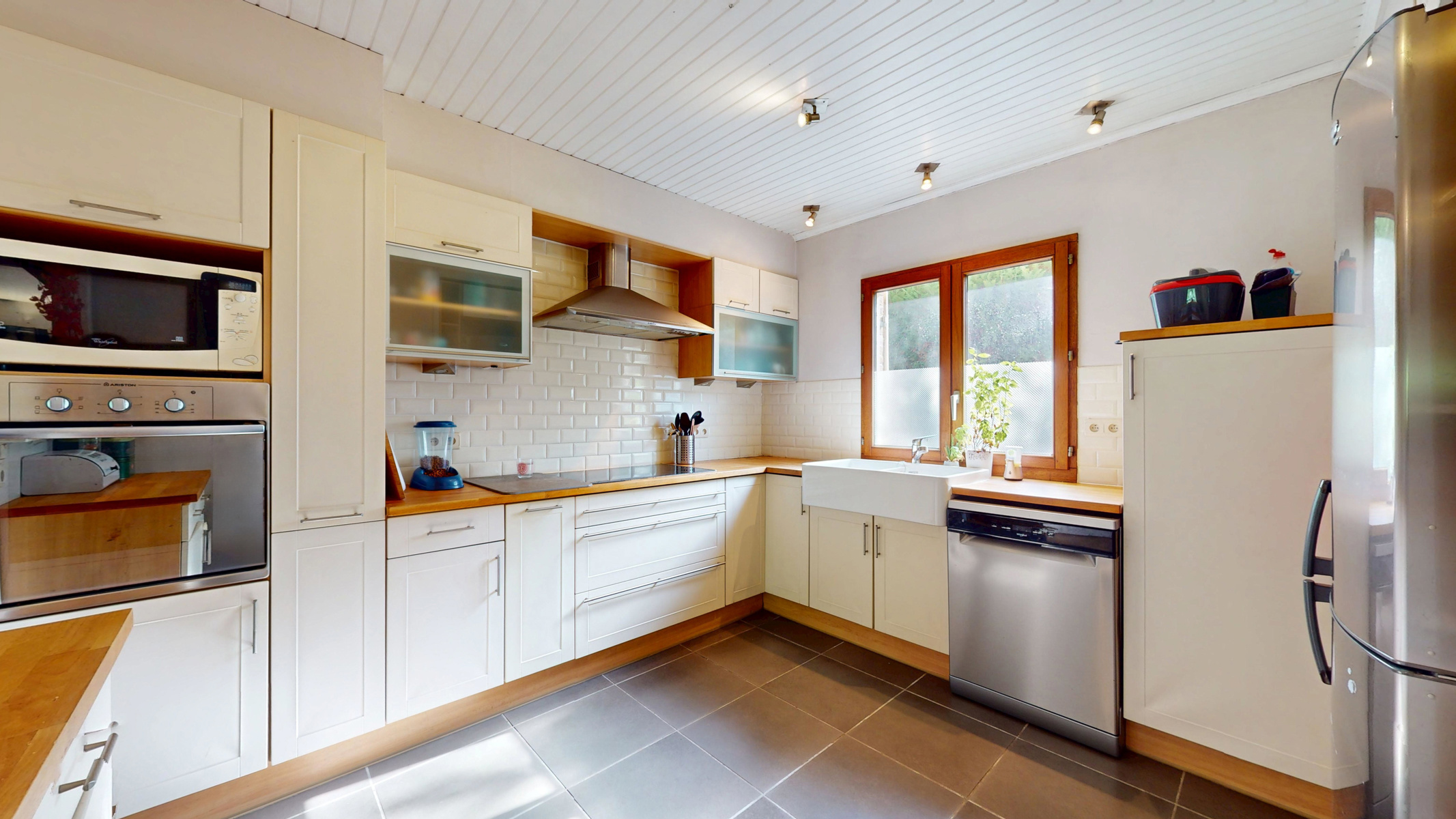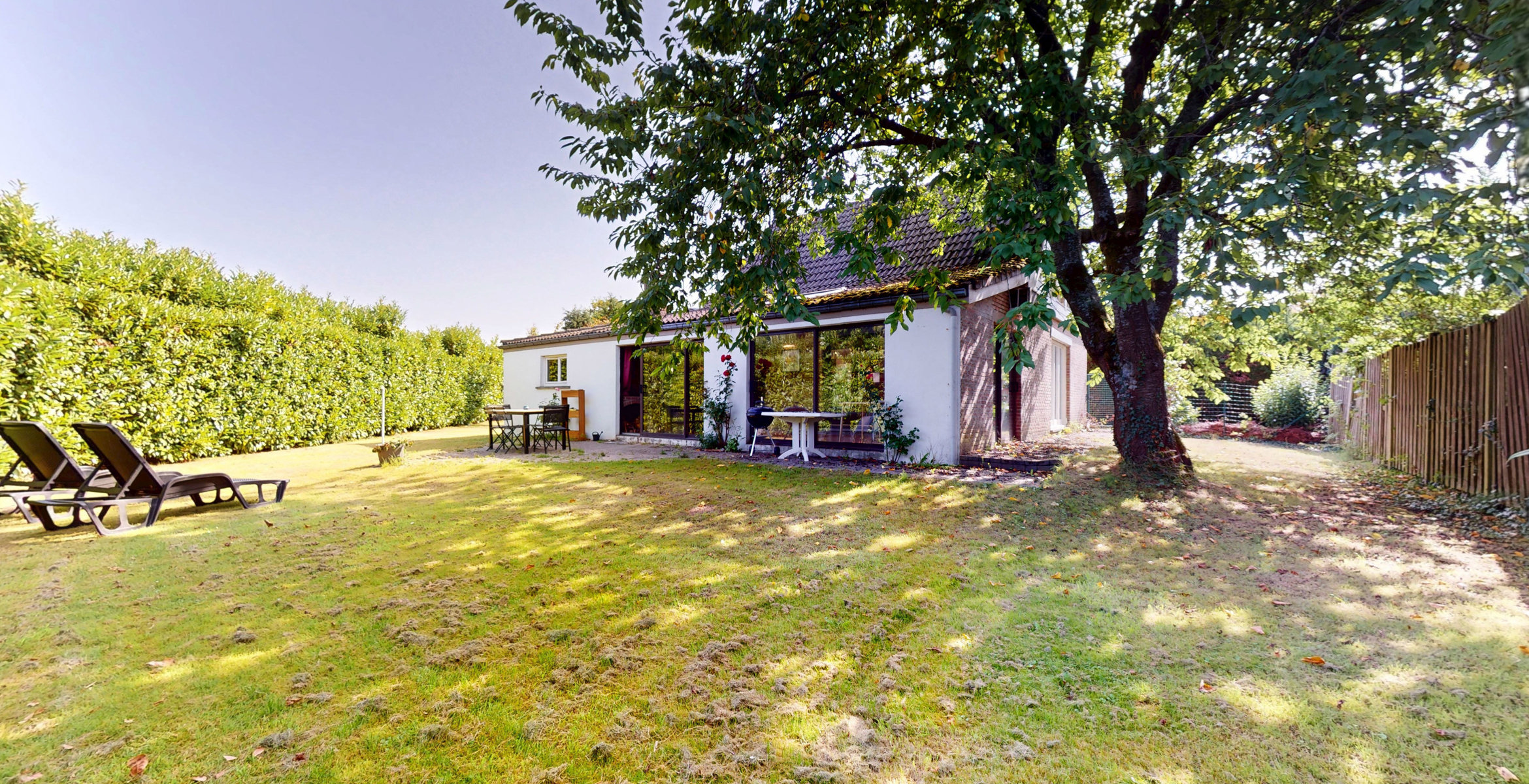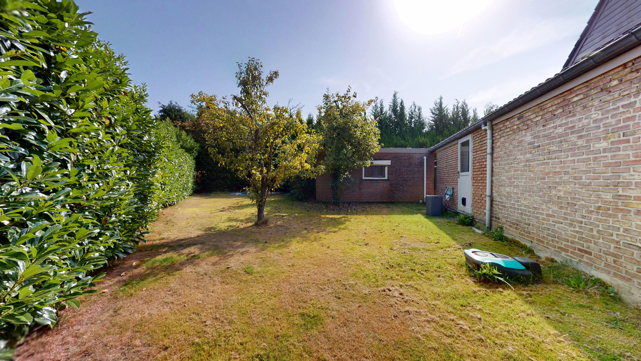 A garage with a cellar underneath is located at the front of the house. A garden surrounding the house and a north-west facing terrace complete the plot.