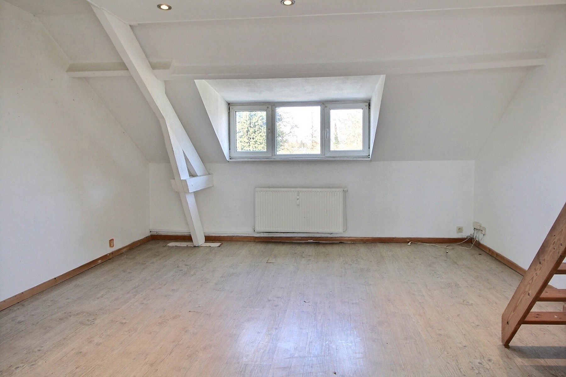 A staircase in the living room gives access to the attic bedroom and a small attic space enclosed by a door. A private cellar in the basement completes the property.