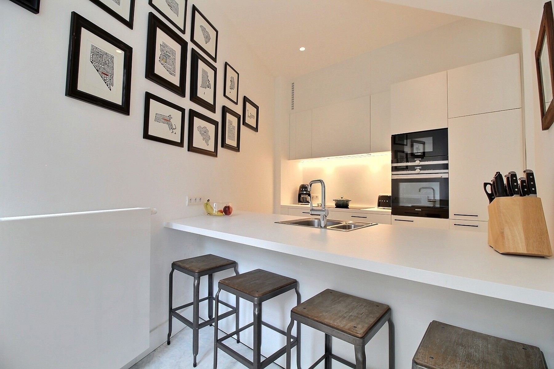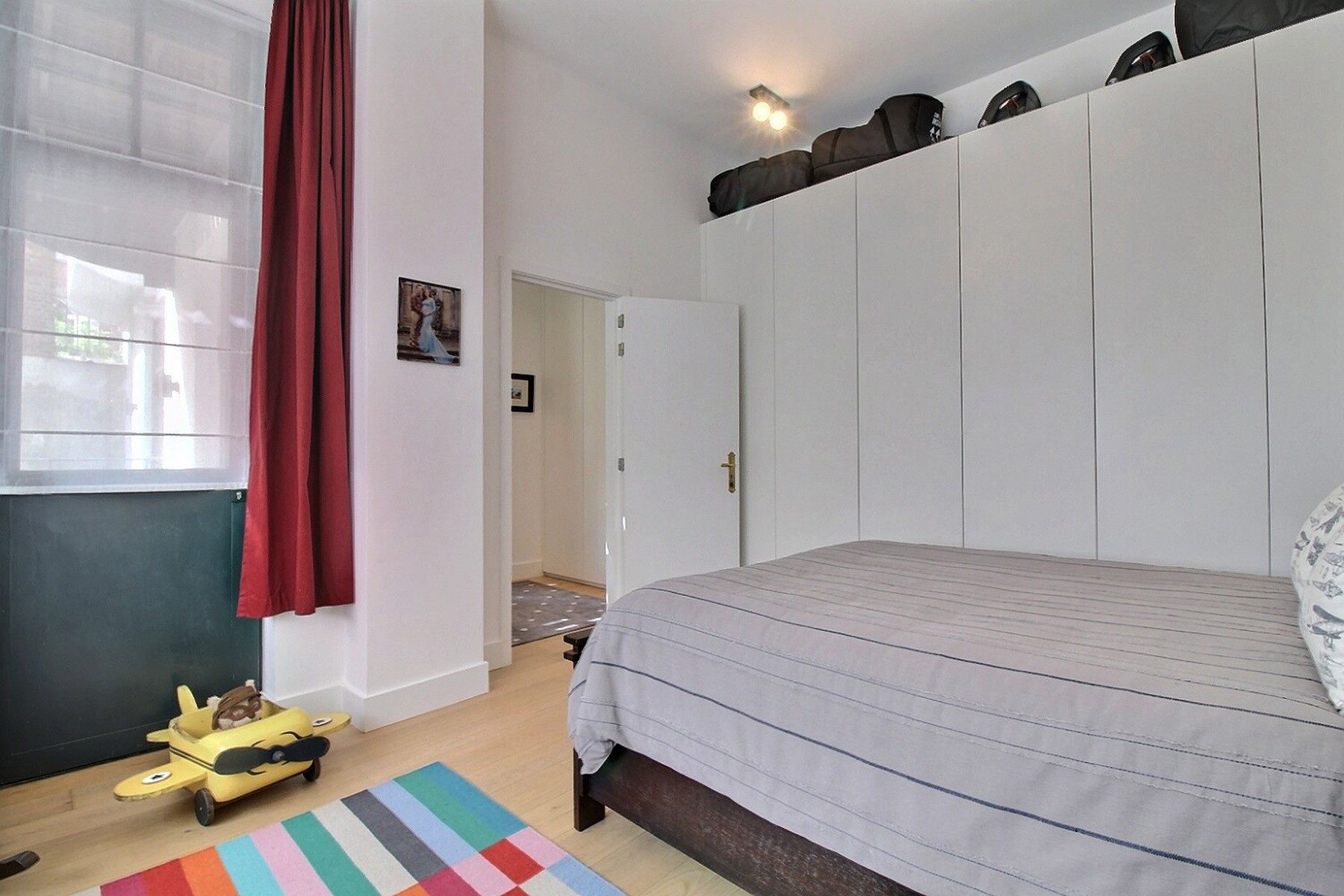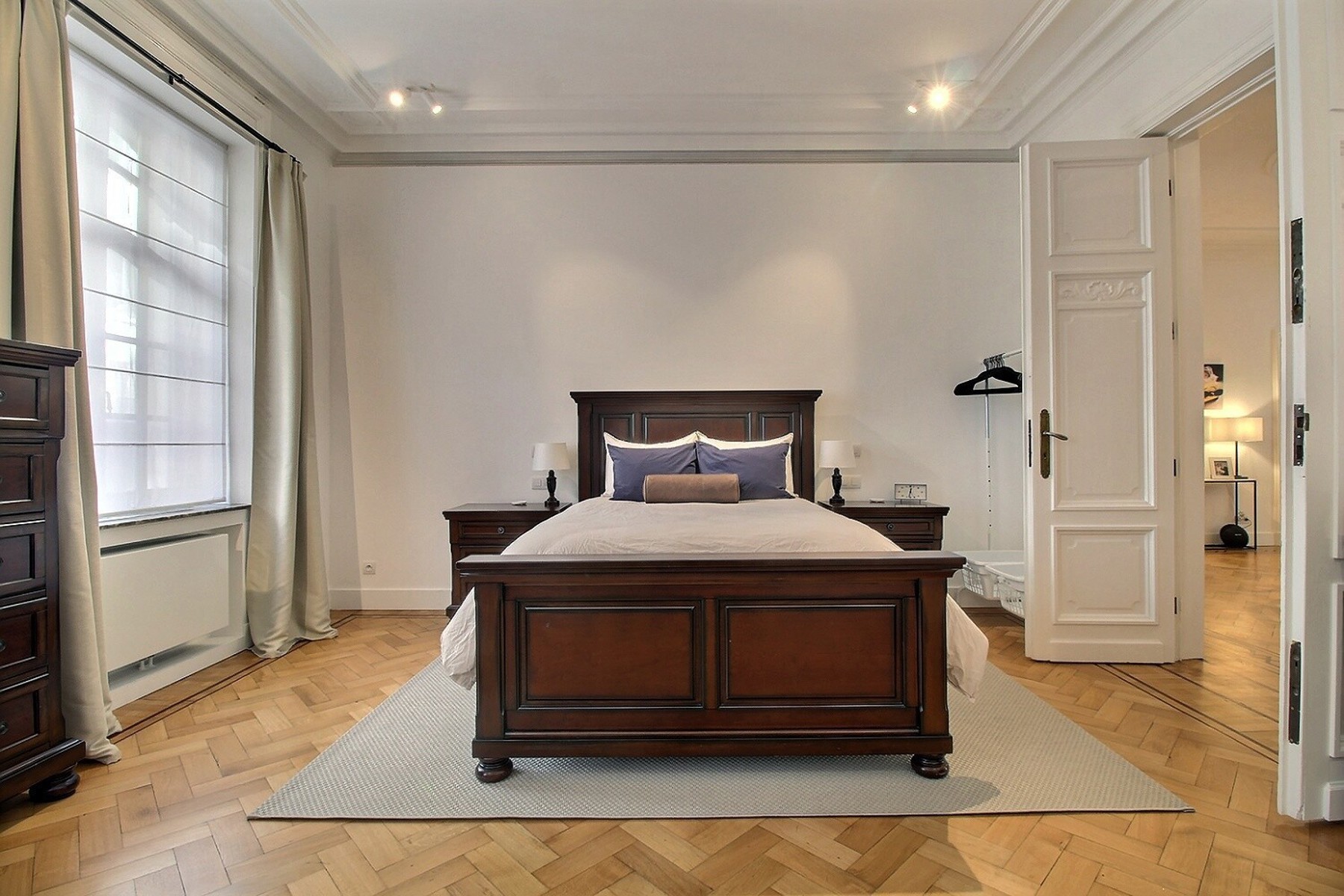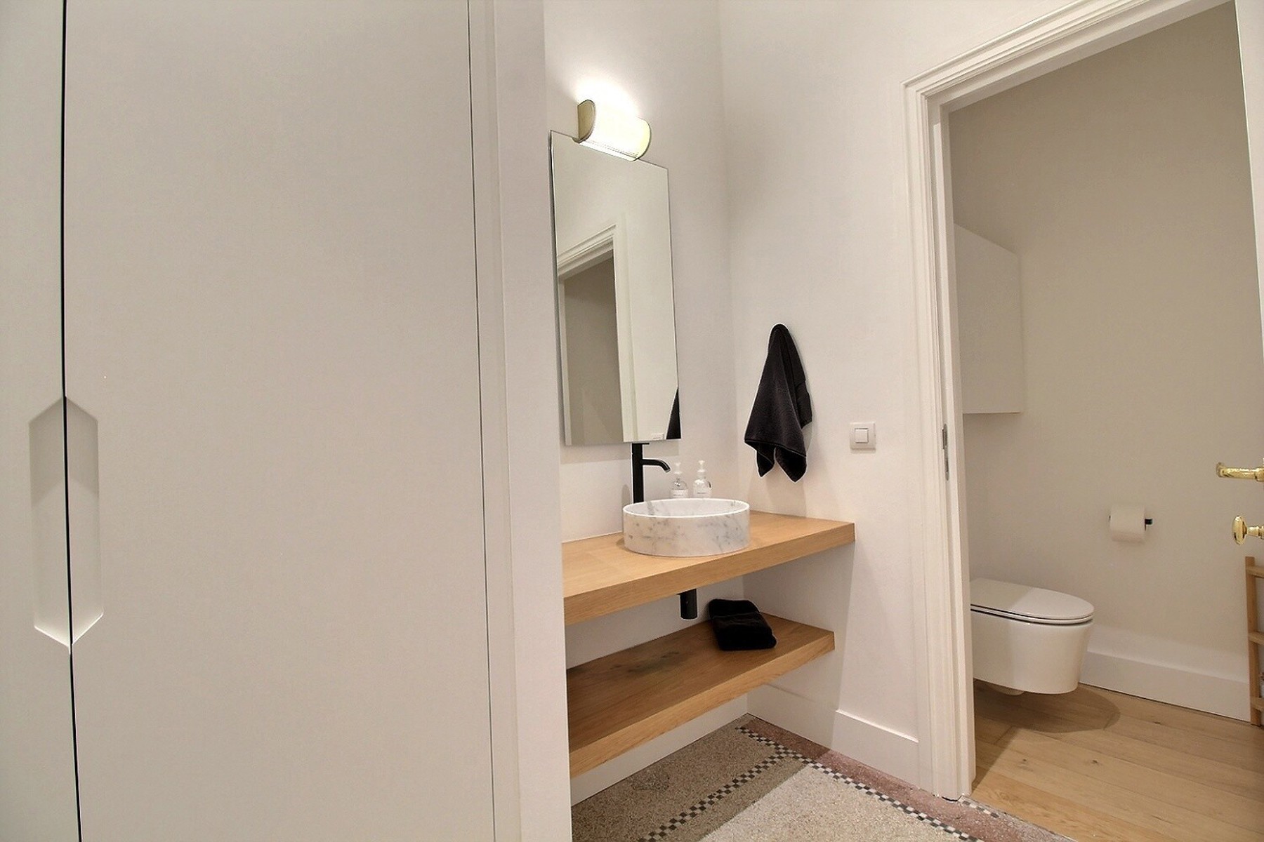 Located in a former mansion built in 1927 by architect Albert De Rudder, completely refurbished in 2021, close to Place Stéphanie, By the Way presents this splendid souplex apartment, completely renovated, of +/- 266m2 (according to EPC). It is located on the ground floor/-1 in a very well-maintained 4-floors building with elevator. Composition : ground floor : closet and separate guest WC, spacious living and dining room with access to the terrace and garden, fully equipped kitchen, two bedrooms, one with access to the garden, dressing room and private shower room, separate bathroom with WC. On the lower floor is the master bedroom with dressing room and en-suite shower room (bath, shower and WC). It gives access to a small outside courtyard. Large laundry room and cellar. Large garage with access from the apartment. Alarm system. EPC : E-. Charges : 250€/month (provision for common areas). Water, heating and electricity are individual charges. Available now.