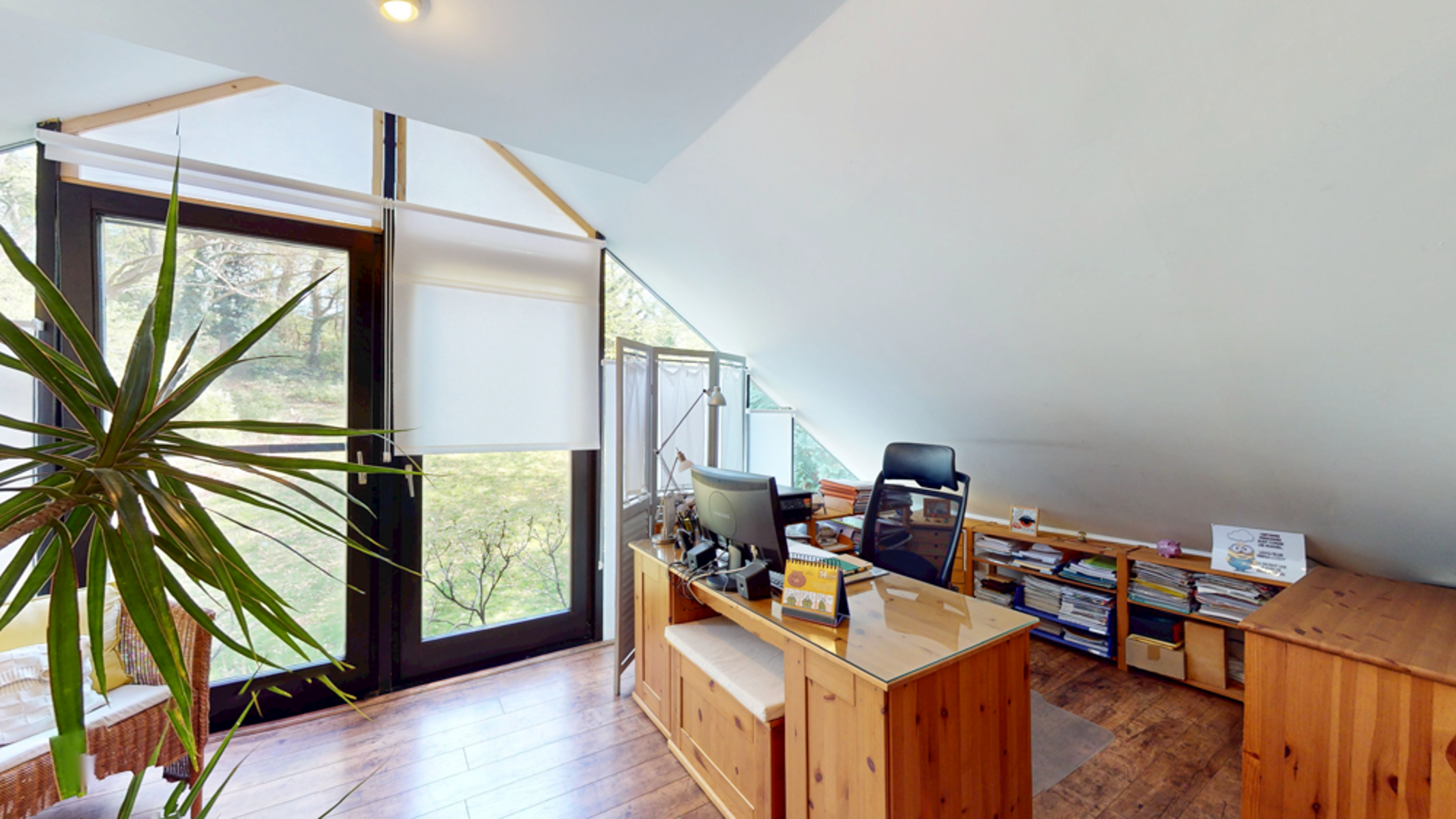 The first floor comprises a large bedroom of around 44 m² with an en suite shower room.