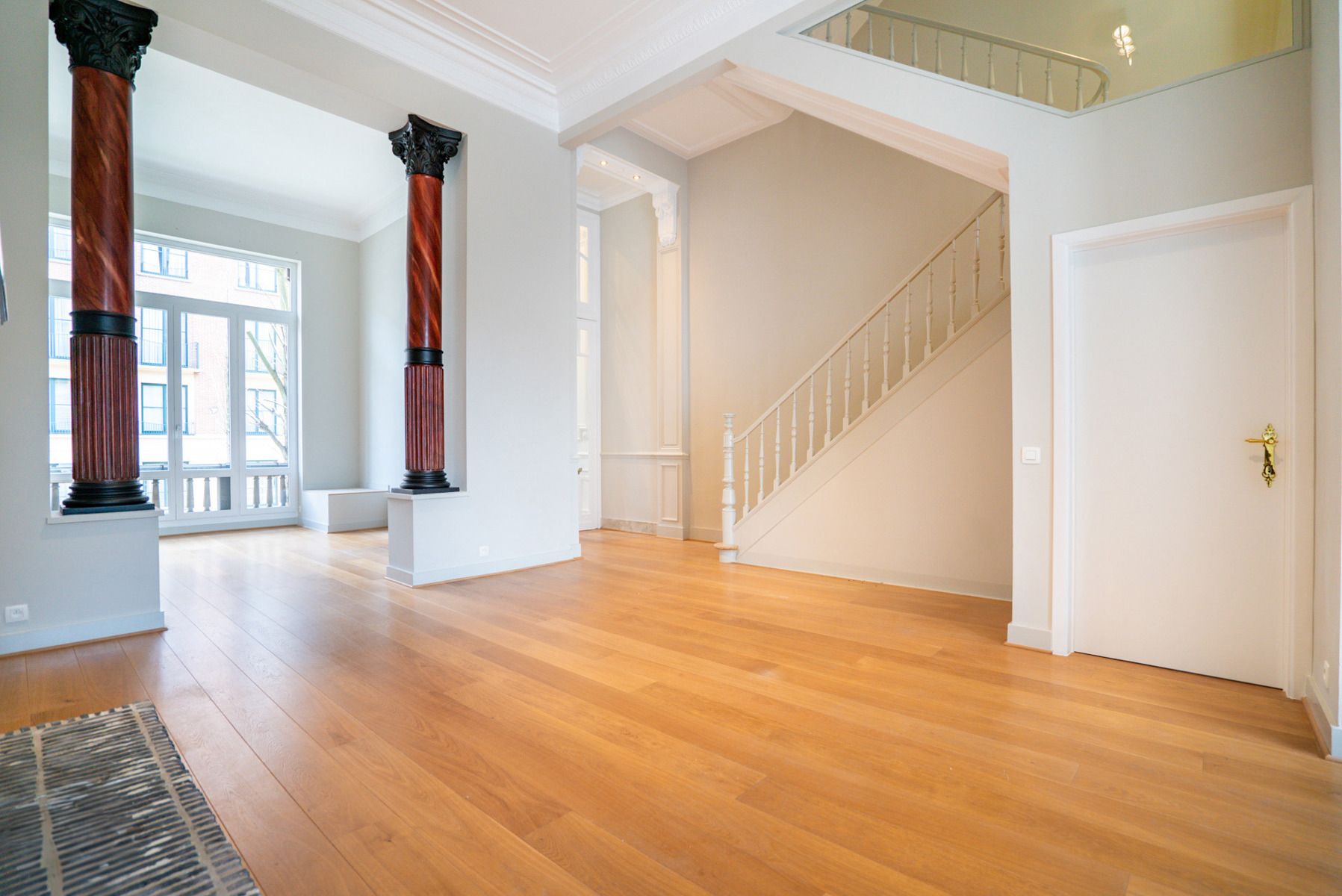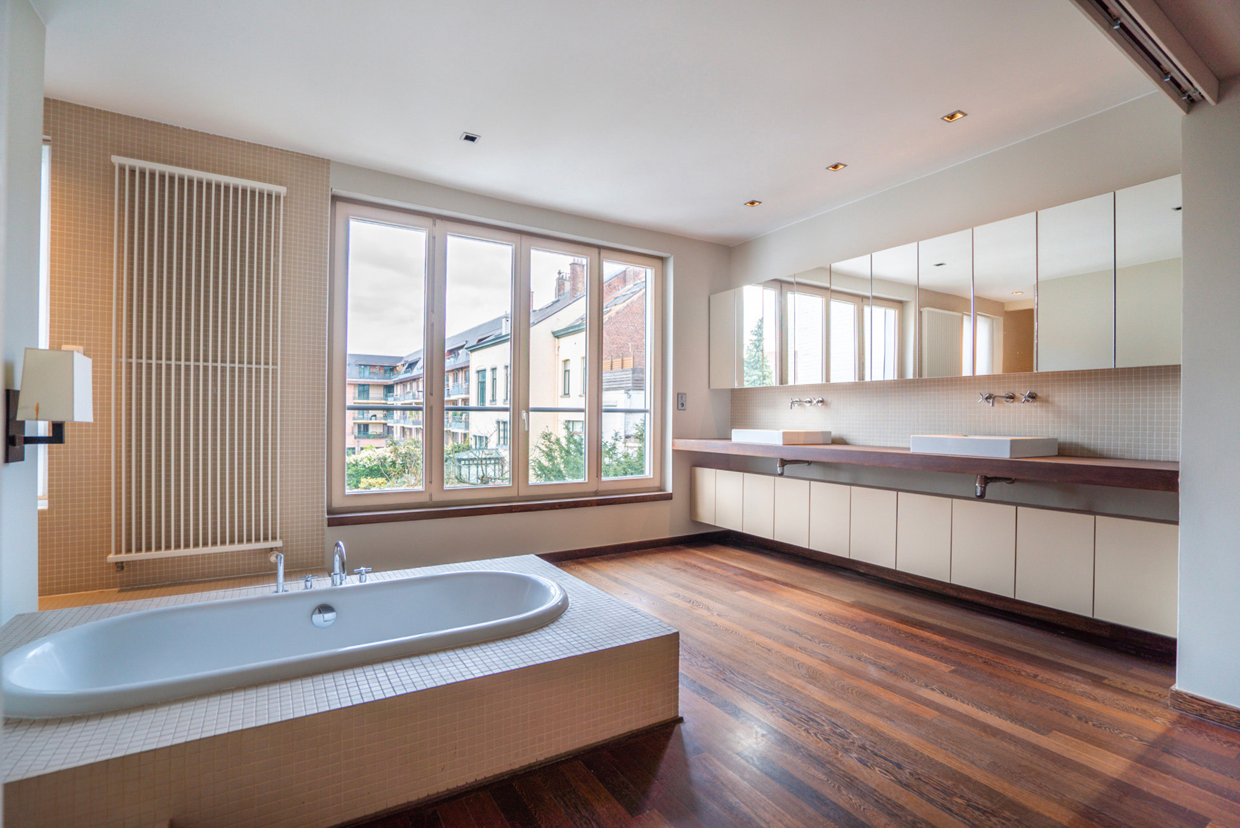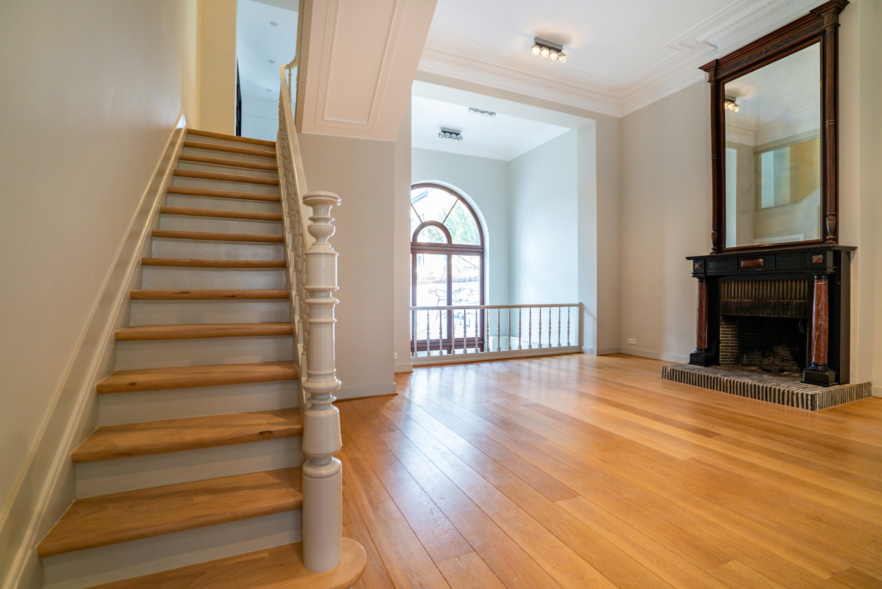 By The Way offers you this beautiful town house located just a stone’s throw from large green areas such as Woluwe Park, Parmentier Park and the Woluwe Valley. Well served by Brussels transport, close to Montgomery and Stockel metro stations and tram lines 8, 39 and 44, as well as bus 36. The property comprises GROUND FLOOR: Cloakroom with cupboards, fitted kitchen of +/- 21 m2, WC, utility room, dining room of 16m2 with large picture windows opening onto the terrace and garden. 1ST FLOOR: Hall, living room divided into 2 areas totalling +/- 56m2. MAIN FLOOR: study. 2ND FLOOR: bedroom 1 of +/- 29m2, master suite (bedroom 2) with dressing room of +/- 20m2 with its bathroom with separate shower of +/- 18m2 and WC. 3RD FLOOR: bedroom 3 of +/- 17m2, shower room with WC, bedroom 4 of +/- 23m2 and access to a large terrace of 19m2. 4th FLOOR: Bedroom 5 of +/- 23m2 with dressing room of +/- 9m2 and shower room of 9m2. PEB ‘E’