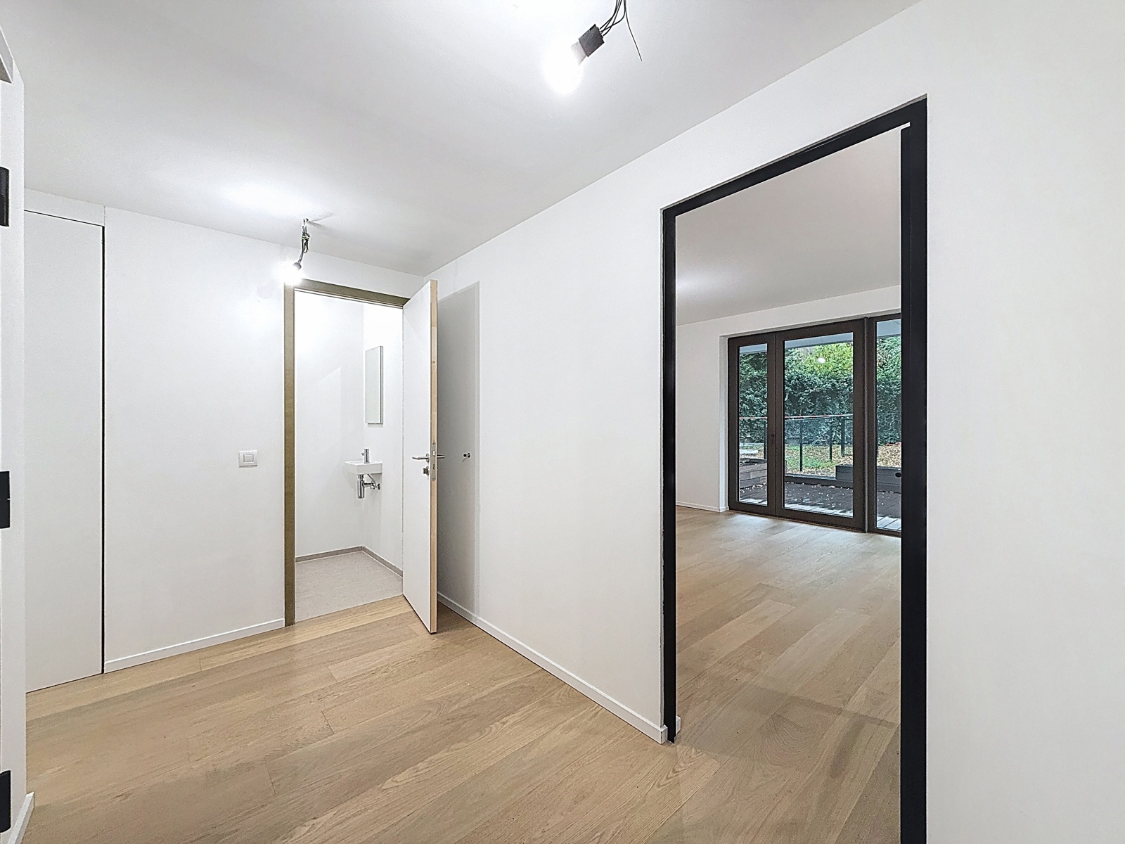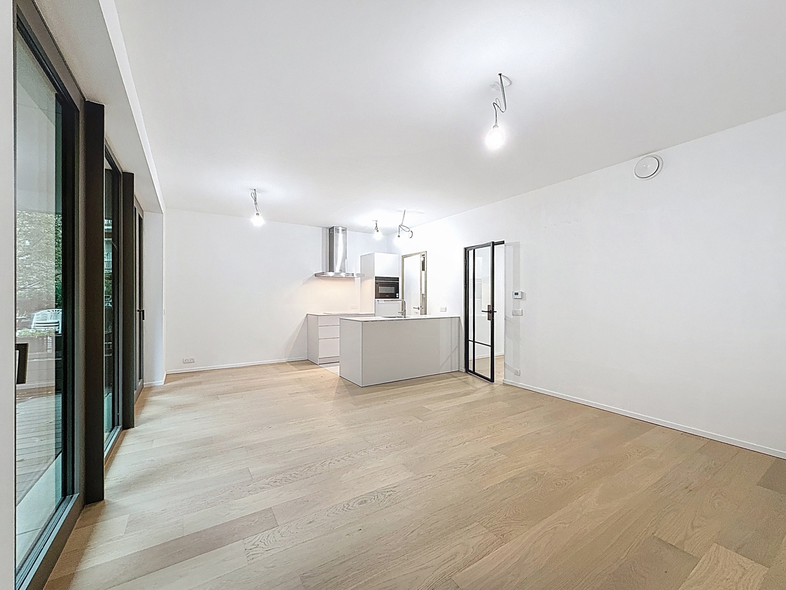 By The Way presents this beautiful GROUND FLOOR flat with lift in a new building on Square des Héros. The property comprises: Large entrance hall (security door), cupboards with individual boiler, fully equipped open-plan kitchen and laundry room, living room of approx. 19m², access to the large terrace and garden, bedroom of approx. 16m² with en-suite shower room. MISCELLANEOUS: EPC Intermediate Report ‘A-’, private cellar, dual-flow ventilation and boiler, all individual, paintwork, new light fittings and some curtains will be provided. PARKING SPACE AVAILABLE FOR AN ADDITIONAL €150/month – CHARGES: €120/month including maintenance of common areas, property management, lift, building insurance, etc.