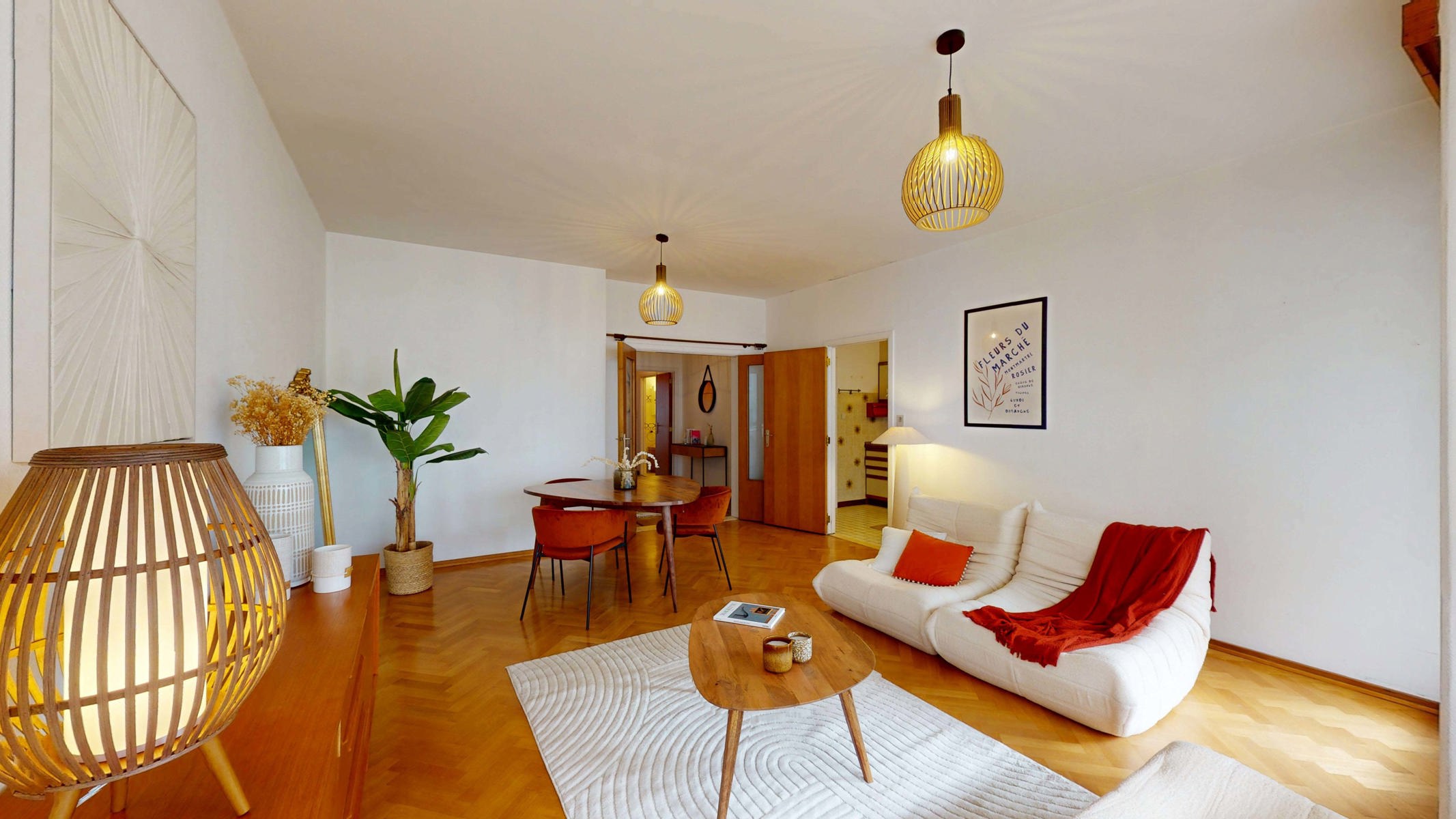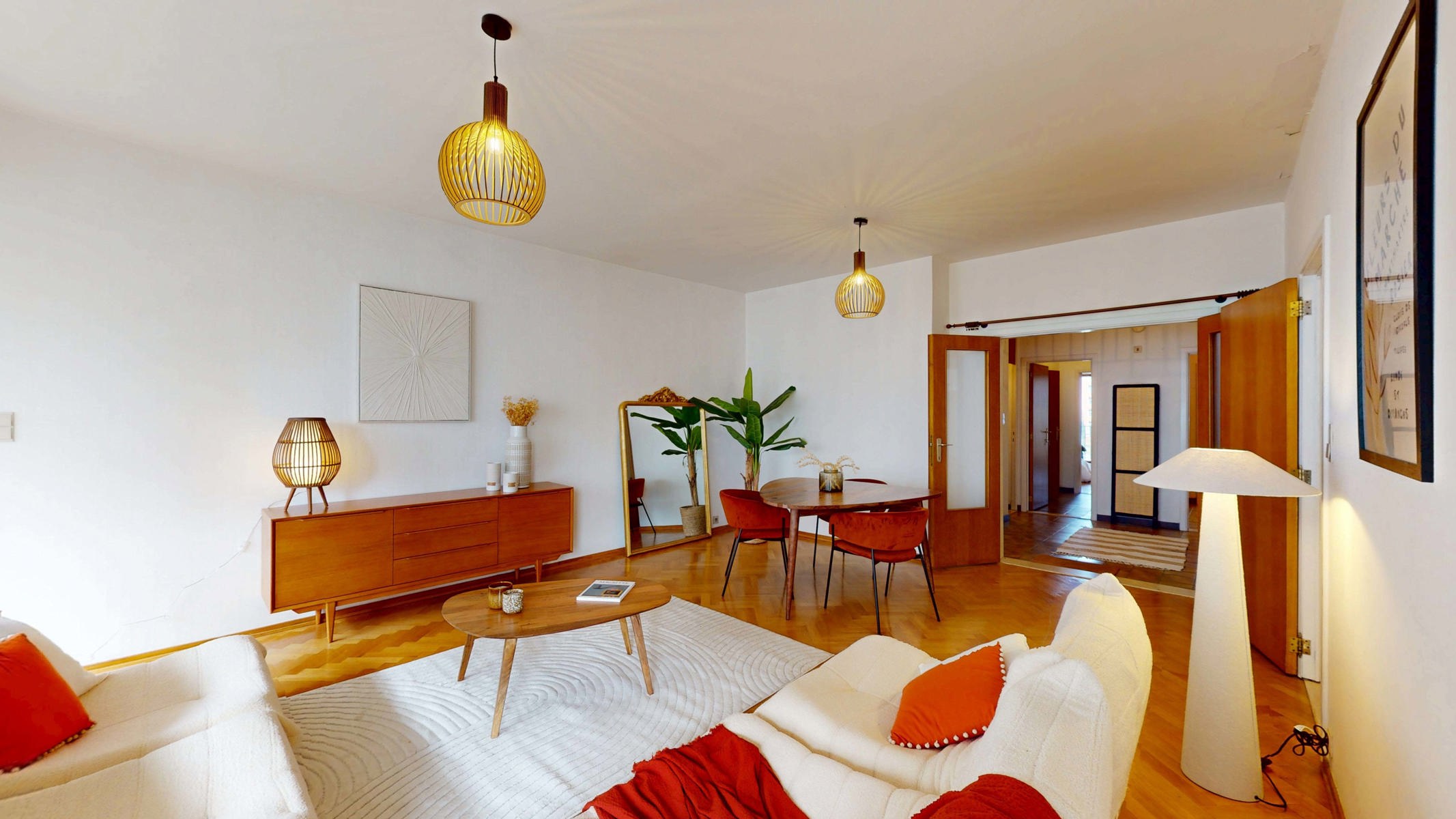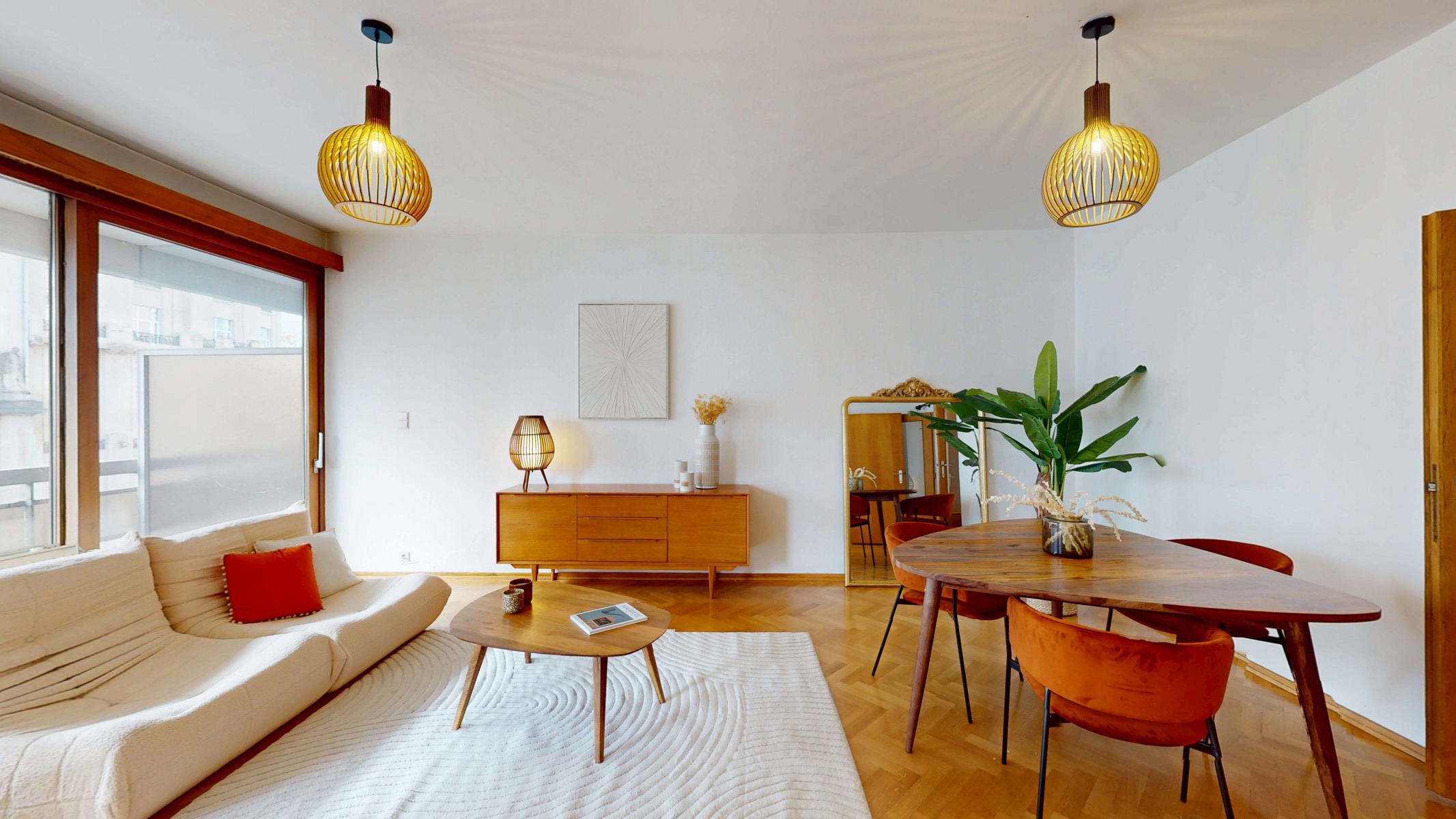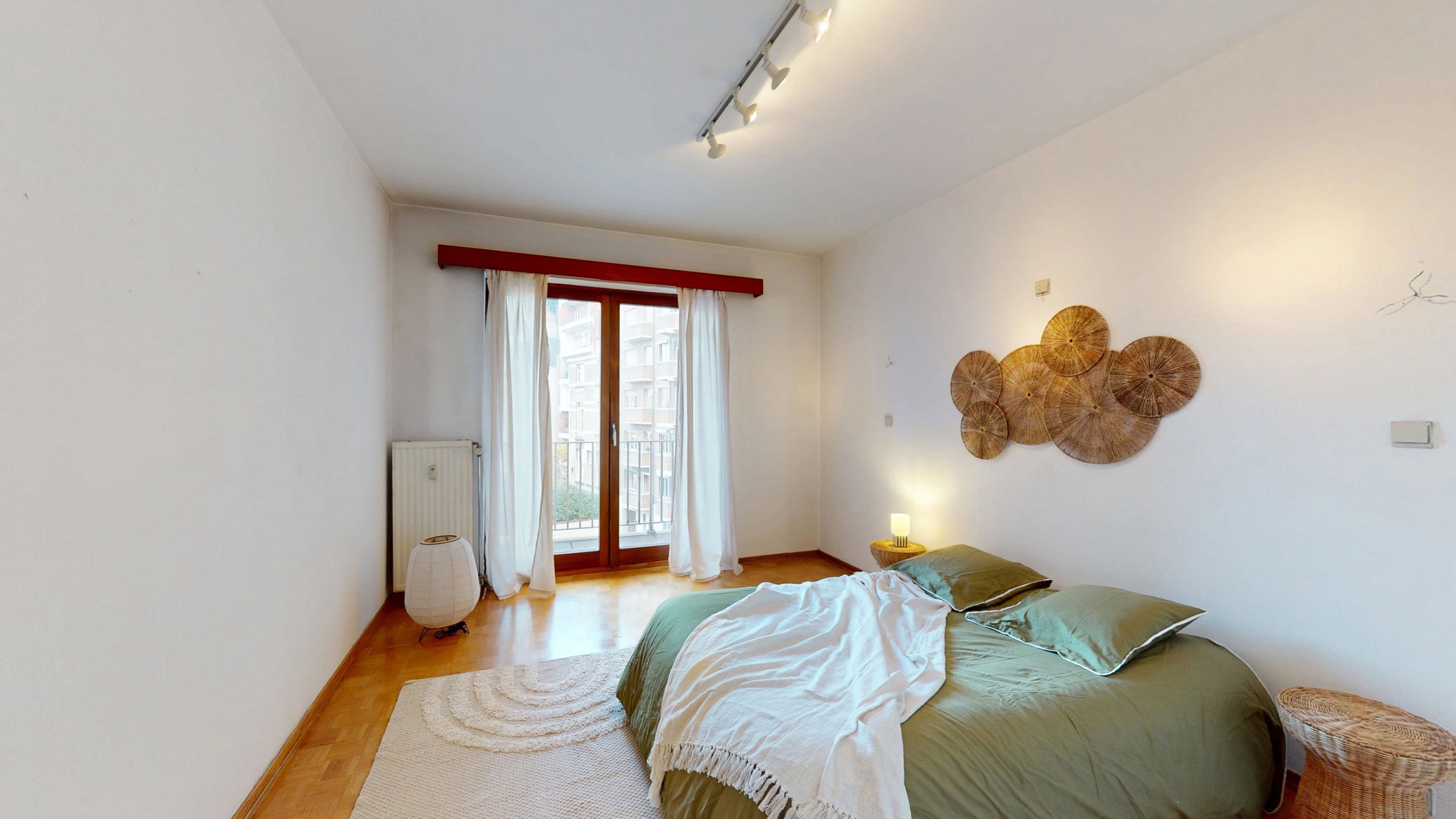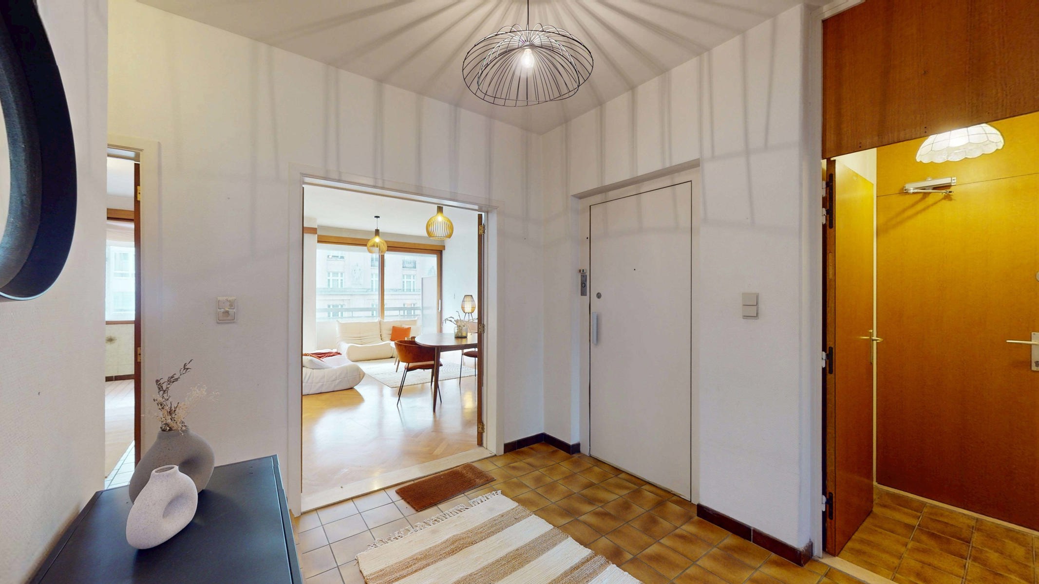 IXELLES – Étangs d’Ixelles district, between the gardens of the Abbey of La Cambre and the Bois de la Cambre, By the Way presents a flat on the 4th floor (right) with a lift providing direct private access, in a small co-ownership of 16 flats over 8 storeys. This dual-aspect flat of approx. 106 m² gross (according to EPC) is set in a cul-de-sac and enjoys, at the front, an open, unobstructed view with very little overlooking and, at the rear, a quiet inner courtyard. The property, in need of renovation, is laid out as follows: entrance hall with cloakroom, guest WC, bright living room with direct access to a front terrace facing south-west, spacious adjoining kitchen, first night hall with dressing area, shower room and first bedroom opening onto a rear balcony. Second night hall with dressing area, second bedroom and bathroom. Numerous bespoke storage units and a cellar of approx. 3 m² complete the offer. Service charges: approx. €350/month, including cleaning of the common areas, rubbish collection, water and electricity for the common parts, managing agent’s fees, lift, as well as advance payments for private heating and hot water consumption. Technical details: EPC rating C- (valid until 06/11/2035), wooden double-glazed windows, communal Ferroli gas boiler (2005), electrical installation not compliant, reinforced security door, entry phone / video phone, solid wood flooring and extensive built-in storage.
