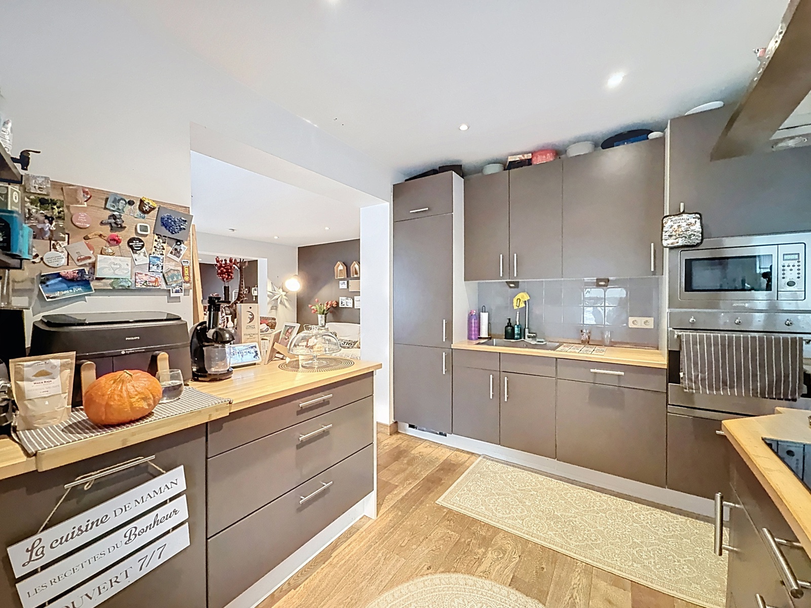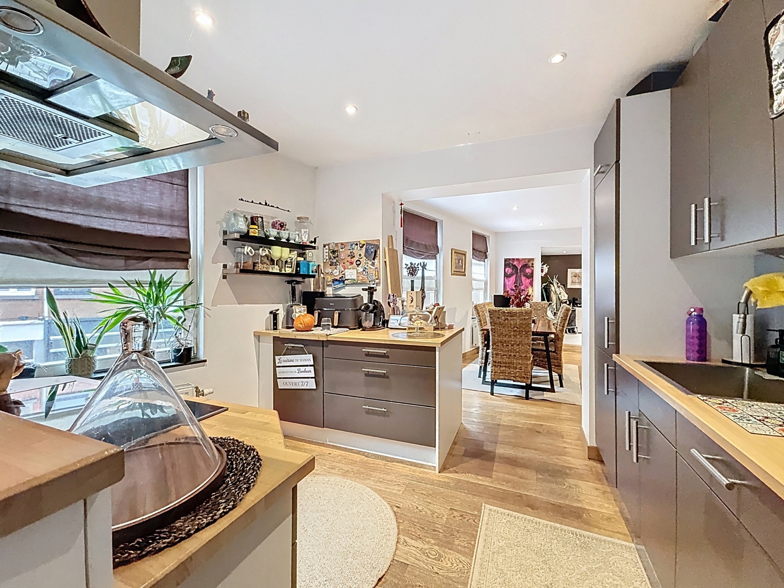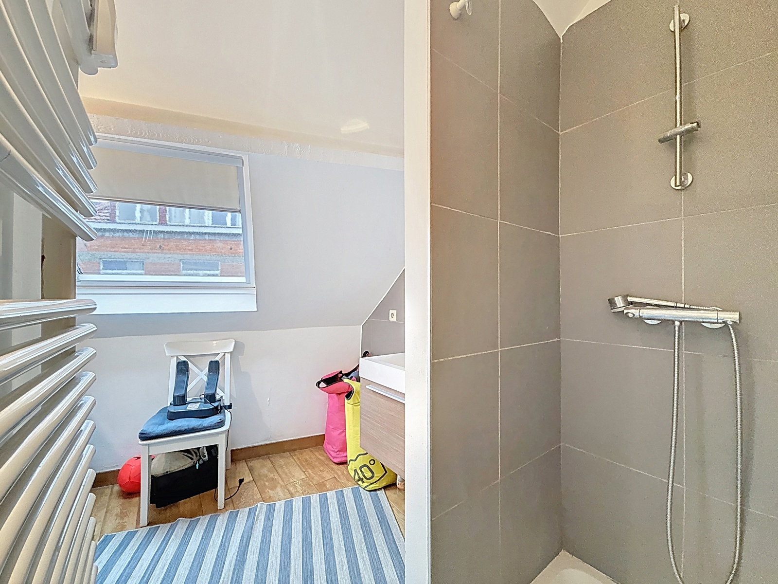 By The Way offers you this beautiful 3-bedroom DUPLEX apartment just a stone’s throw from Place Dumon (STOCKEL) and all its amenities. The property is laid out as follows: 1ST LEVEL: Entrance hall with access to a terrace of approx. 22m², laundry room, dining room of approx. 20m² leading to the fully equipped open-plan kitchen, living room of approx. 25m², hallway with stairs leading to the upper floor and guest WC. 2ND LEVEL: Hallway with 2 bedrooms of +/-10m² each, as well as a shower room and separate WC, but it also gives access to the master suite with its bedroom of +/-13m² with a dressing room connecting the bedroom and my bathroom. MISCELLANEOUS: South-facing terrace of approx. 22m², EPC: C, charges: €220/month including heating, communal areas and water. Indoor parking space available at an additional cost of €100/month.