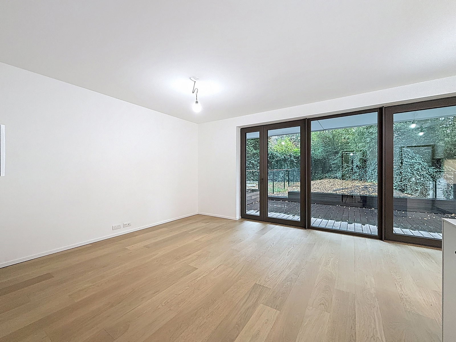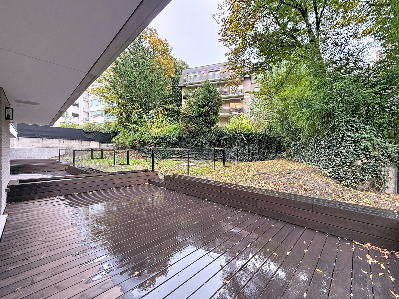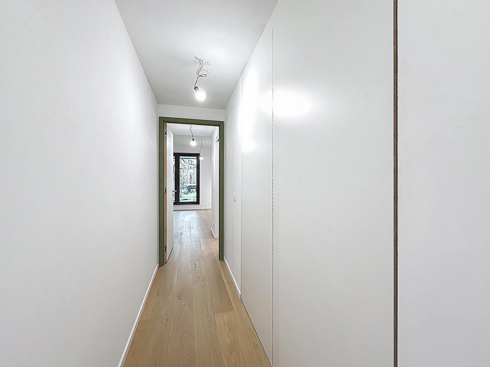 By The Way presents this beautiful GROUND FLOOR flat with lift in a new building on Square des Héros. The property comprises: Large entrance hall (security door), cupboards with individual boiler, fully equipped open-plan kitchen and laundry room, living room of approx. 19m², access to the large terrace and garden, bedroom of approx. 16m² with en-suite shower room. MISCELLANEOUS: EPC Intermediate Report ‘A-’, private cellar, dual-flow ventilation and boiler, all individual, paintwork, new light fittings and some curtains will be provided. PARKING SPACE AVAILABLE FOR AN ADDITIONAL €150/month – CHARGES: €120/month including maintenance of common areas, property management, lift, building insurance, etc.
