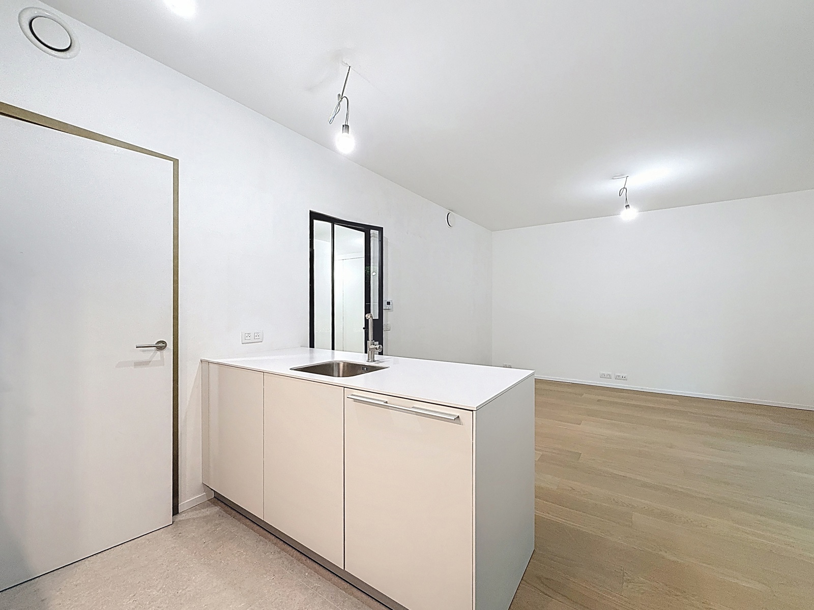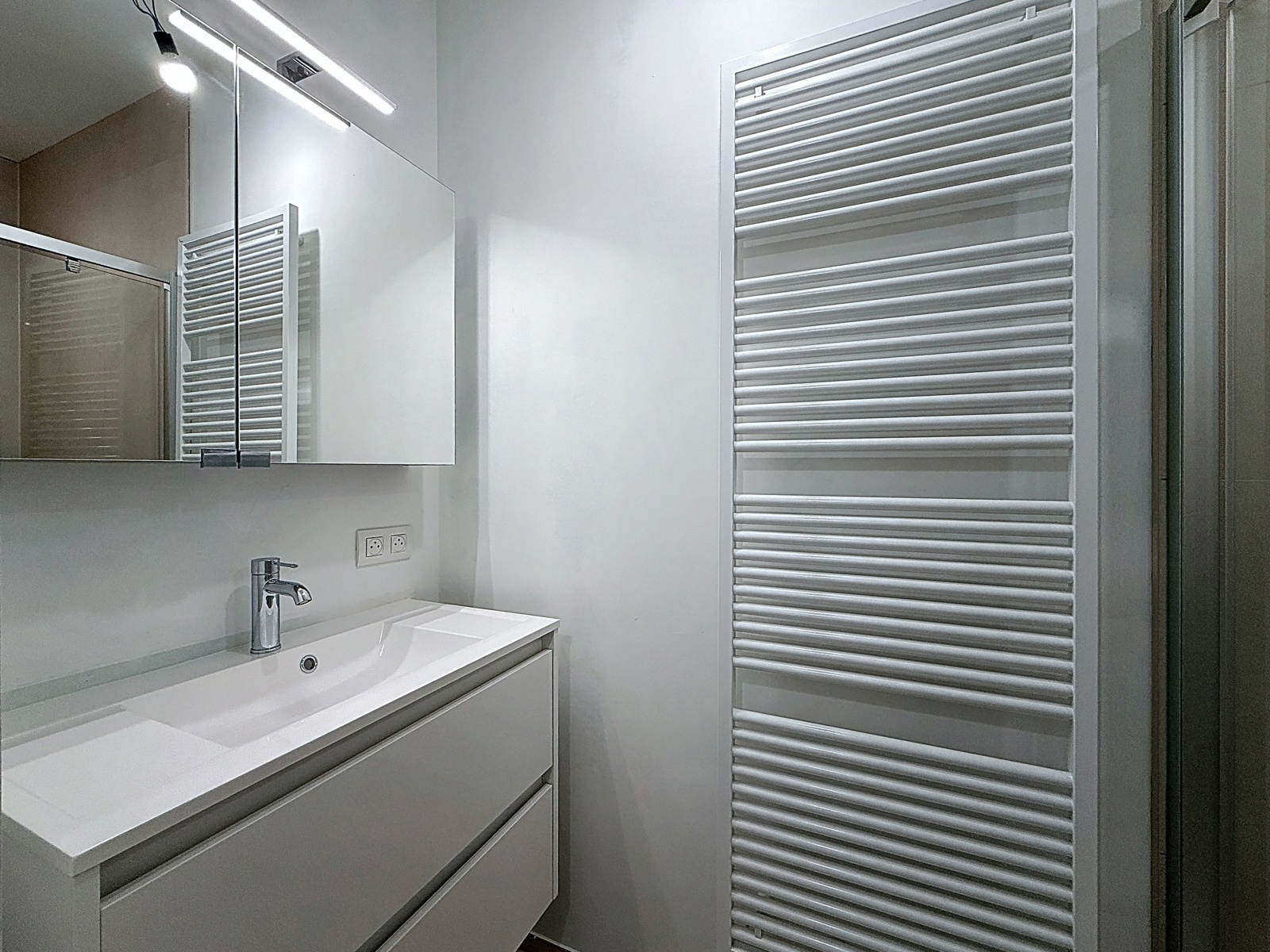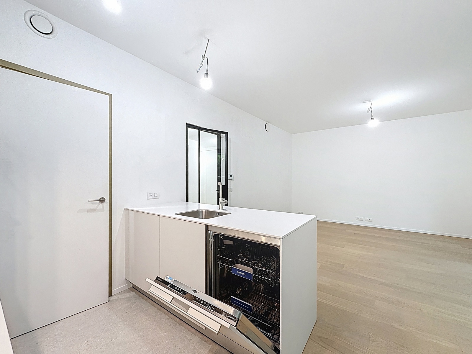 By The Way presents this beautiful GROUND FLOOR flat with lift in a new building on Square des Héros. The property comprises: Large entrance hall (security door), cupboards with individual boiler, fully equipped open-plan kitchen and laundry room, living room of approx. 19m², access to the large terrace and garden, bedroom of approx. 16m² with en-suite shower room. MISCELLANEOUS: EPC Intermediate Report ‘A-’, private cellar, dual-flow ventilation and boiler, all individual, paintwork, new light fittings and some curtains will be provided. PARKING SPACE AVAILABLE FOR AN ADDITIONAL €150/month – CHARGES: €120/month including maintenance of common areas, property management, lift, building insurance, etc.