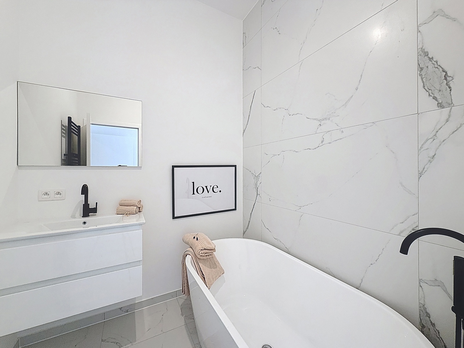 Located in Anderlecht, in the heart of a private heritage-listed park and within a magnificent fully refurbished historic building (2024), By the Way presents this beautiful new apartment, immediately available, offering a gross surface of ±110 m² according to the EPC. Situated on the 2nd floor, it offers a rare living environment combining period architecture, modern comfort and a green setting, while being close to public transport and shops (Canal-Midi district). This bright, dual-aspect apartment consists of an entrance hall with separate toilet, a spacious living room with fully equipped open kitchen, a first bedroom of ±16 m² with an en-suite bathroom, a second bedroom of 11 m², a shower room and a laundry room. Residents also benefit from a private cellar, a private shared garden and a bicycle room. Technical information: EPC B, compliant electricity, underfloor heating via individual heat pump, individual water and electricity meters, parquet flooring, high-quality finishes and materials. Common charges of approximately €170/month, including maintenance of common areas, syndic fees and contribution to the reserve fund. Mandatory supplement: indoor parking space at €25,000. Very advantageous property tax (approx. €465/year). Virtual tour available: https://urls.fr/V-3bWu. This property is part of the renovation project of the Grande Clinique Centrale on the site of the former veterinary school. Studios and other 1-to-3-bedroom apartments are also for sale and immediately available.