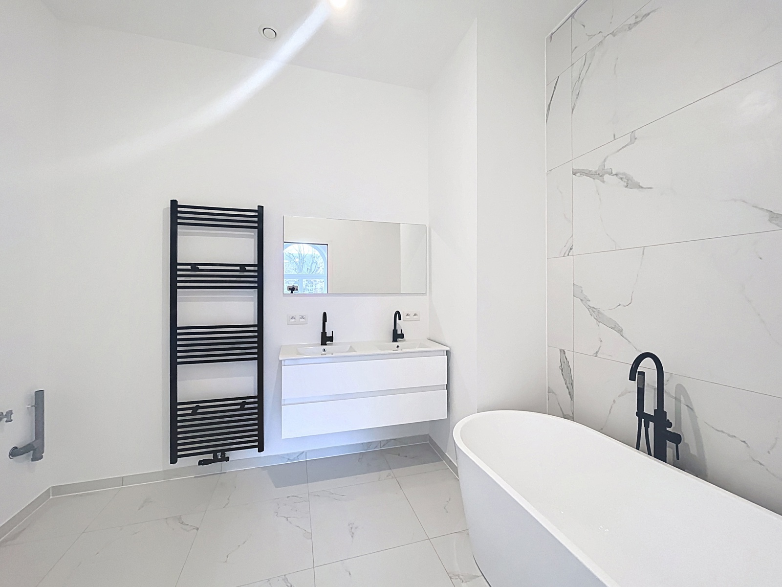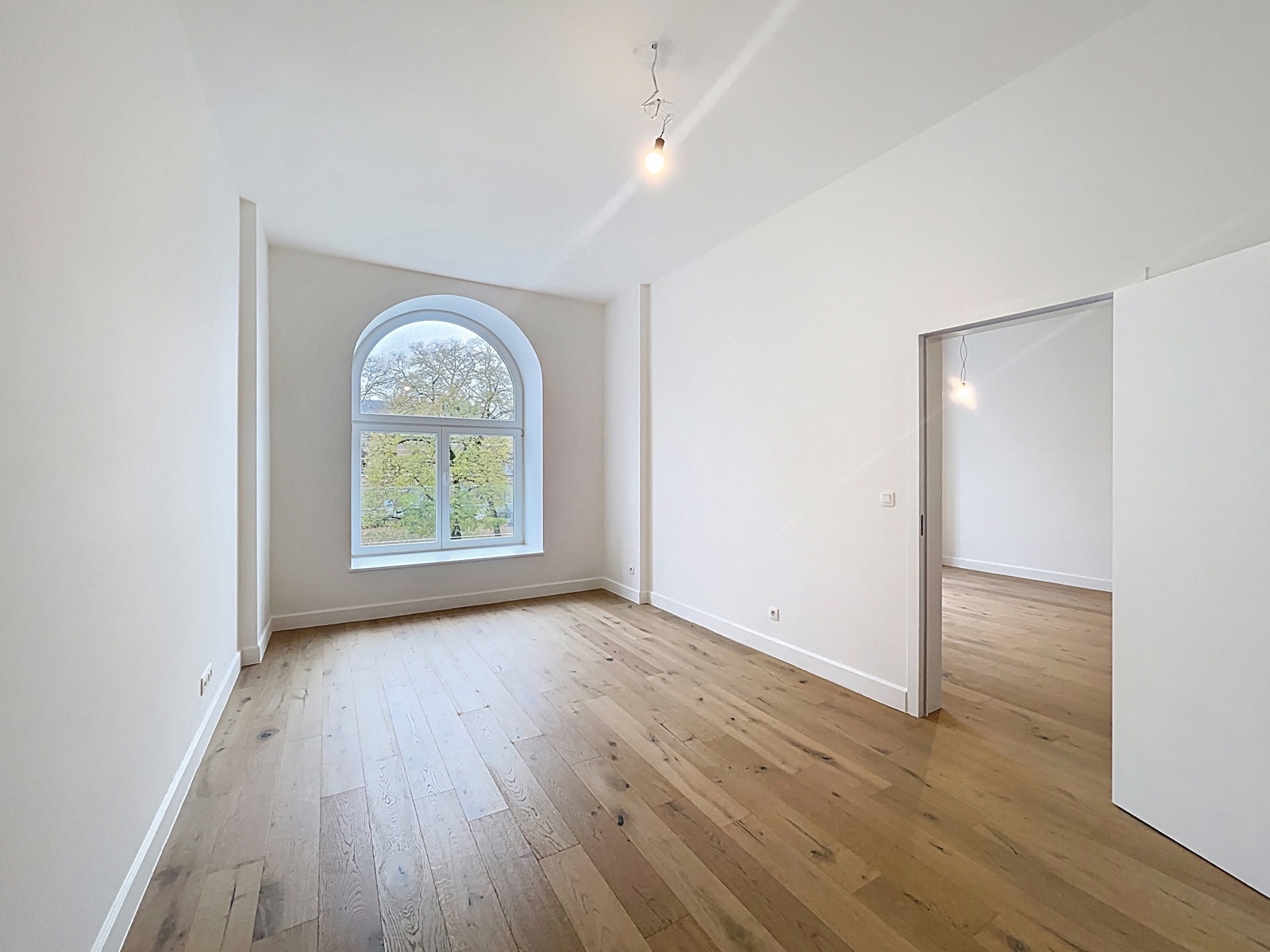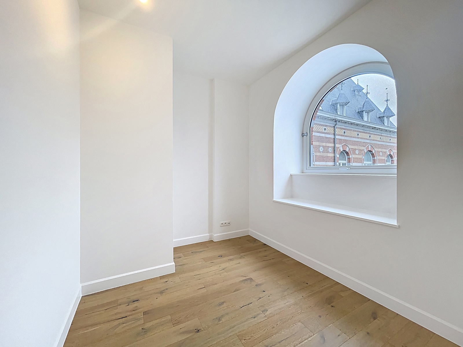 Located in Anderlecht, in the heart of a private heritage-listed park and within a magnificent historic building fully refurbished in 2024, By the Way presents this beautiful brand-new apartment, immediately available, offering a gross surface of ±125 m² according to the EPC. Situated on the 2nd floor, it provides a rare living environment combining historical architecture, modern comfort and greenery, while being close to public transport and shops (Canal-Midi district). This bright dual-aspect apartment consists of an entrance hall with separate toilet, a spacious living room with fully equipped open kitchen, a first bedroom of approx. 18 m² with ensuite bathroom, a second bedroom of approx. 14 m², a third bedroom of approx. 9 m², a separate shower room and a laundry room. Residents also benefit from a private cellar, a private shared garden and a bicycle storage room. Technical features: EPC B, compliant electrical installation, underfloor heating via individual heat pump, individual water and electricity meters, wooden flooring and high-quality finishes. Common charges approx. €206/month including maintenance of common areas, property management fees and reserve fund contribution. Mandatory additional purchase: indoor parking space at €25,000. Very advantageous property tax (+/- €565/year). This property is new and subject to the VAT regime! Virtual tour: https://urls.fr/AYHSsb. This property is part of the renovation project of the Grand Central Clinic of the former veterinary school site. Studios and other 1-to-3-bedroom apartments are also available and ready for immediate occupancy.