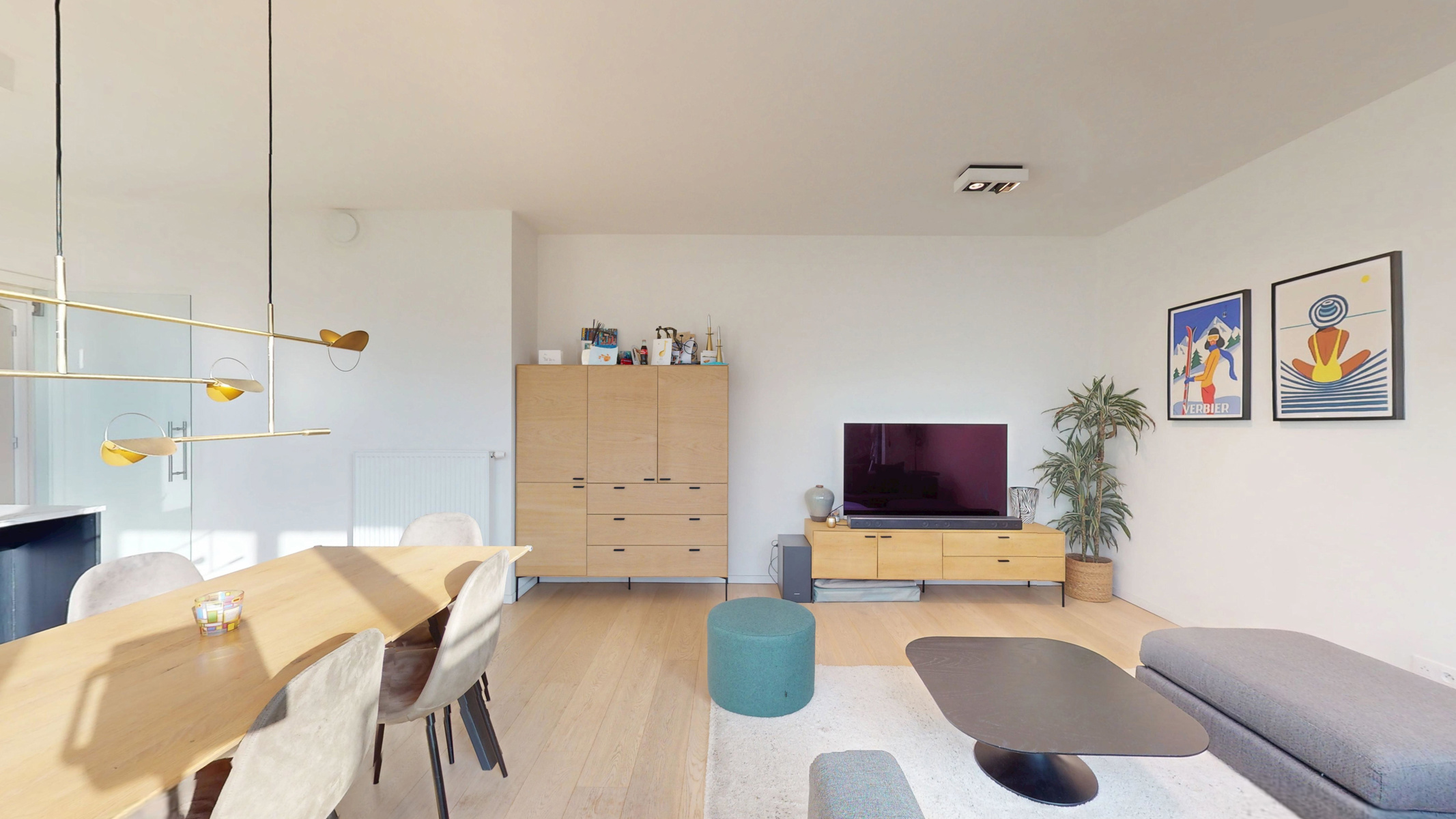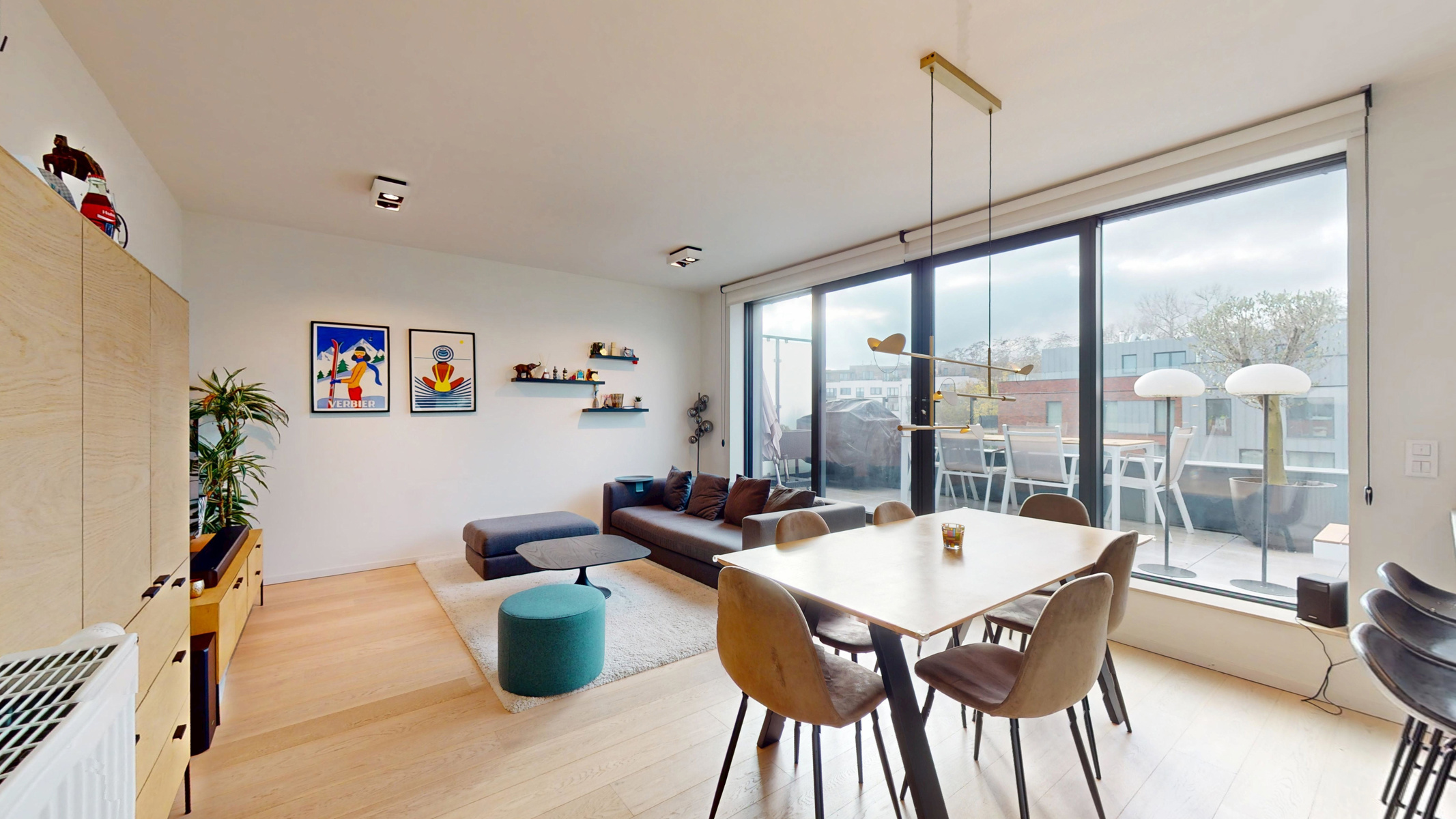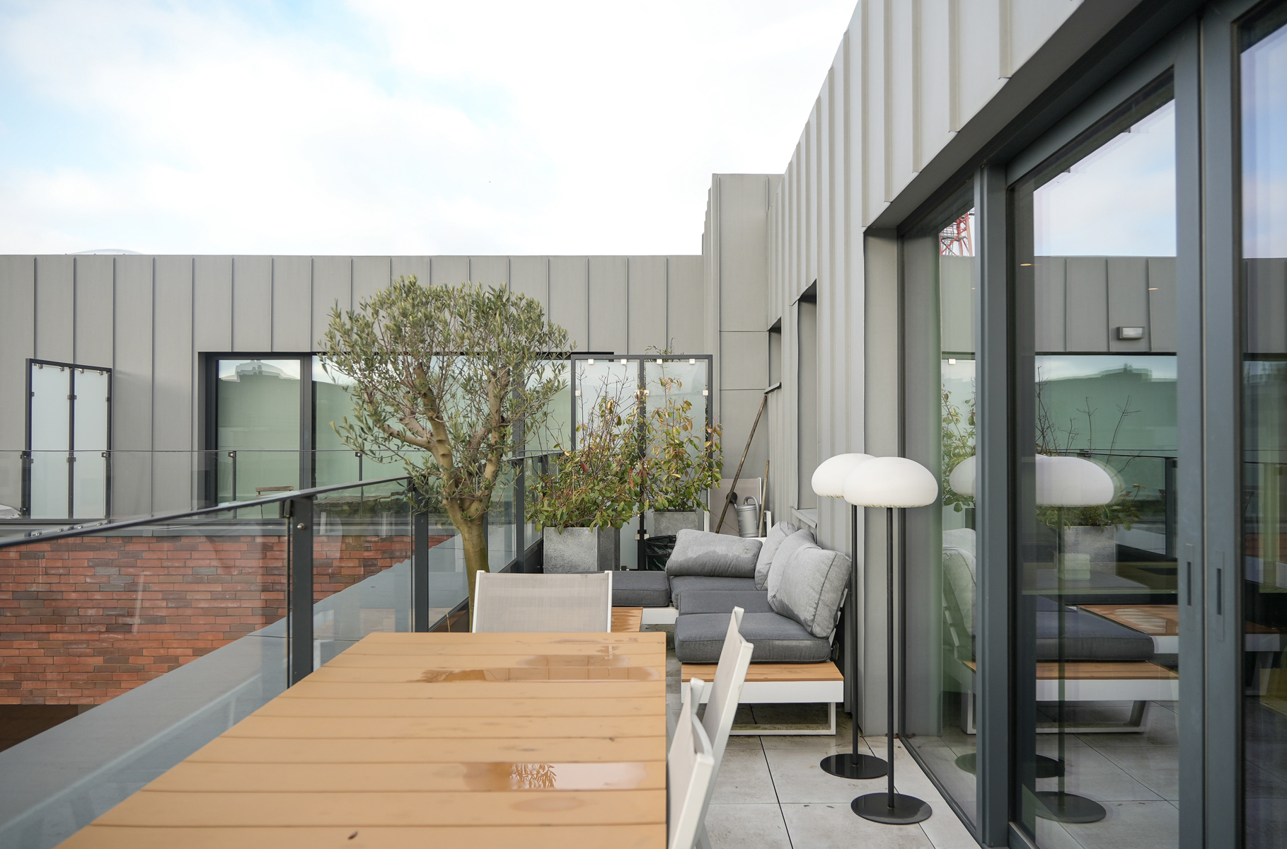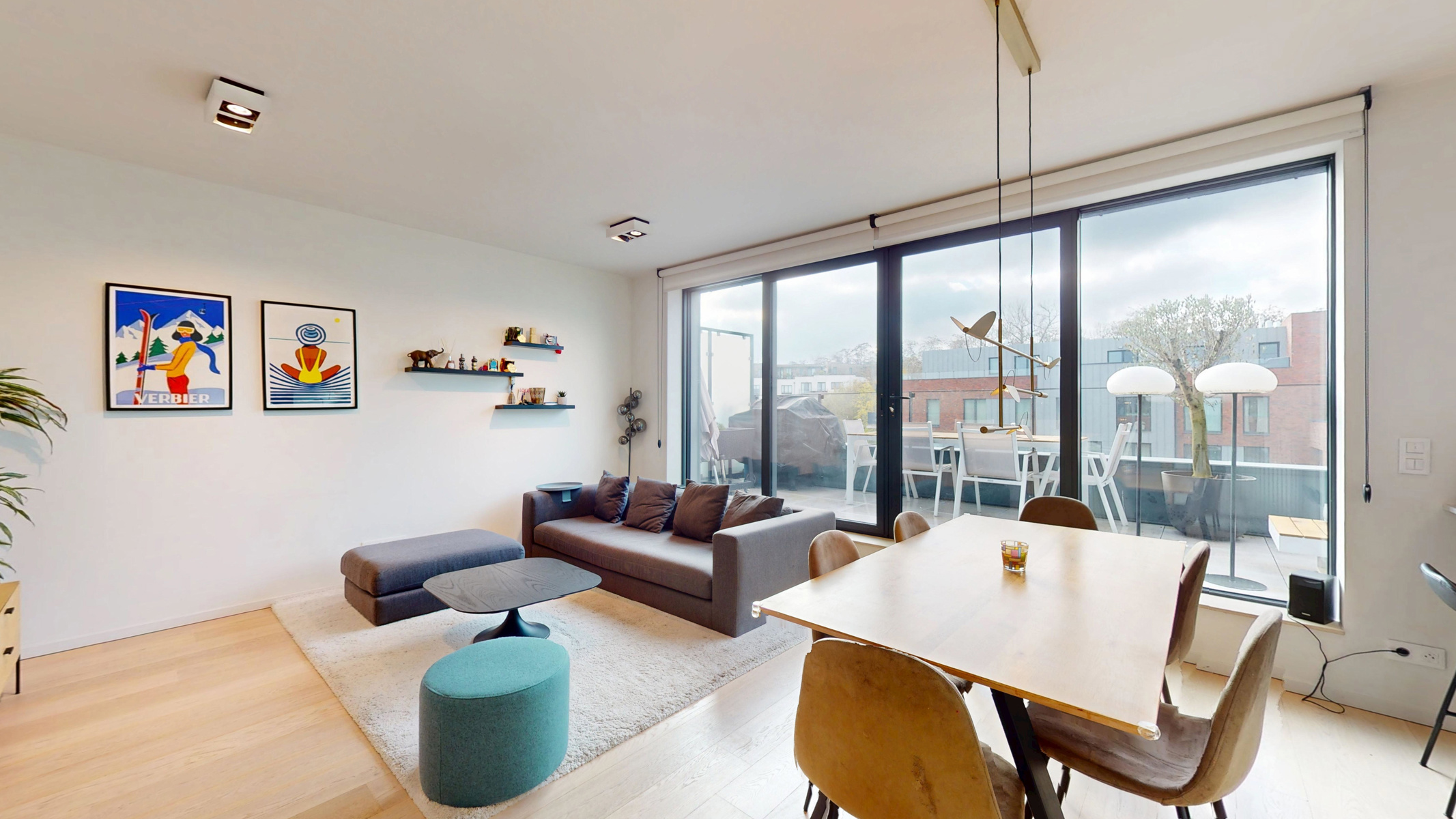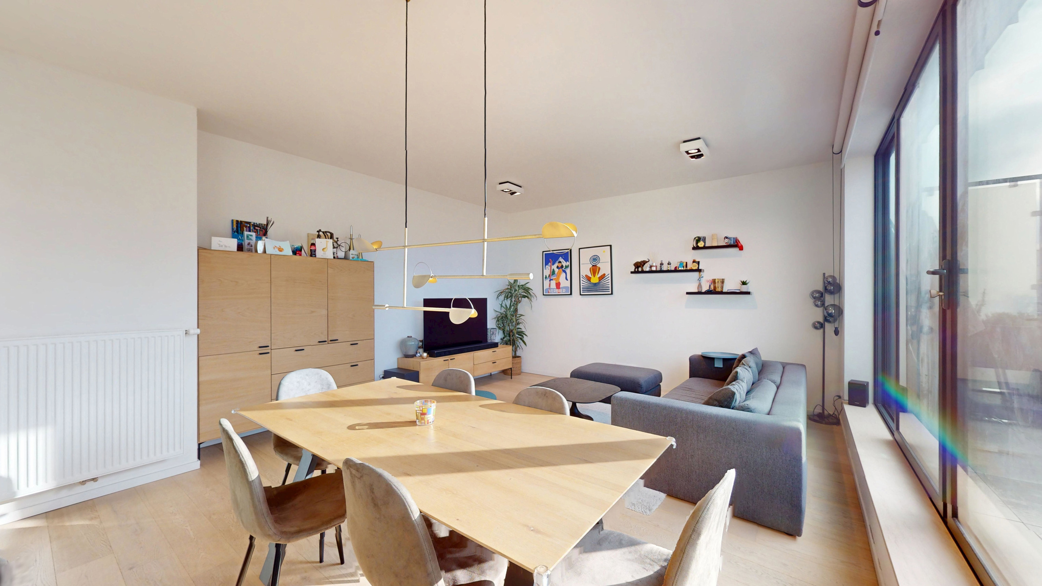 Located near Calvoet station in Uccle, with its transport links and shops, By The Way offers this bright PENTHOUSE apartment of approximately 98 m² gross (according to PEB). Located on the 4th floor with lift in a new, rapidly developing green neighbourhood. Accessible from the alleyway via its private entrance, this top floor apartment with high-end finishes is surrounded by two private terraces and is composed as follows: an entrance hall, living room of +/- 34m² including a fully equipped open-plan kitchen, a hallway leading to a master bedroom of +/-14.50m² with en-suite bathroom, a second bedroom of +/- 11m² with en-suite shower room, the hallway also gives access to a laundry room and a separate WC. This building has a secure bicycle storage room. Indoor parking space is compulsory and available at an additional cost (€30,000). MISCELLANEOUS: PEB A-, electricity compliant, dual-flow CMV, individual gas boiler. Individual water/electricity meters, triple-glazed windows, thermal and sound insulation. Common charges (insurance, maintenance, property management, reserve fund) of approximately €225.61/month.