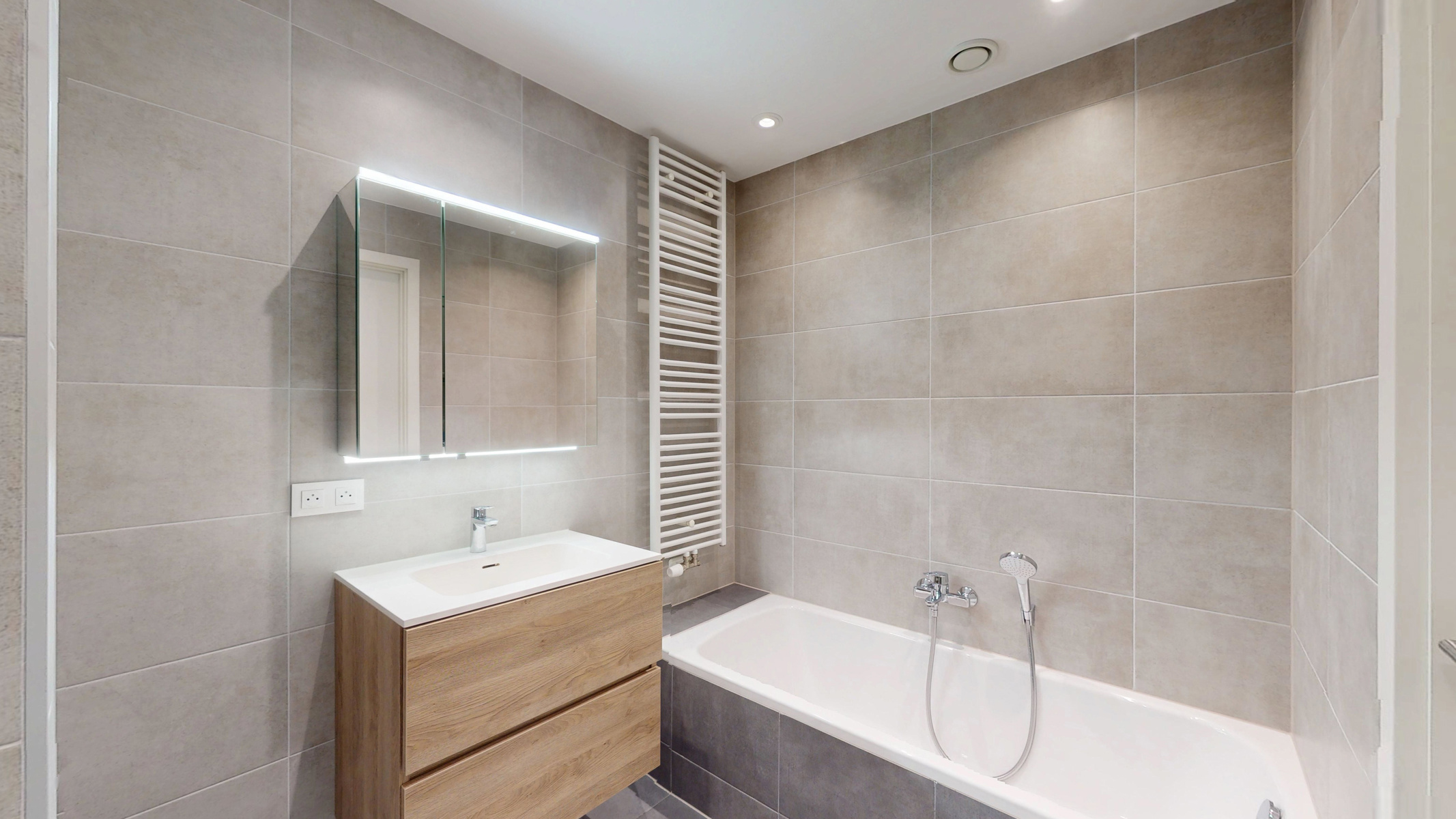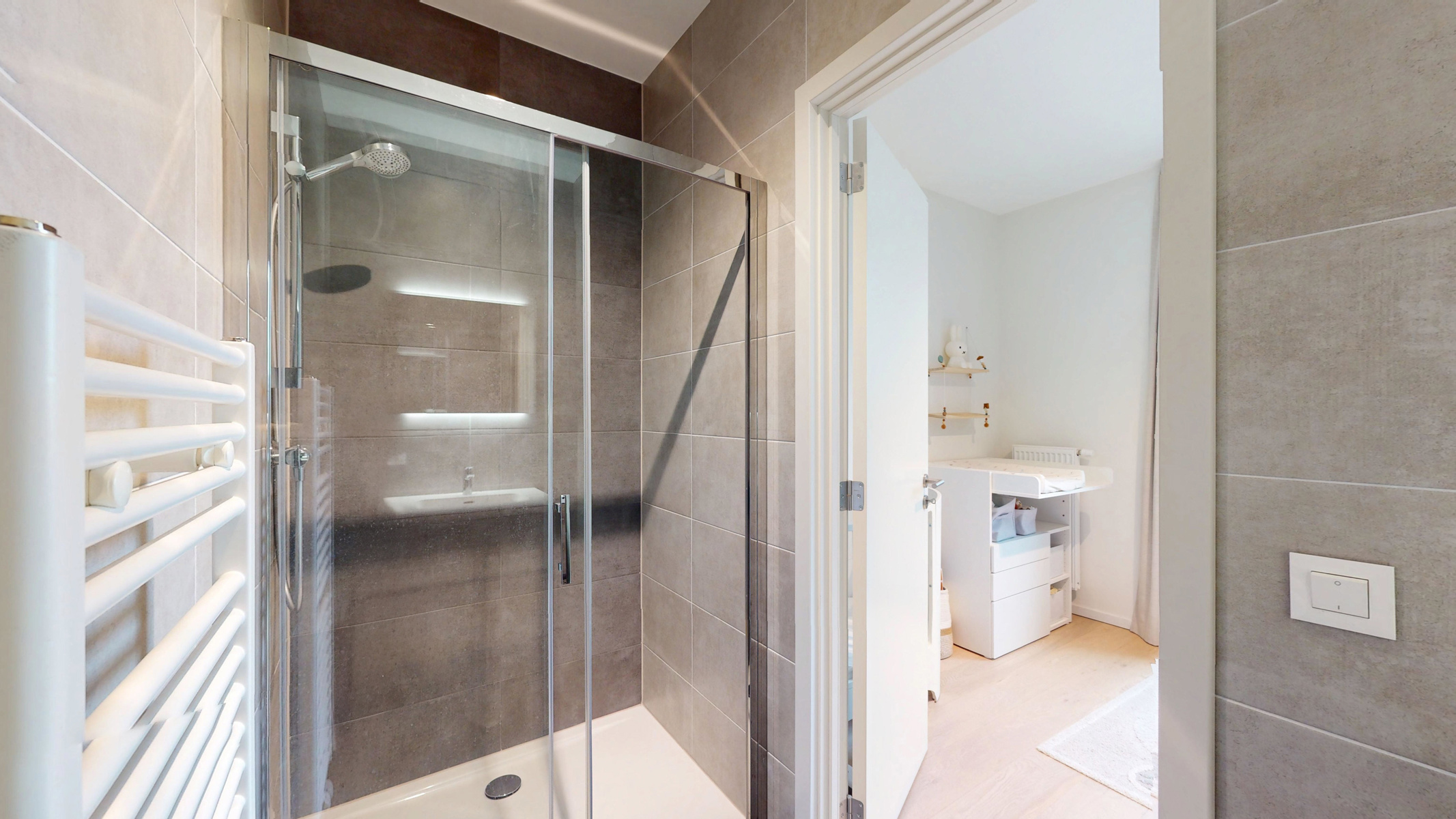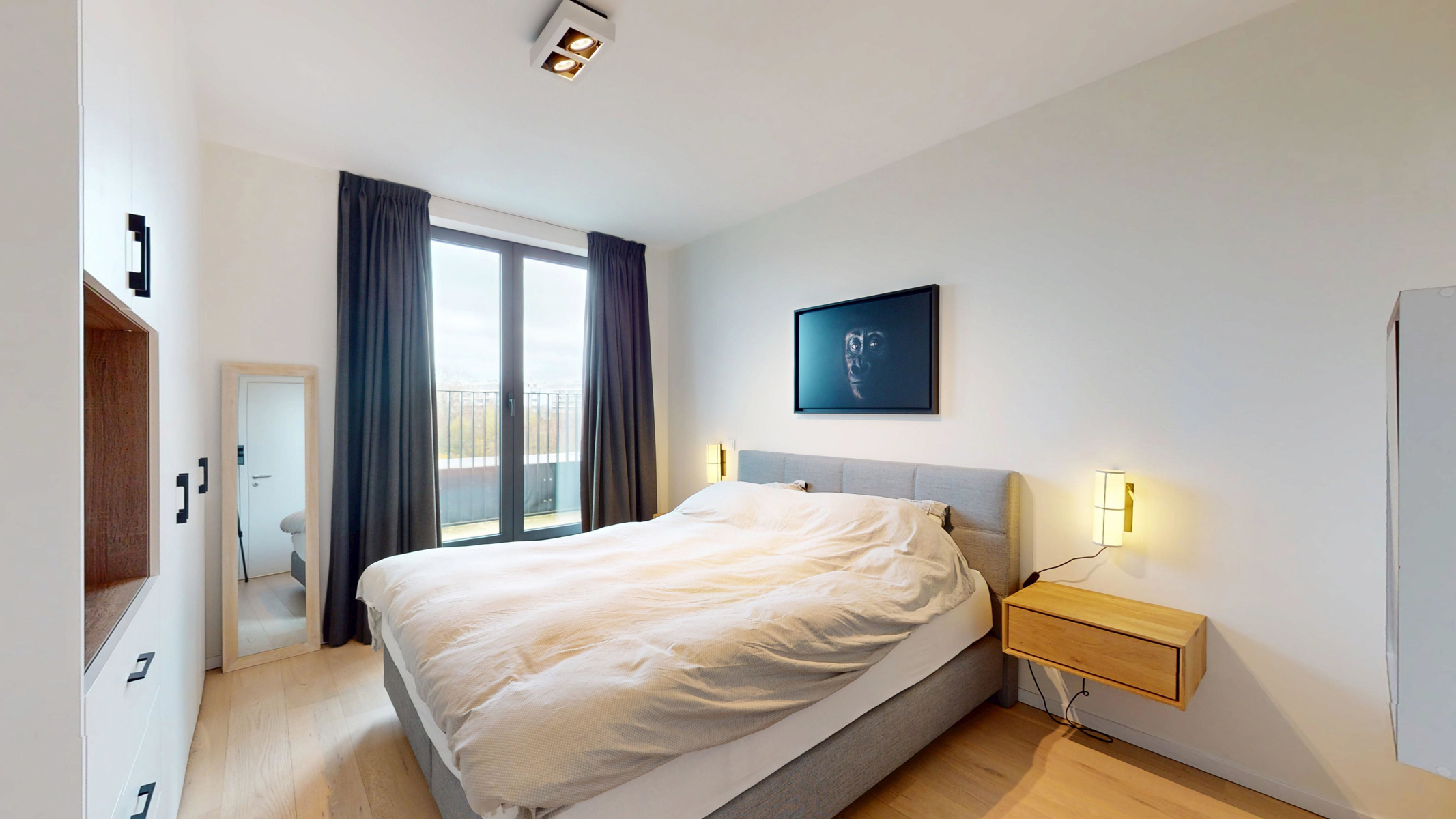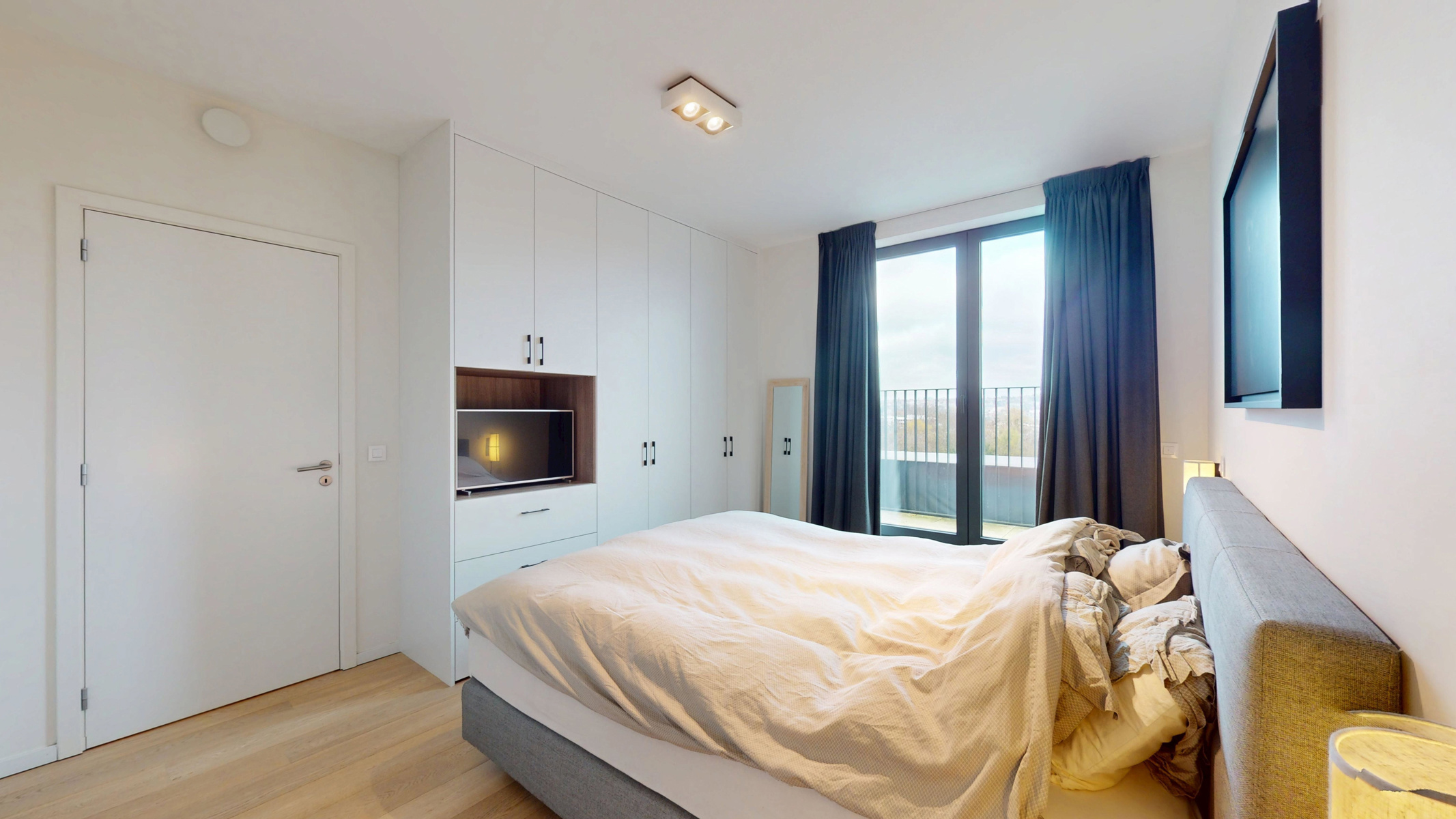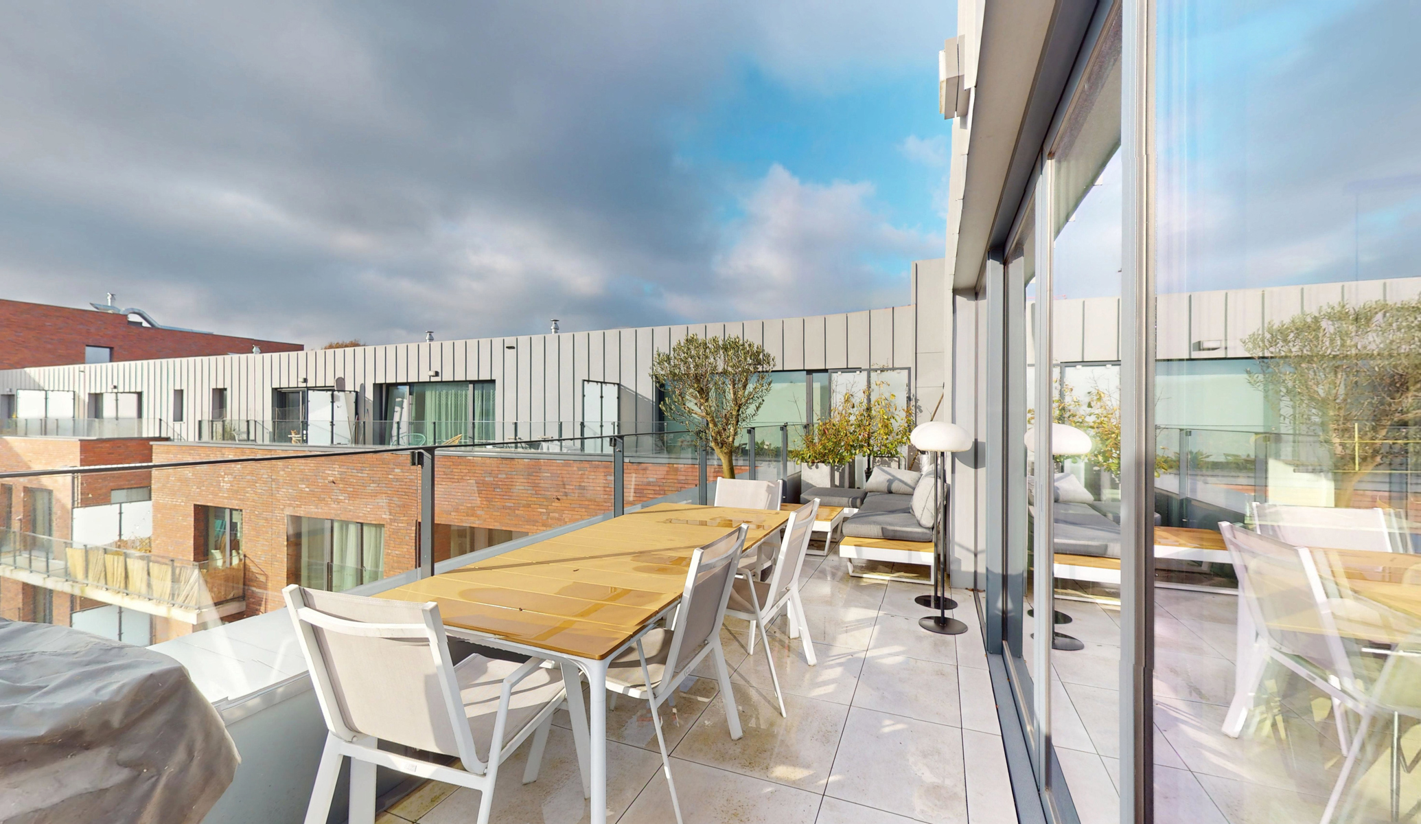 Located near Calvoet station in Uccle, with its transport links and shops, By The Way offers this bright PENTHOUSE apartment of approximately 98 m² gross (according to PEB). Located on the 4th floor with lift in a new, rapidly developing green neighbourhood. Accessible from the alleyway via its private entrance, this top floor apartment with high-end finishes is surrounded by two private terraces and is composed as follows: an entrance hall, living room of +/- 34m² including a fully equipped open-plan kitchen, a hallway leading to a master bedroom of +/-14.50m² with en-suite bathroom, a second bedroom of +/- 11m² with en-suite shower room, the hallway also gives access to a laundry room and a separate WC. This building has a secure bicycle storage room. Indoor parking space is compulsory and available at an additional cost (€30,000). MISCELLANEOUS: PEB A-, electricity compliant, dual-flow CMV, individual gas boiler. Individual water/electricity meters, triple-glazed windows, thermal and sound insulation. Common charges (insurance, maintenance, property management, reserve fund) of approximately €225.61/month.