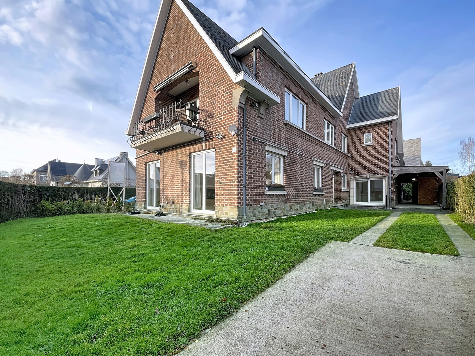 Overijse – JOLYPARK AREA, in immediate proximity to Brussels, just steps away from the Four Arms of Tervuren and the Sonian Forest. Close to all amenities (Transport, restaurants, shops,…). By the Way presents this charming apartment of +/- 144 m2 net located on the ground floor of a beautiful bourgeois house. The apartment is composed as follows : An entrance hall leading to a spacious and bright south-facing living area of +/- 60 m2, a fully equipped kitchen, a night hall leading to a 1st bedroom of +/- 13 m2, a 2nd bedroom of +/- 17 m2 with a private shower room, 1 separate WC, a 3rd bedroom of +/- 29 m2 with a private bathroom with WC and a laundry room. Technical aspects : Private gas boiler (2025). Pellet stove. Thermostat. Semi-solid parquet & tiled floors. Carport. Private outdoor parking with sectional gate (2/3 tandem parking spaces). South-facing garden. No common charges. EPC C (2026). An apartment offering charm, easy access to Brussels & Walloon Brabant and generous spaces. AVAILABLE IMMEDIATELY.