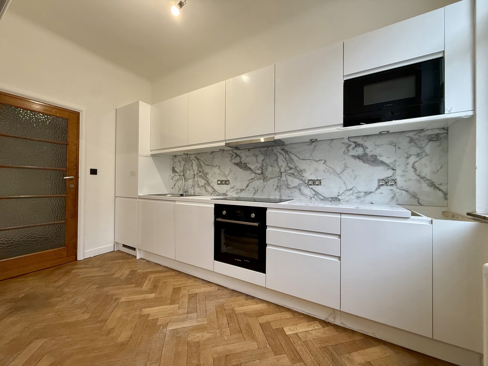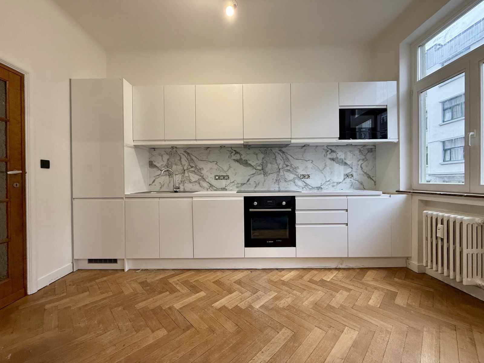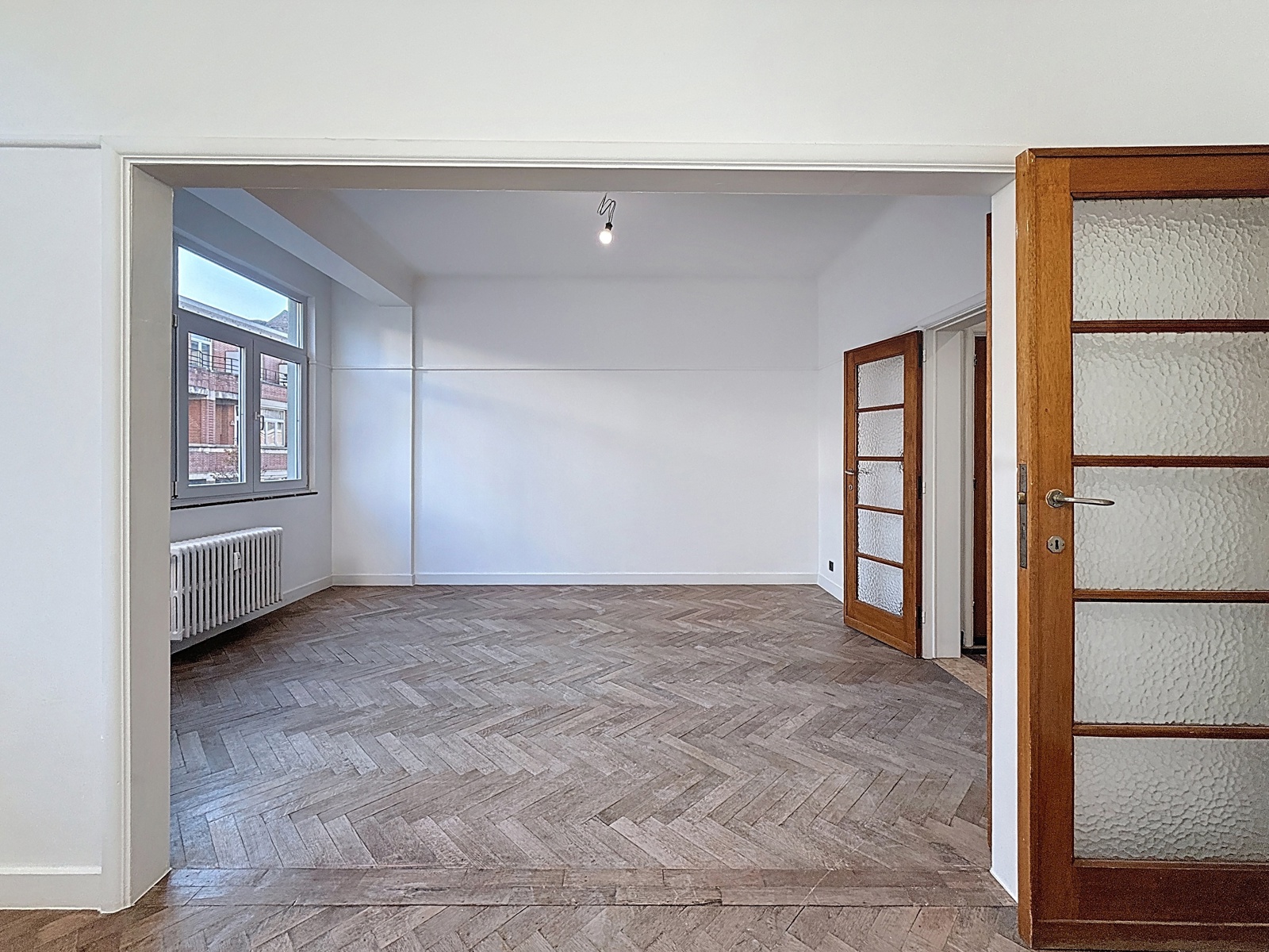 Info & Visits, Jean-Philippe : +32 492 56 33 19 – [email protected]. Located in the Altitude Cent neighborhood, just a stone’s throw from Avenue Molière, By the Way presents this ± 91 m² apartment (according to the EPC), situated on the 2nd floor out of 5 of a building with elevator. Layout : entrance hall, storage/wardrobe space, living room, brand-new fully equipped open-plan kitchen, bathroom and separate toilet (recently renovated), one bedroom of approx. 15 m² and a room of approx. 11 m² (former kitchen) that can be converted into a second bedroom, with access to a balcony. Private cellar in the basement. Technical features : EPC C, compliant electrical installation, insulated rear and side façades, asbestos slate roofing removed, new shared gas condensing boiler, WC flush systems replaced, insulation of water and heating pipes. New co-ownership. Info & Visits, Jean-Philippe : +32 492 56 33 19 – [email protected].