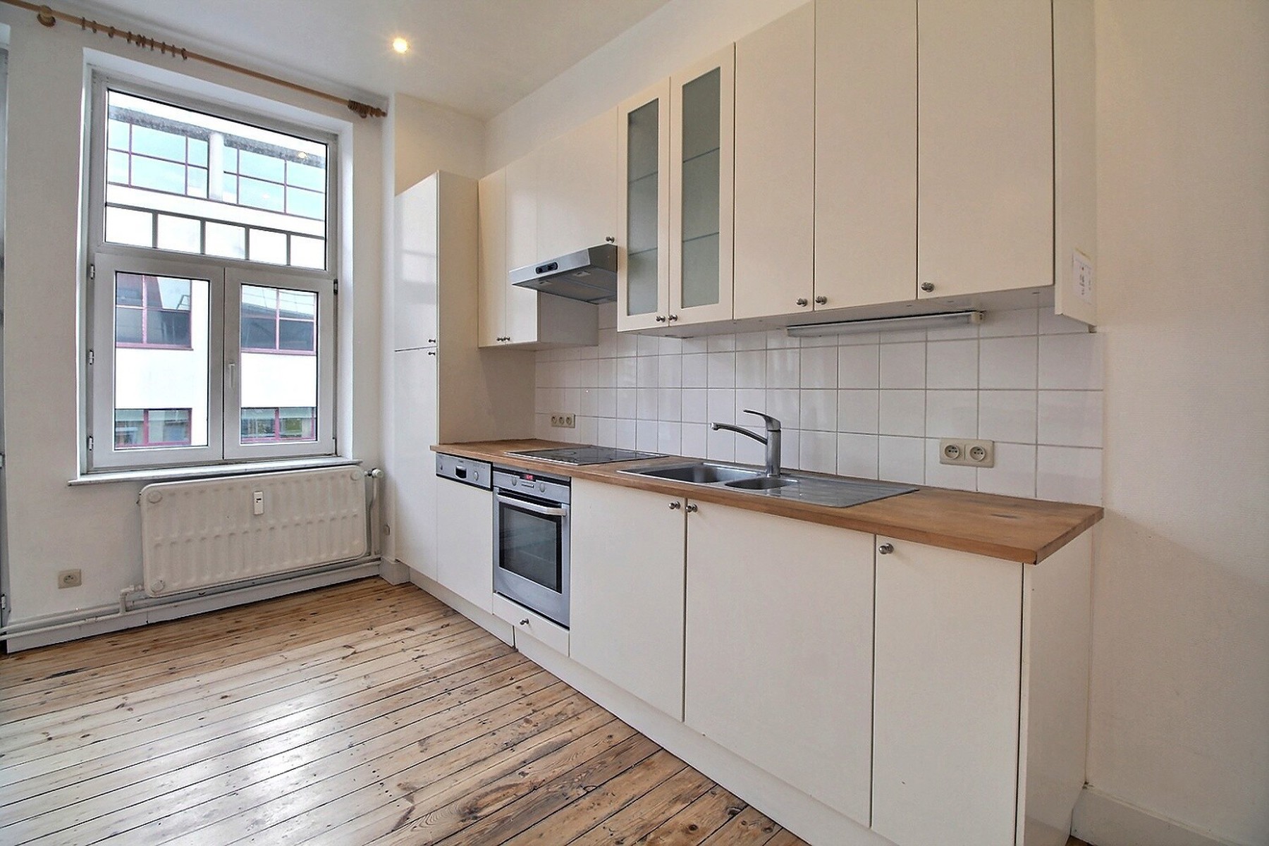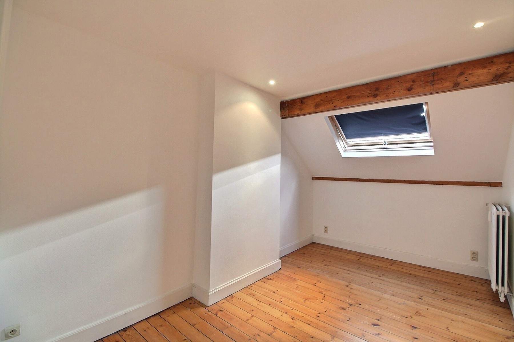 In the heart of the highly sought-after Châtelain district, By the Way presents this charming and characterful duplex apartment. Two-bedroom apartment of approximately 90 m². On the 2nd floor of a small co-owned building without a lift, the flat is laid out as follows: an entrance hall leading to a large, bright living room, a dining room, an open-plan fitted kitchen and a small balcony. Upstairs, there are two bedrooms (12 and 13 m²) and a bathroom with a shower and bath. The flat has a cellar of +/- 8m². EPC: G. Double glazing. Rent: €1,175/month. Charges: Provision of €200/month (communal, heating and private water). Available immediately. Minimum lease 3 years. A must-see!