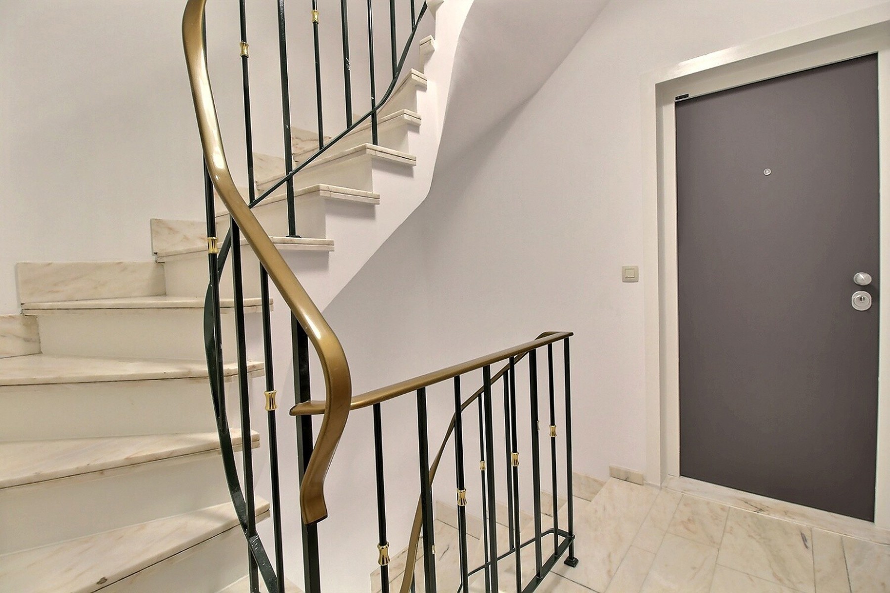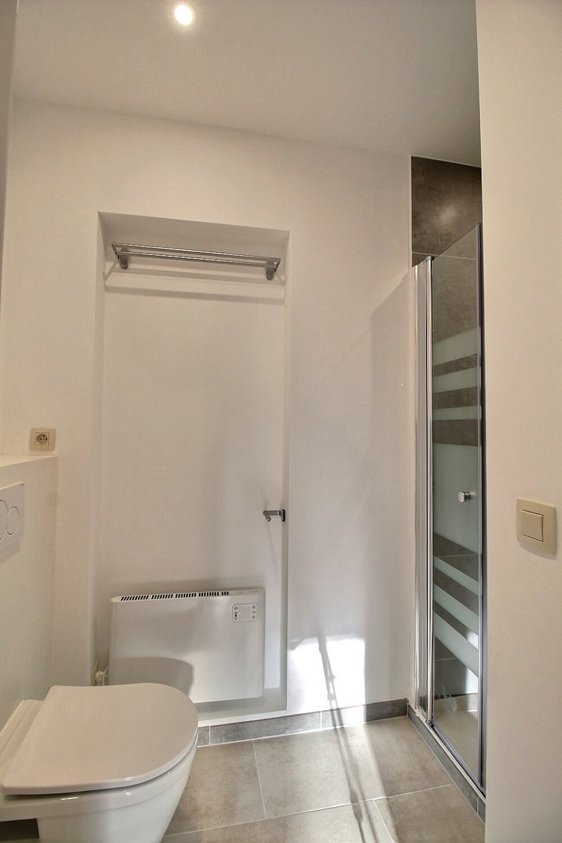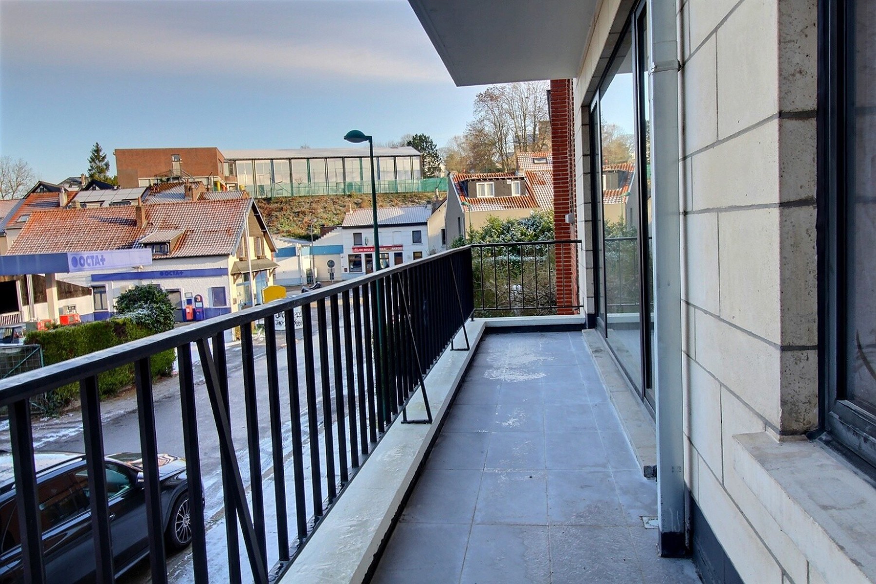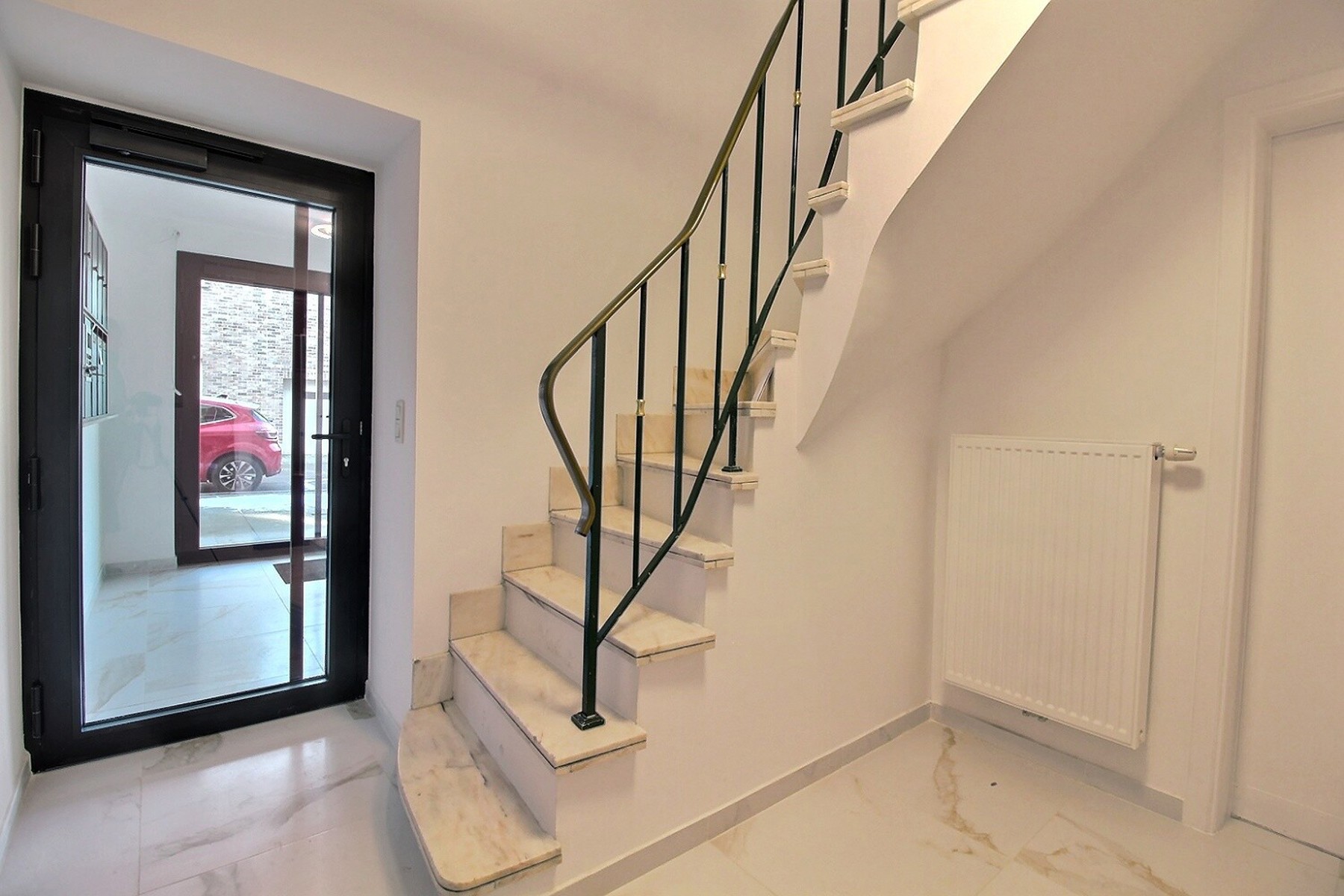 Located in a quiet dead-end street just 850 m from Linkebeek station and town centre, By The Way presents this apartment of approx. 95 m² net surface, featuring 2 bedrooms and 2 bathrooms, situated on the first floor with an elevator in a peaceful 7-unit condominium. The apartment, offering excellent energy performance (EPC A), underwent a complete renovation in 2024. Layout: spacious entrance hall opening onto a 36 m² living room with open-plan kitchen, front terrace running along the entire width of the living area, and a large laundry room/dressing. The night hall leads to a master bedroom of approx. 13 m² with ensuite bathroom and private toilet, and a second bedroom of approx. 10 m² with ensuite shower room and private toilet. Rear terrace running along the full length of the apartment. Charges: provision of €250 including common charges, private heating consumption and hot water. A private cellar is included in the price. Option: closed garage box with automatic sectional door and the possibility to park in front, for €110. Technical features: collective gas condensing boiler with electronic heat allocators, double-flow ventilation system, aluminium double-glazed windows, solid wood flooring, security door, fitted kitchen with oven, dishwasher, ceramic hob and fridge with freezer compartment.